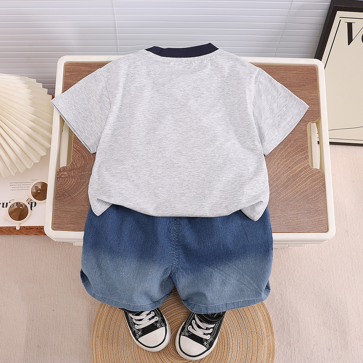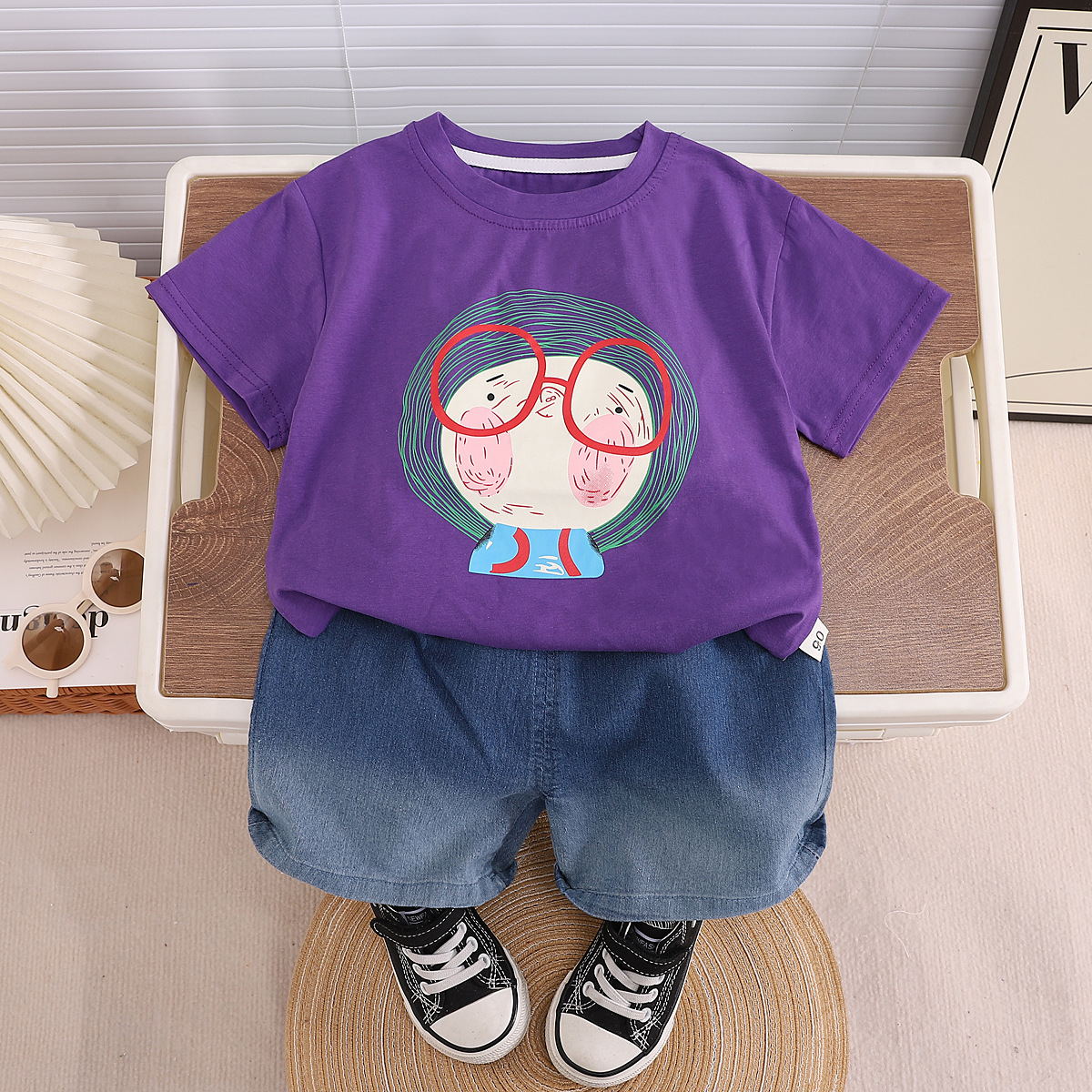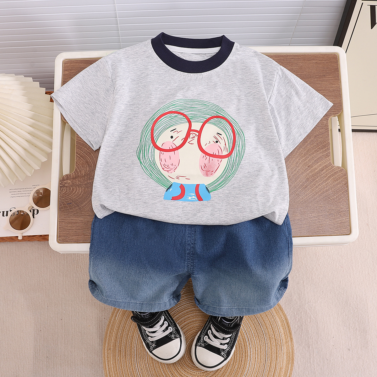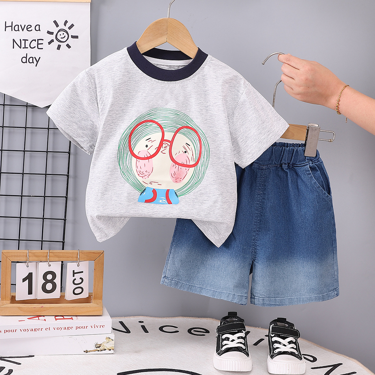 대외 무역 소년 세트 여름 새로운 어린이 서양식 멋진 잘 생긴 아기 인터넷 인기있는 유행 안경 소년 짧은 소매 세트스토어 가기