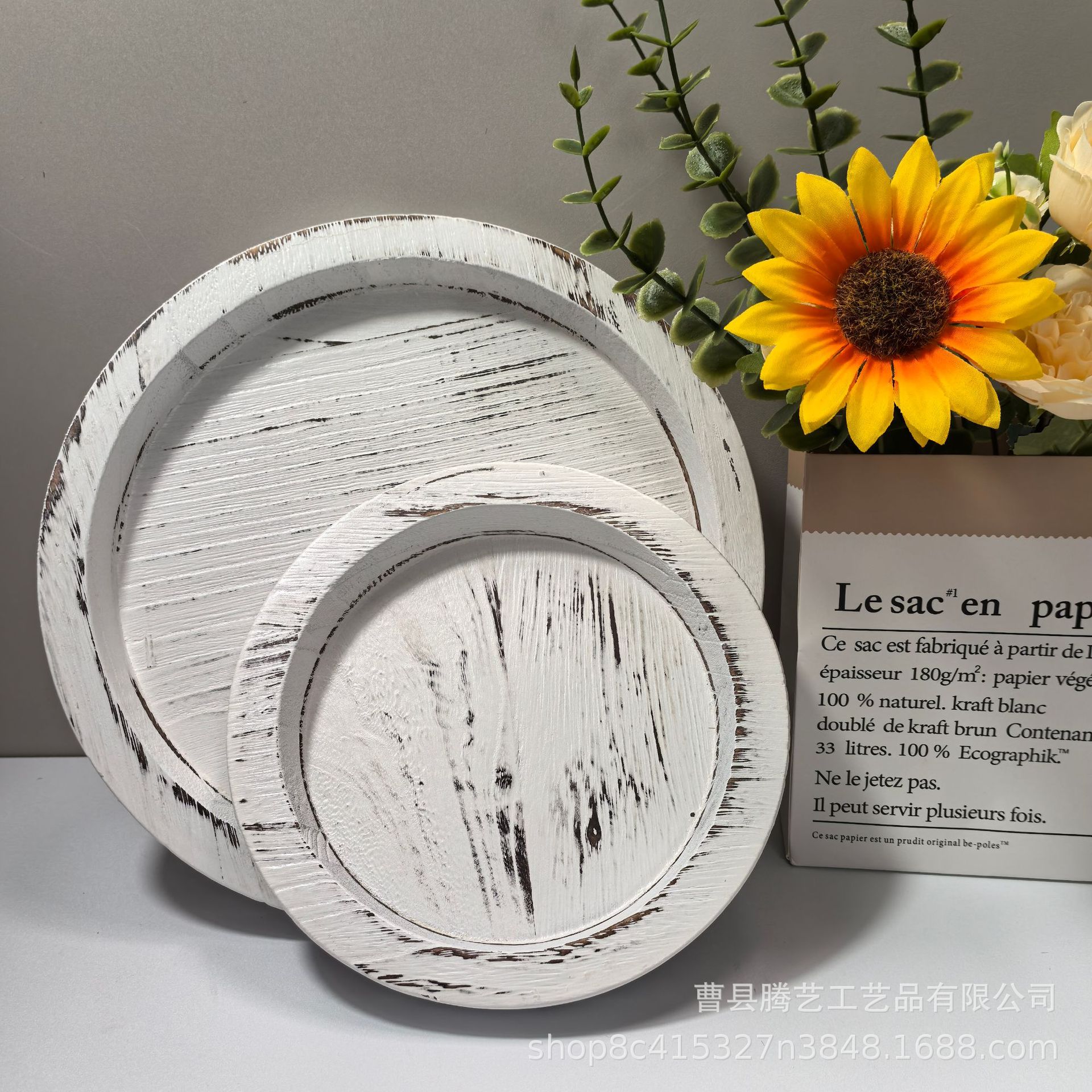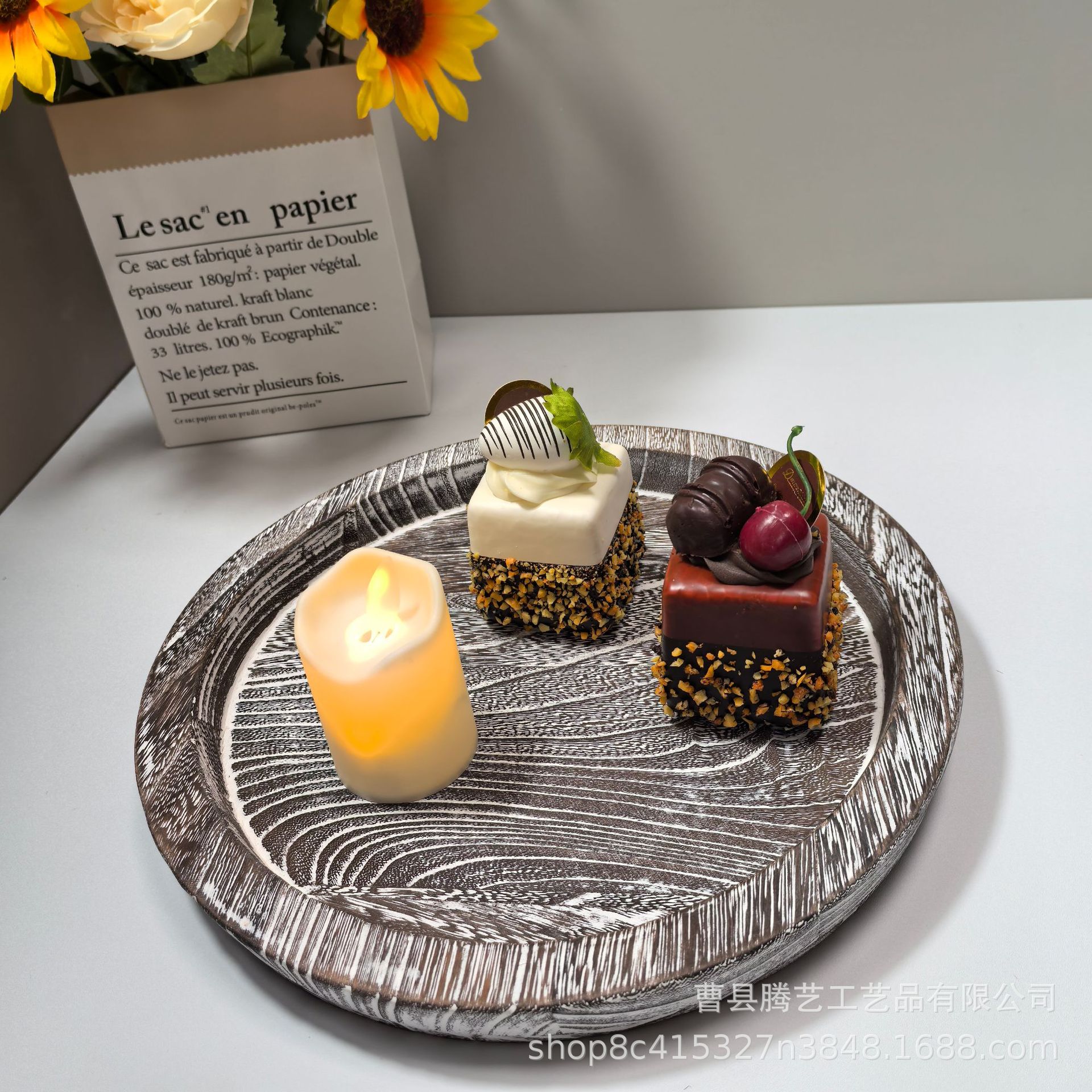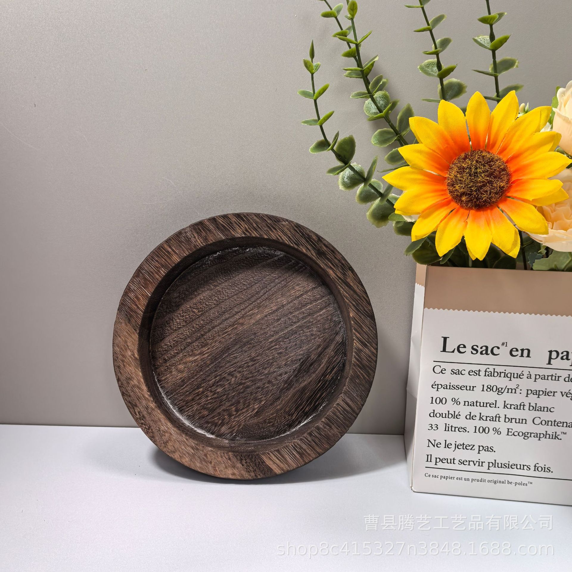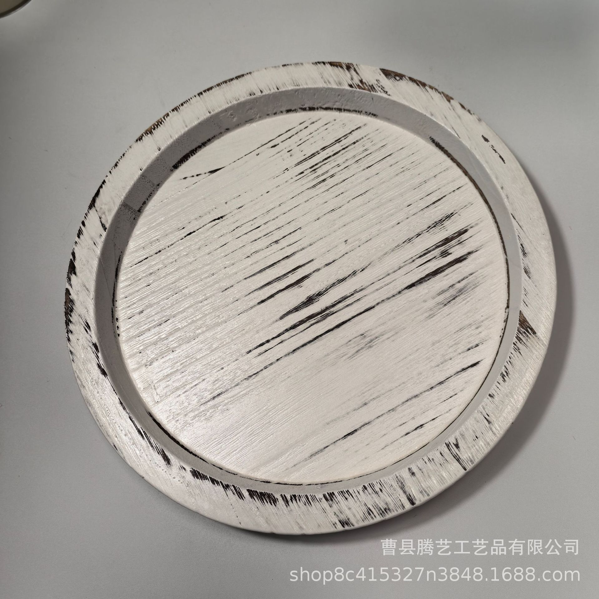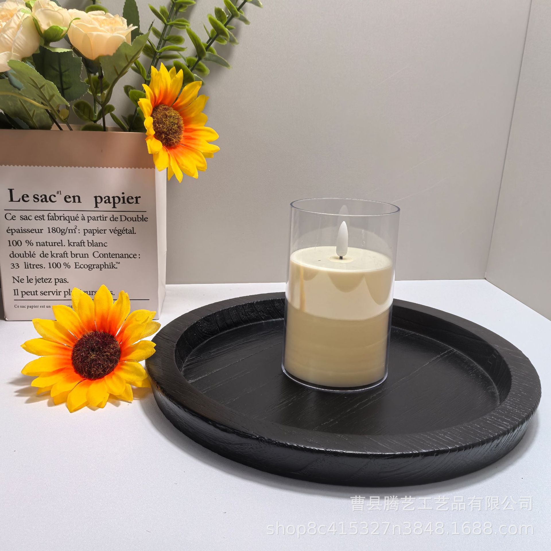 베벨 단단한 나무 복고풍 탄소 굽기 색상 흰색 통나무 저장 트레이 둥근 나무 캔들 홀더 홈 장식 트레이스토어 가기