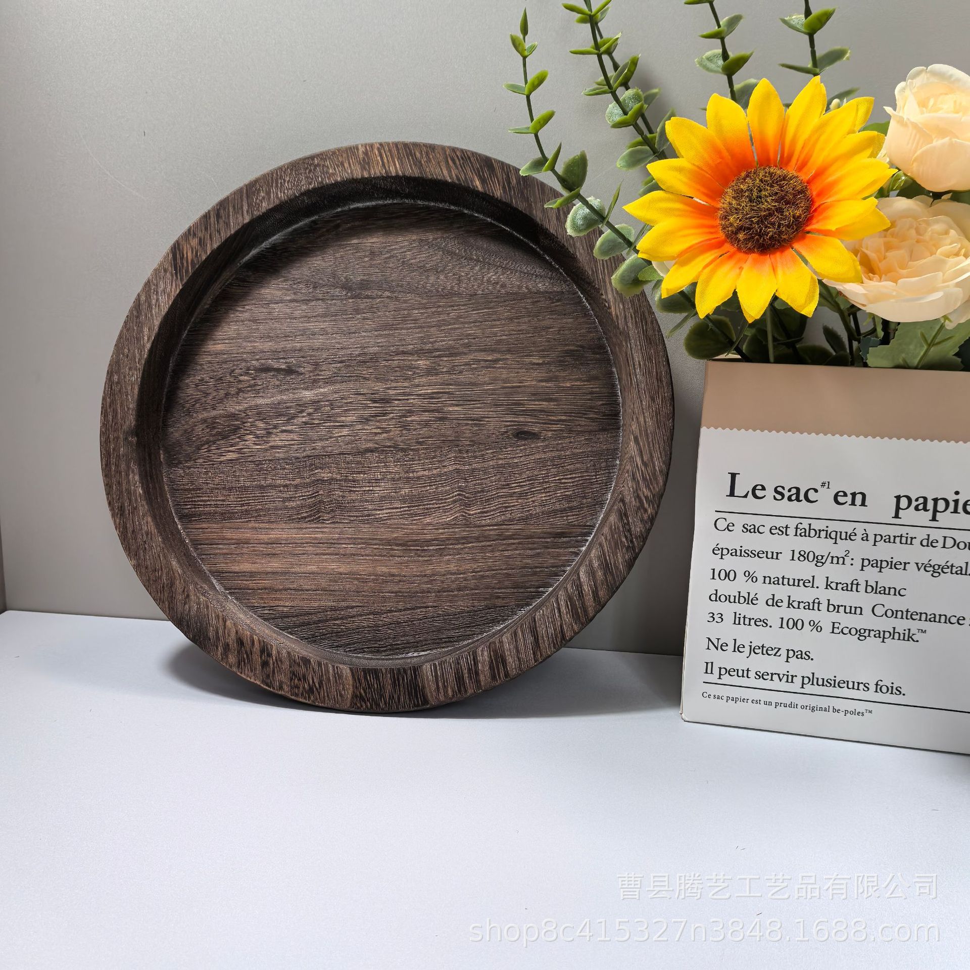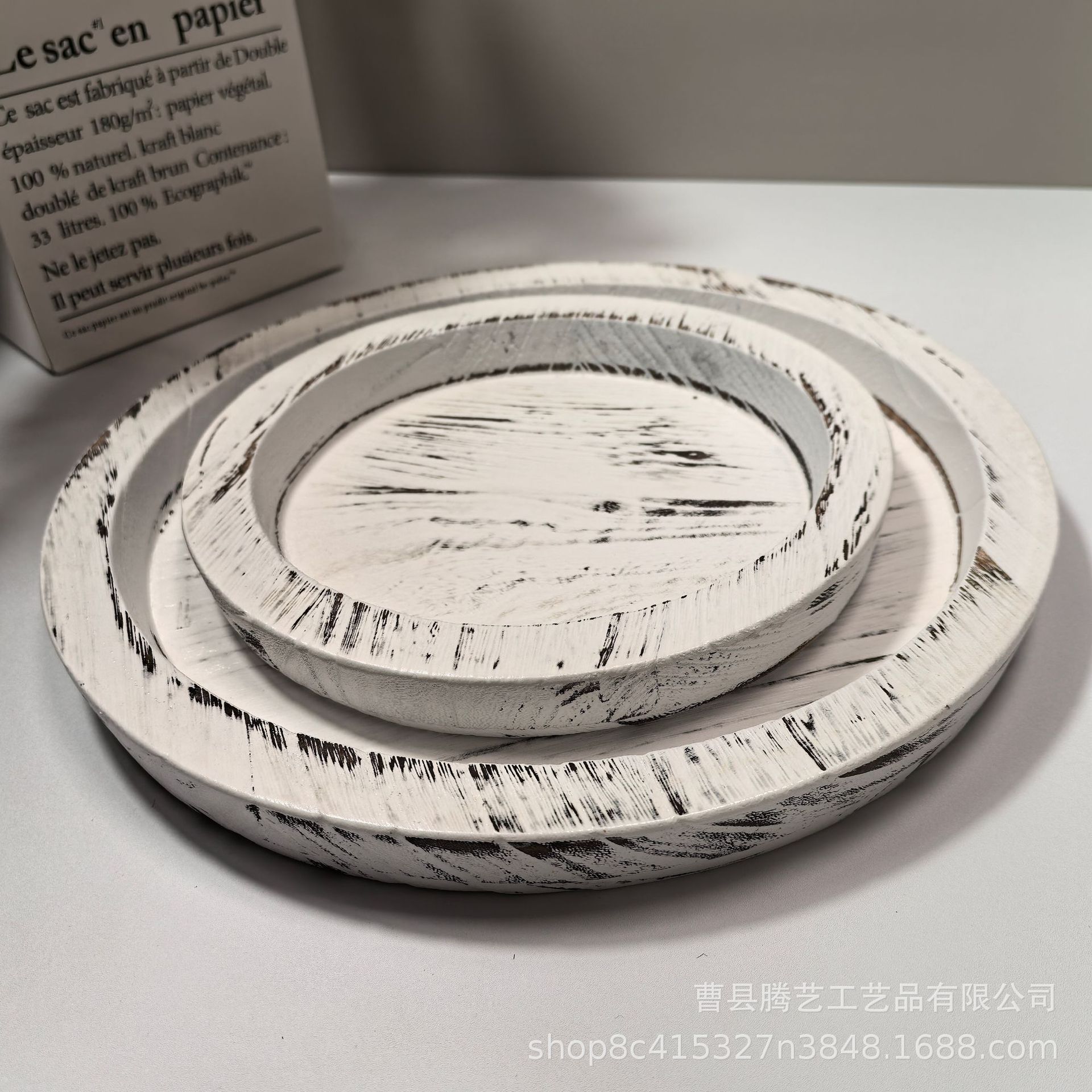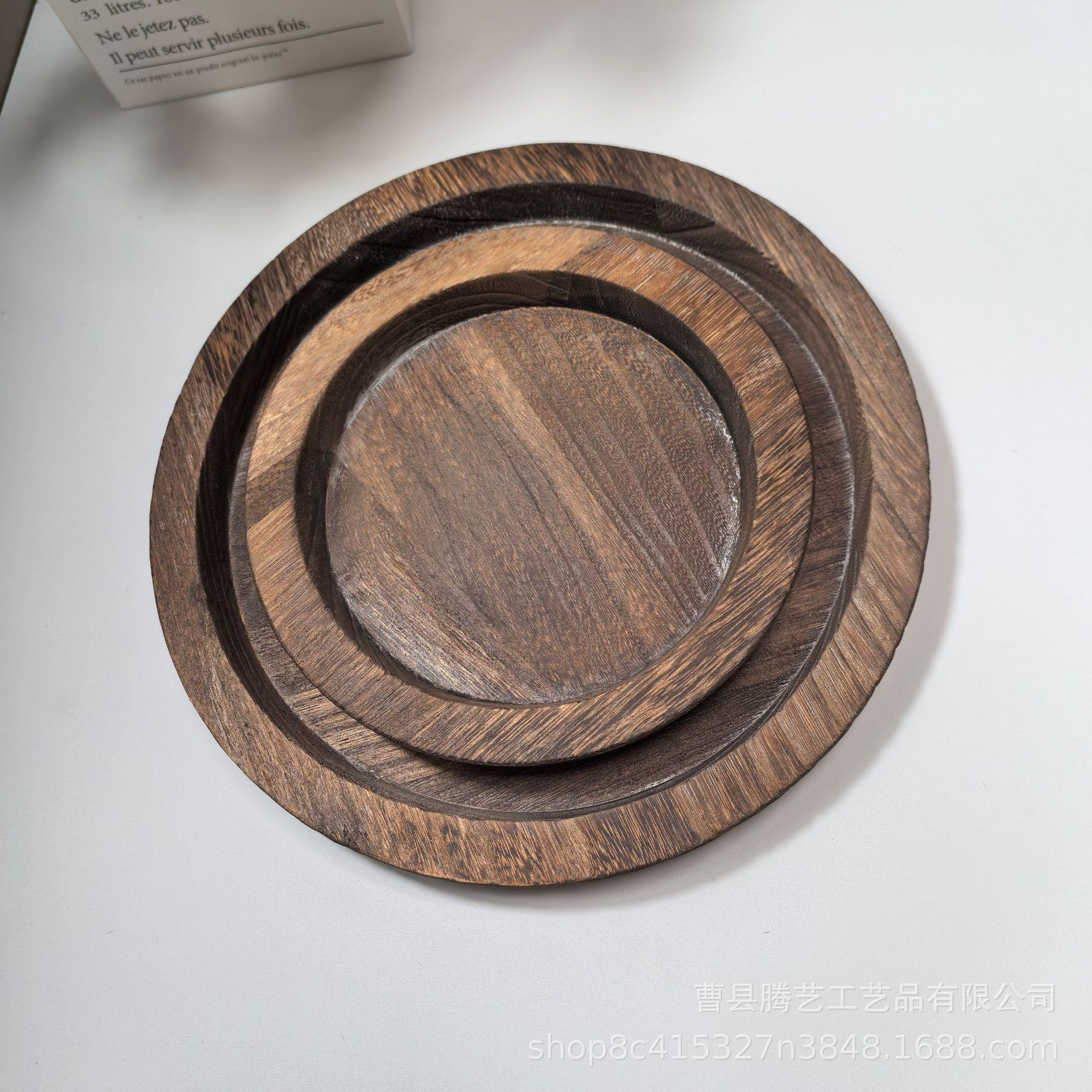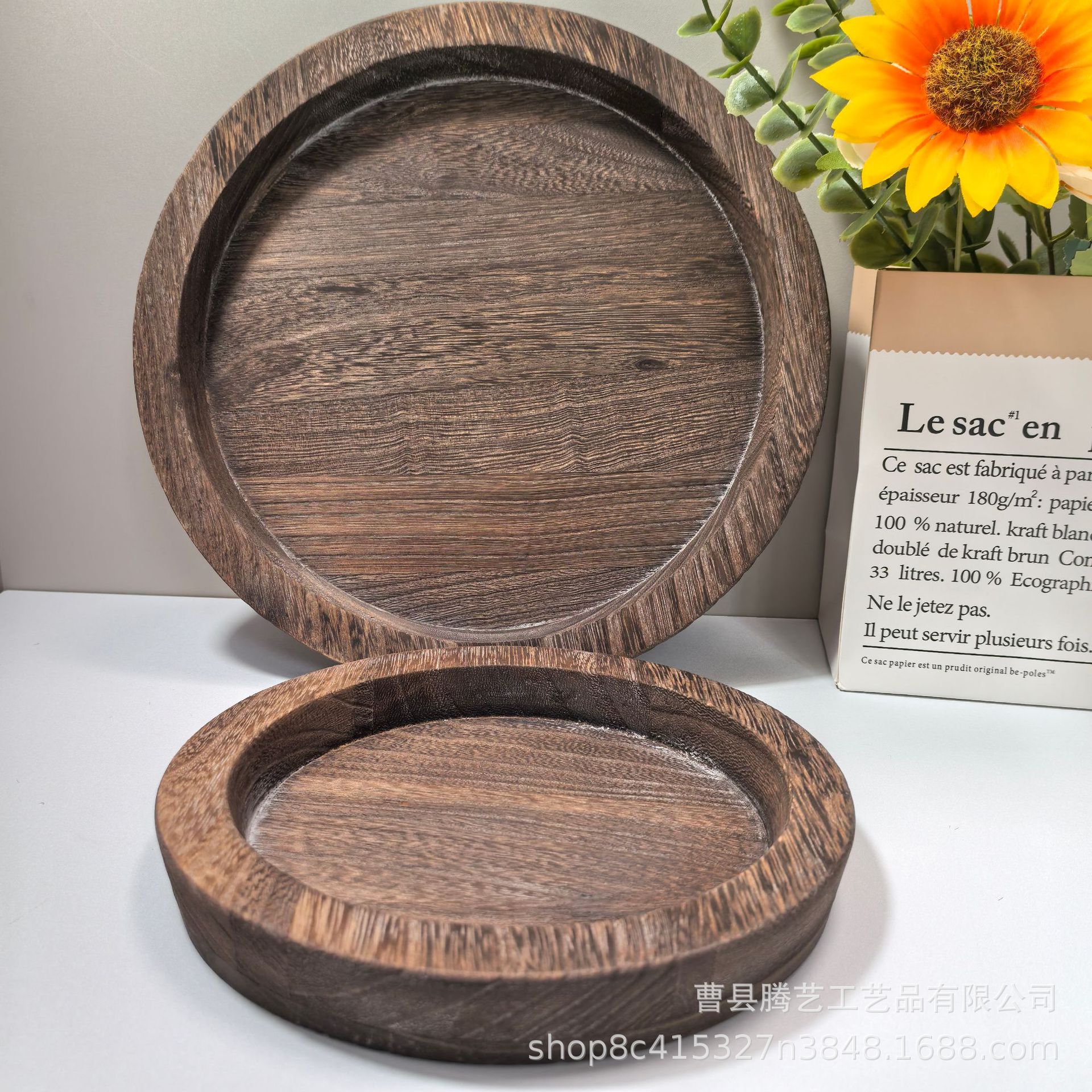 베벨 단단한 나무 복고풍 탄소 굽기 색상 흰색 통나무 저장 트레이 둥근 나무 캔들 홀더 홈 장식 트레이스토어 가기