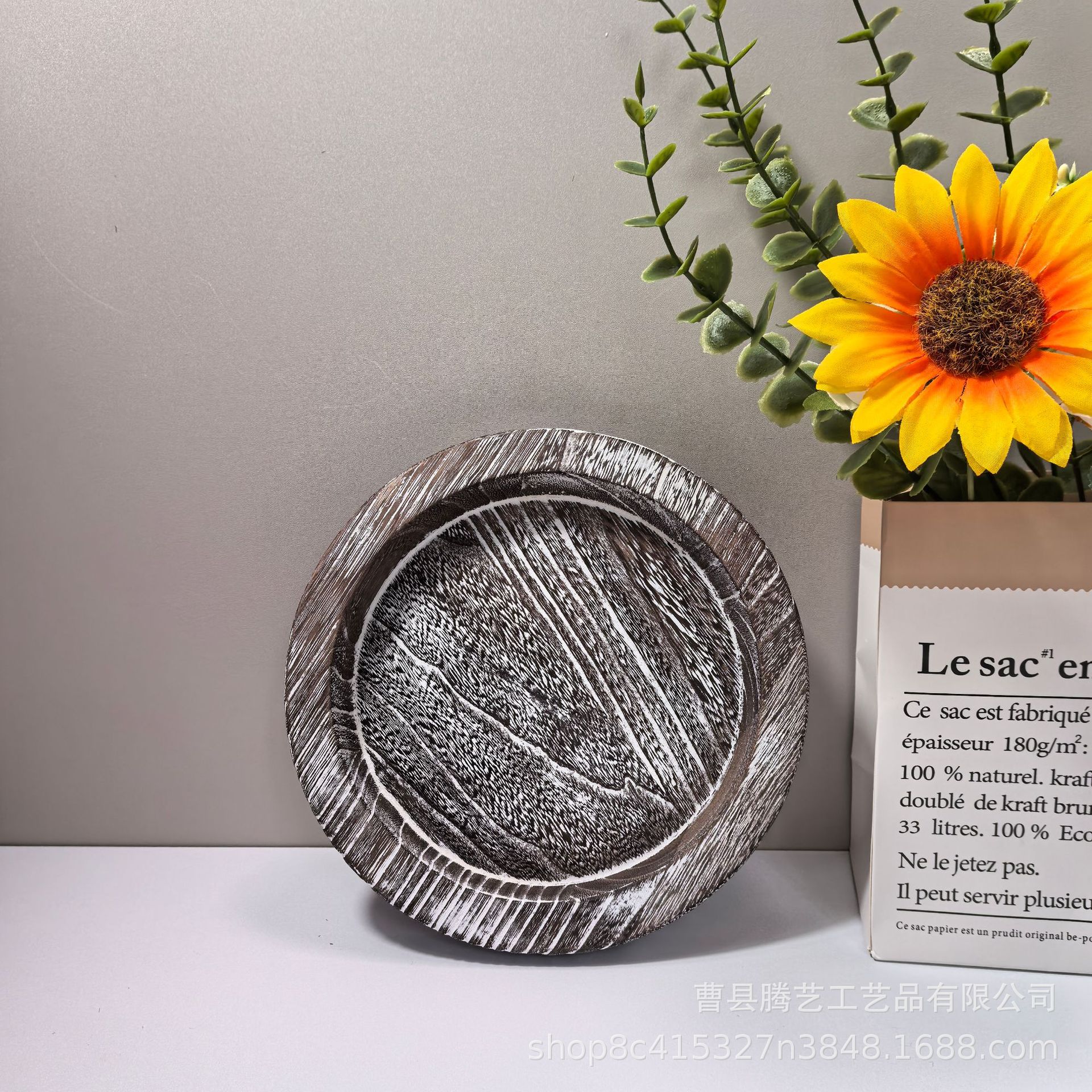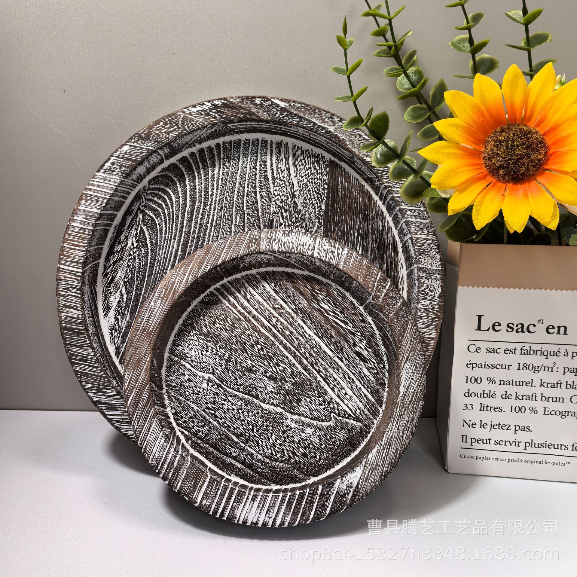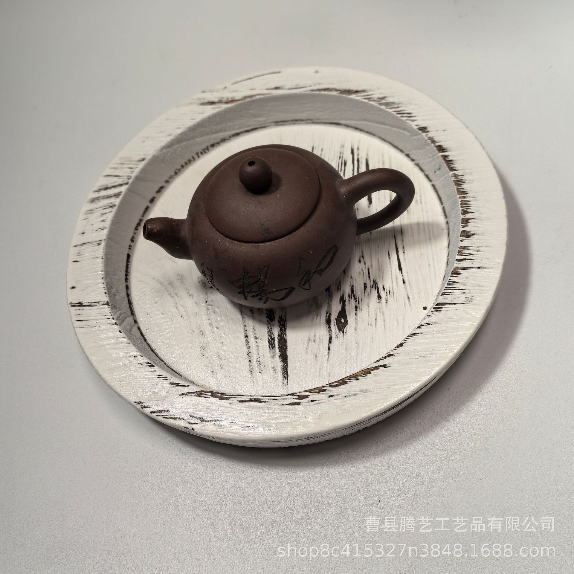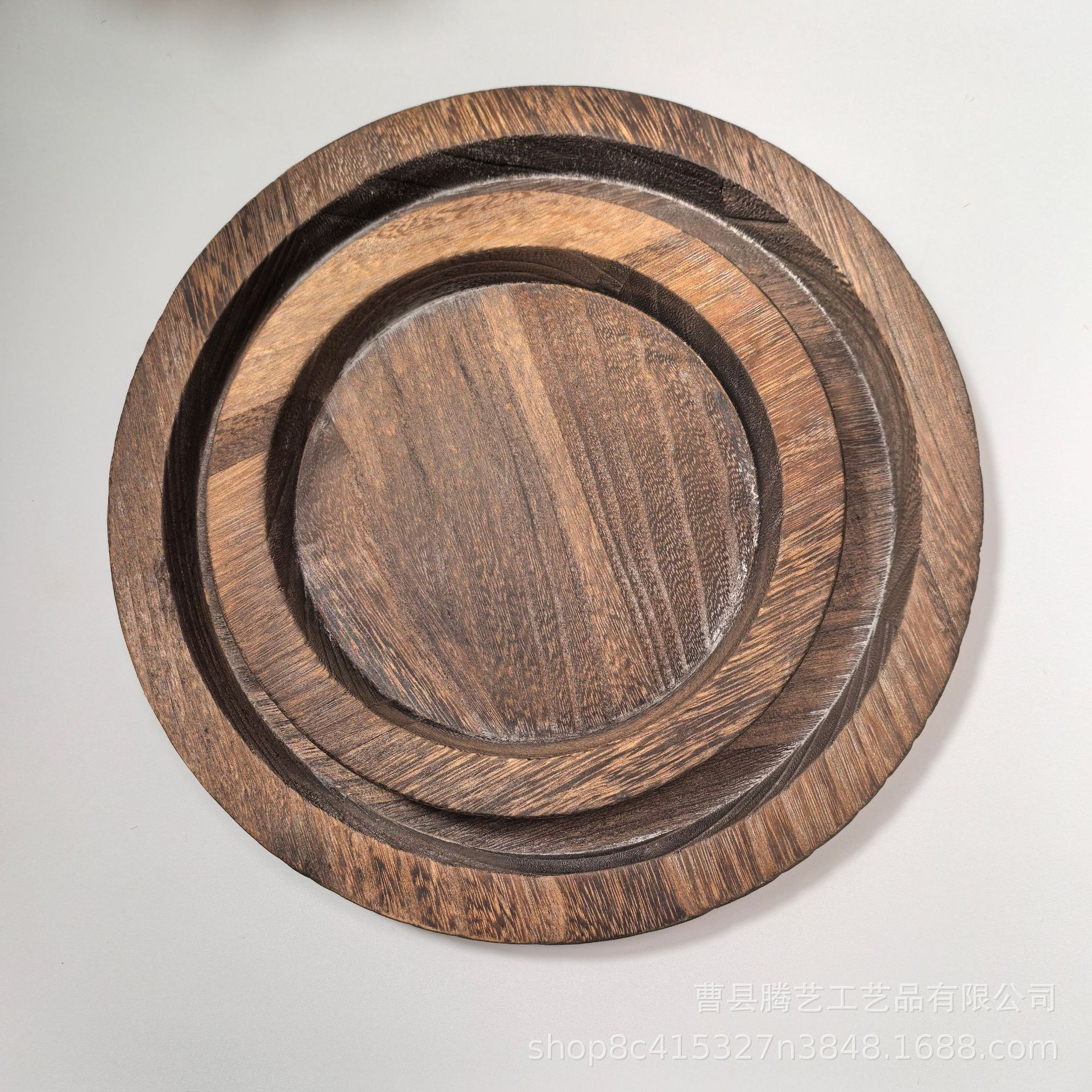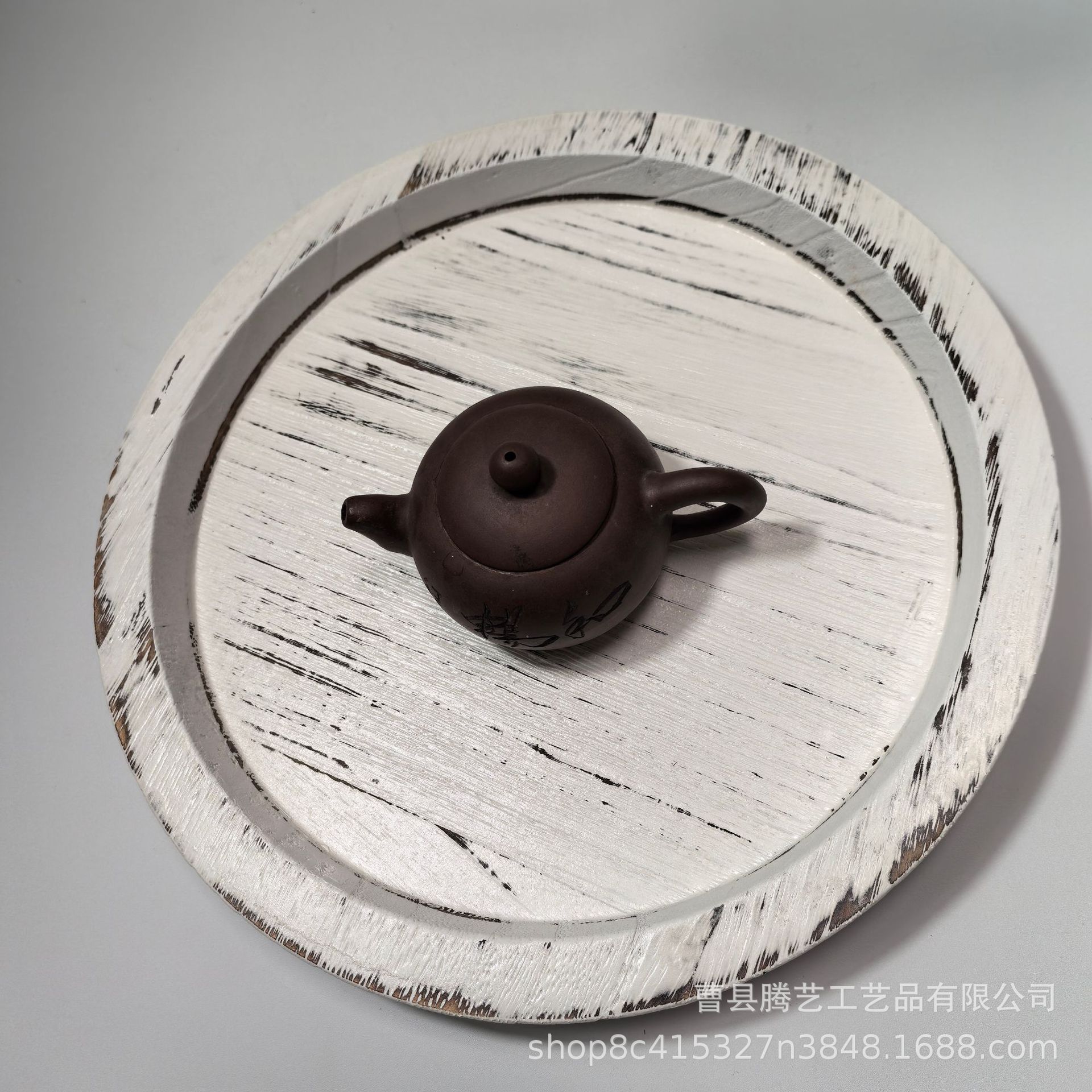 베벨 단단한 나무 복고풍 탄소 굽기 색상 흰색 통나무 저장 트레이 둥근 나무 캔들 홀더 홈 장식 트레이스토어 가기