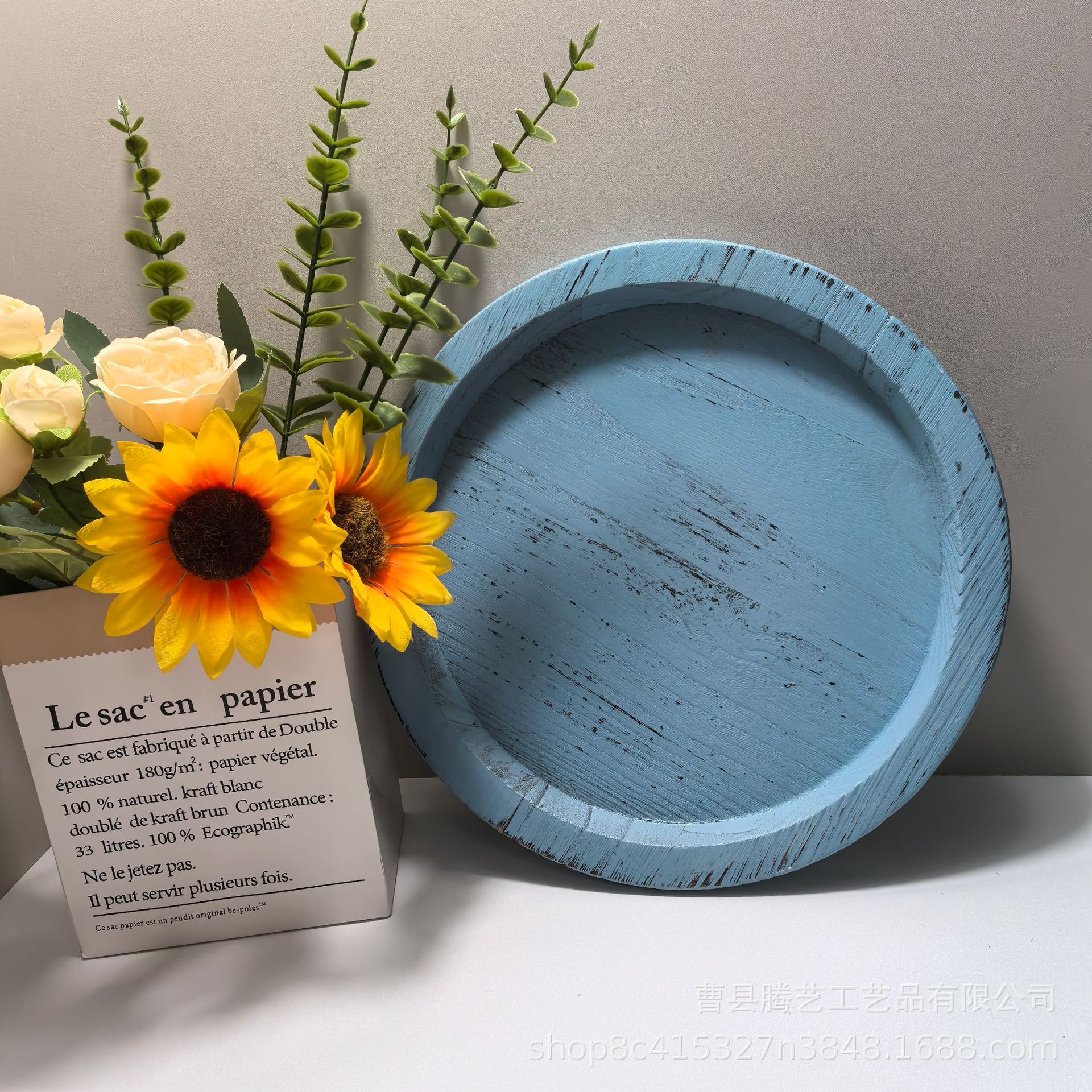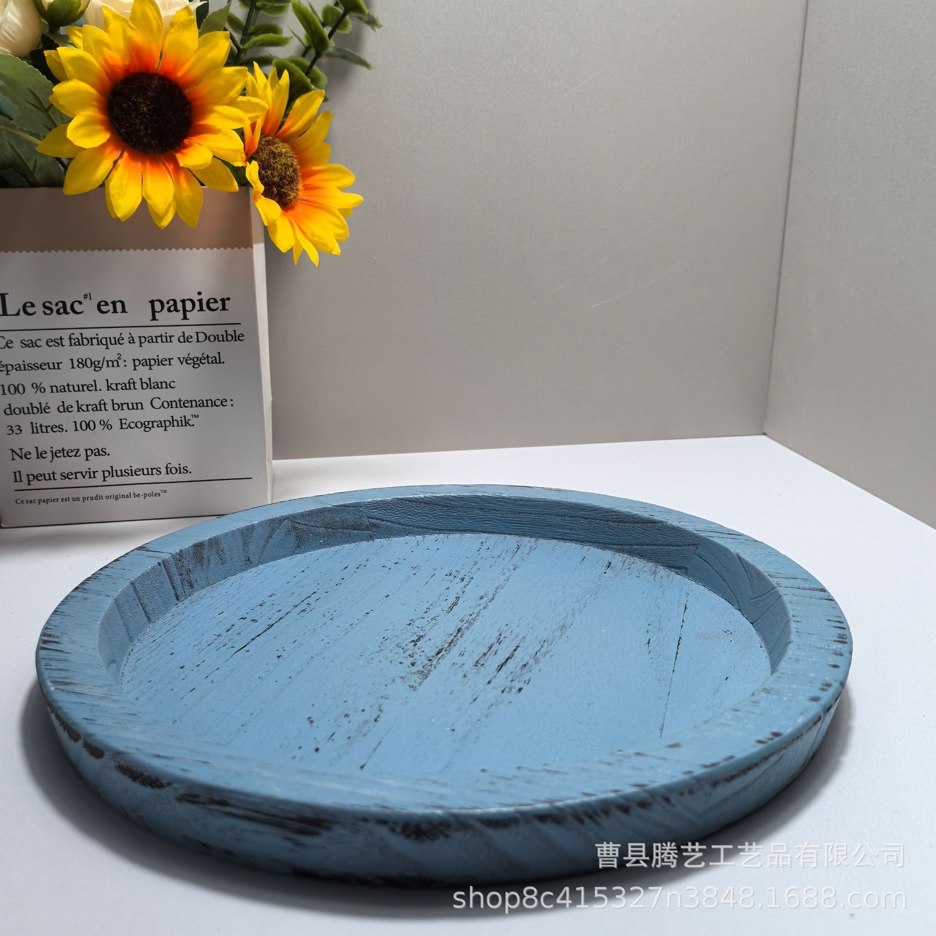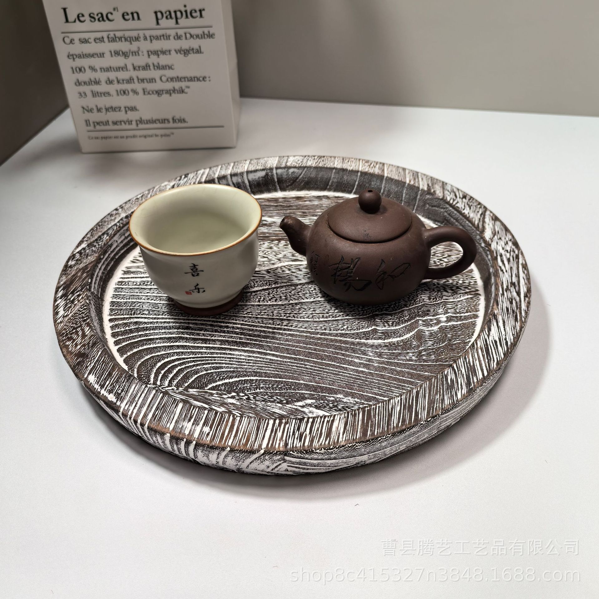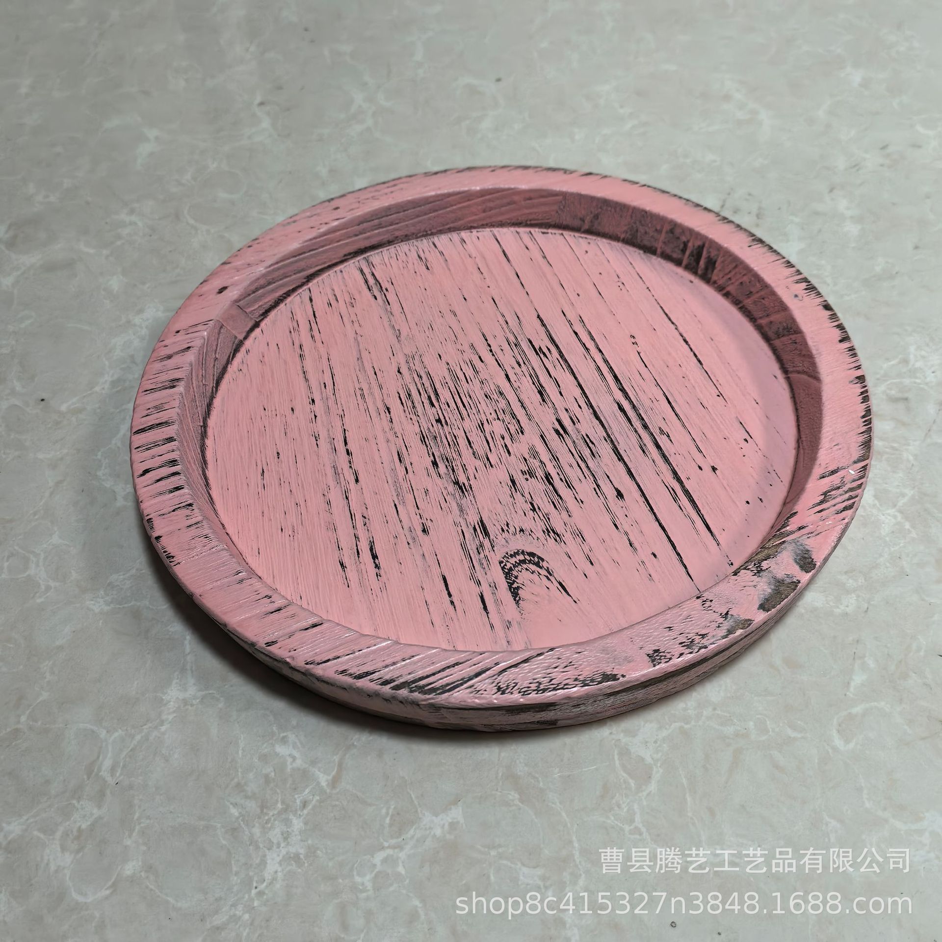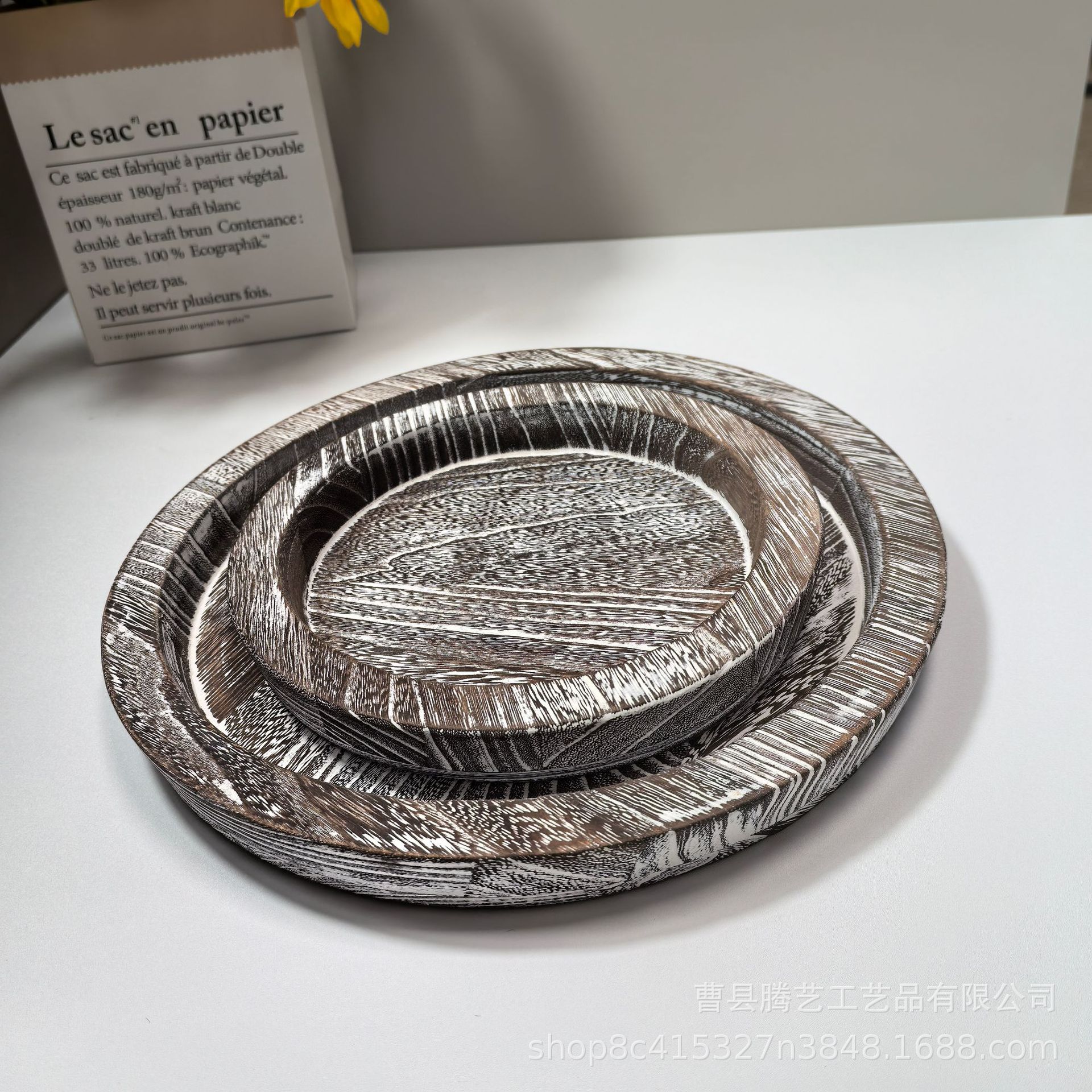 베벨 단단한 나무 복고풍 탄소 굽기 색상 흰색 통나무 저장 트레이 둥근 나무 캔들 홀더 홈 장식 트레이스토어 가기