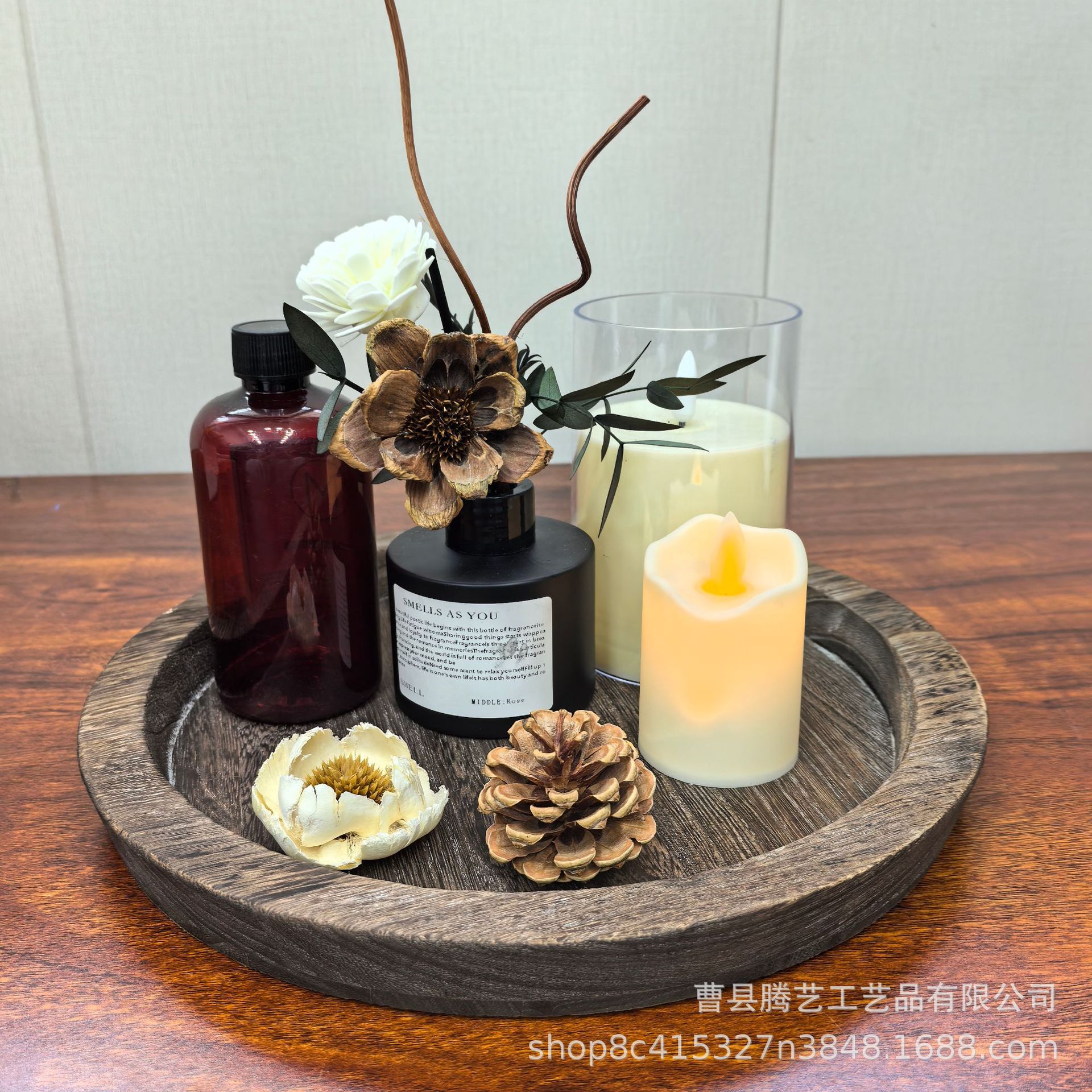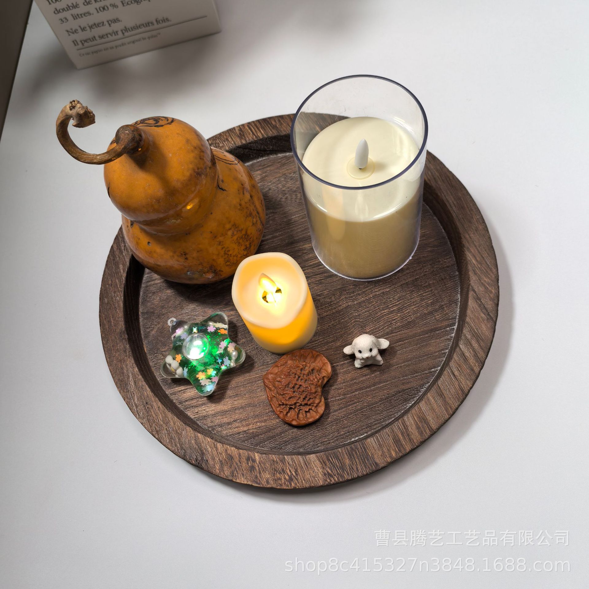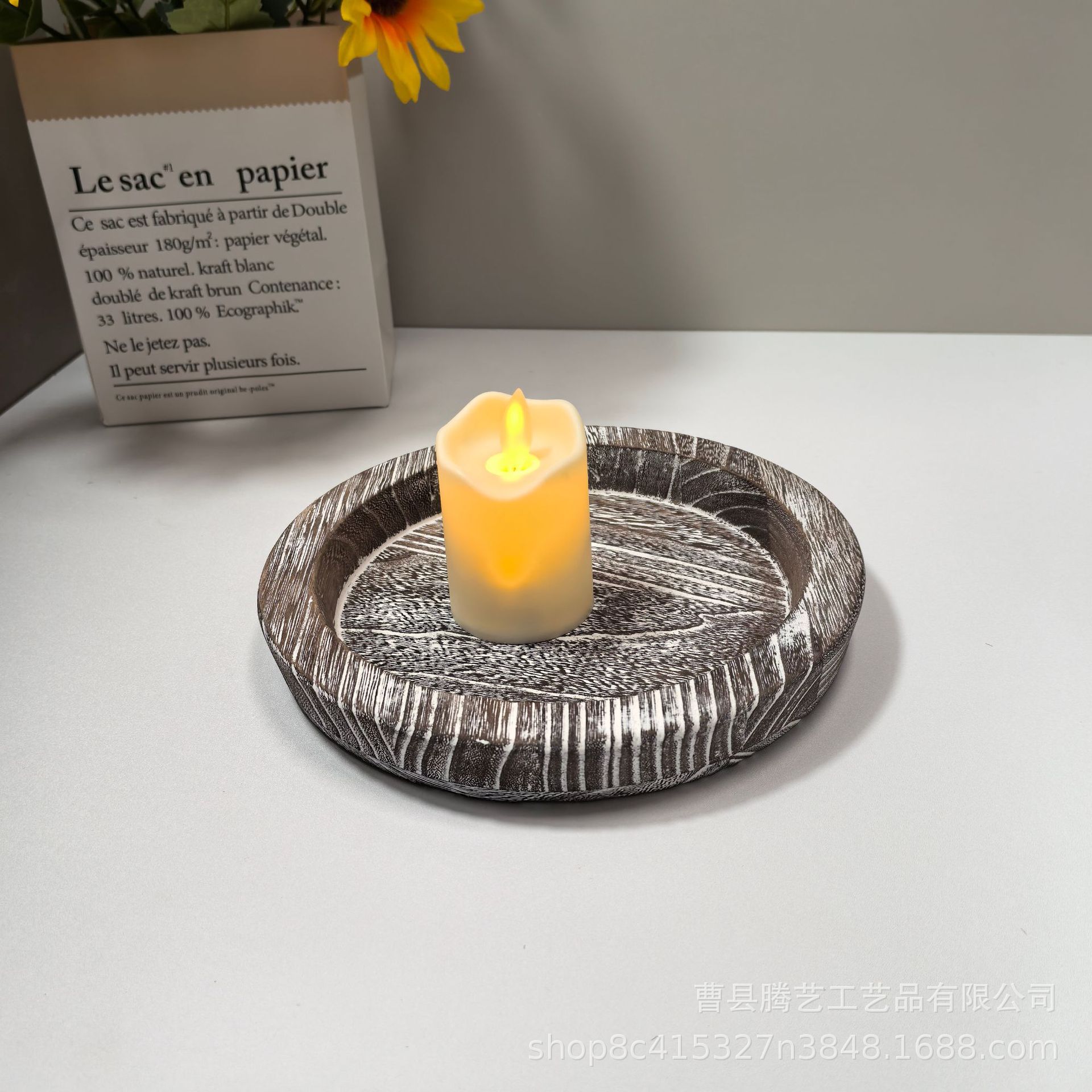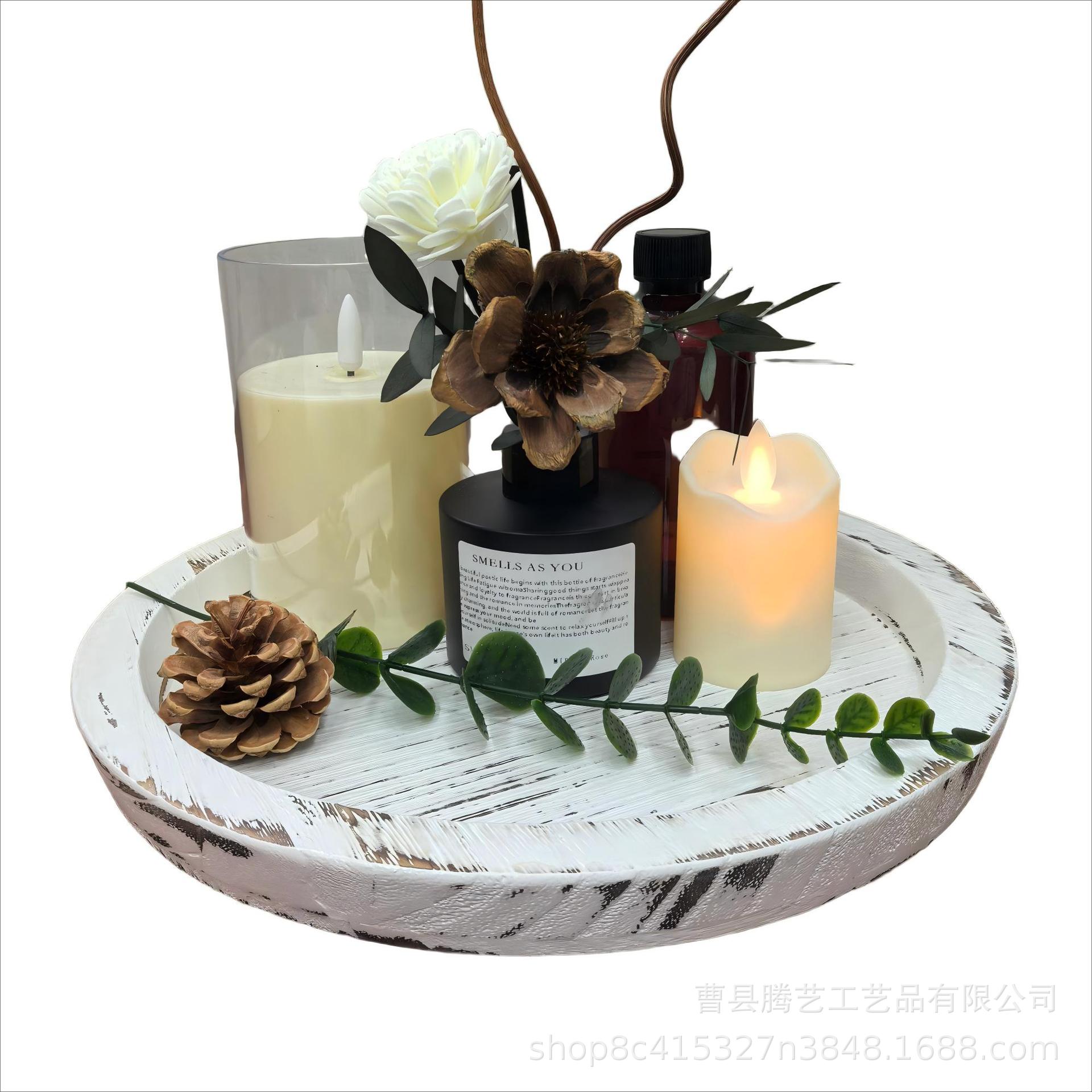 베벨 단단한 나무 복고풍 탄소 굽기 색상 흰색 통나무 저장 트레이 둥근 나무 캔들 홀더 홈 장식 트레이