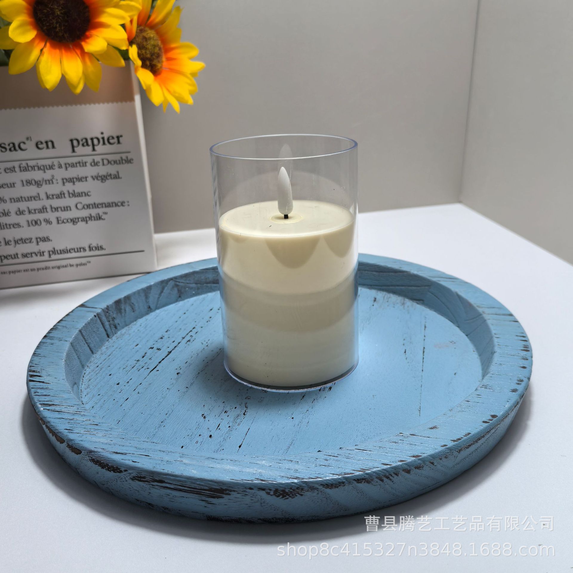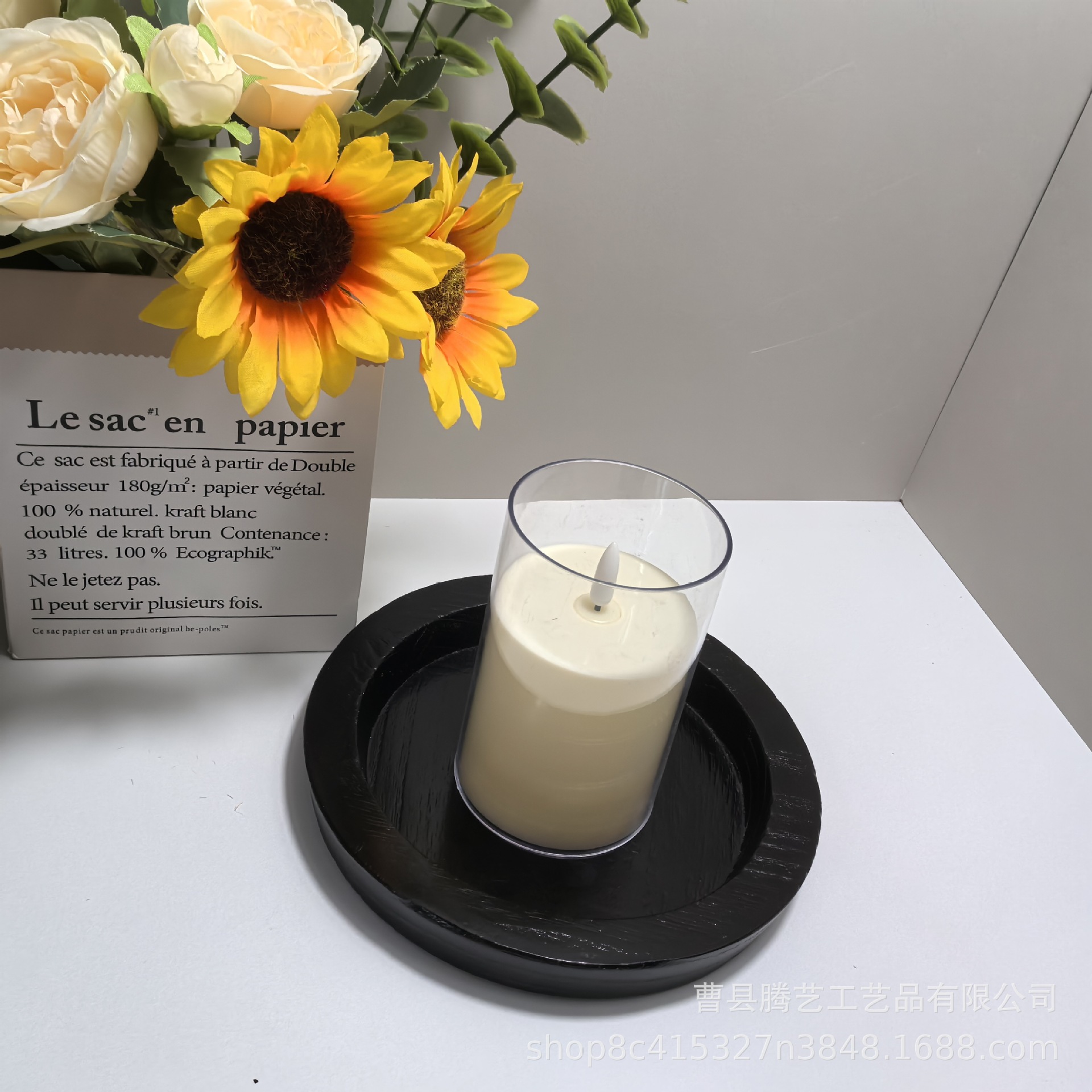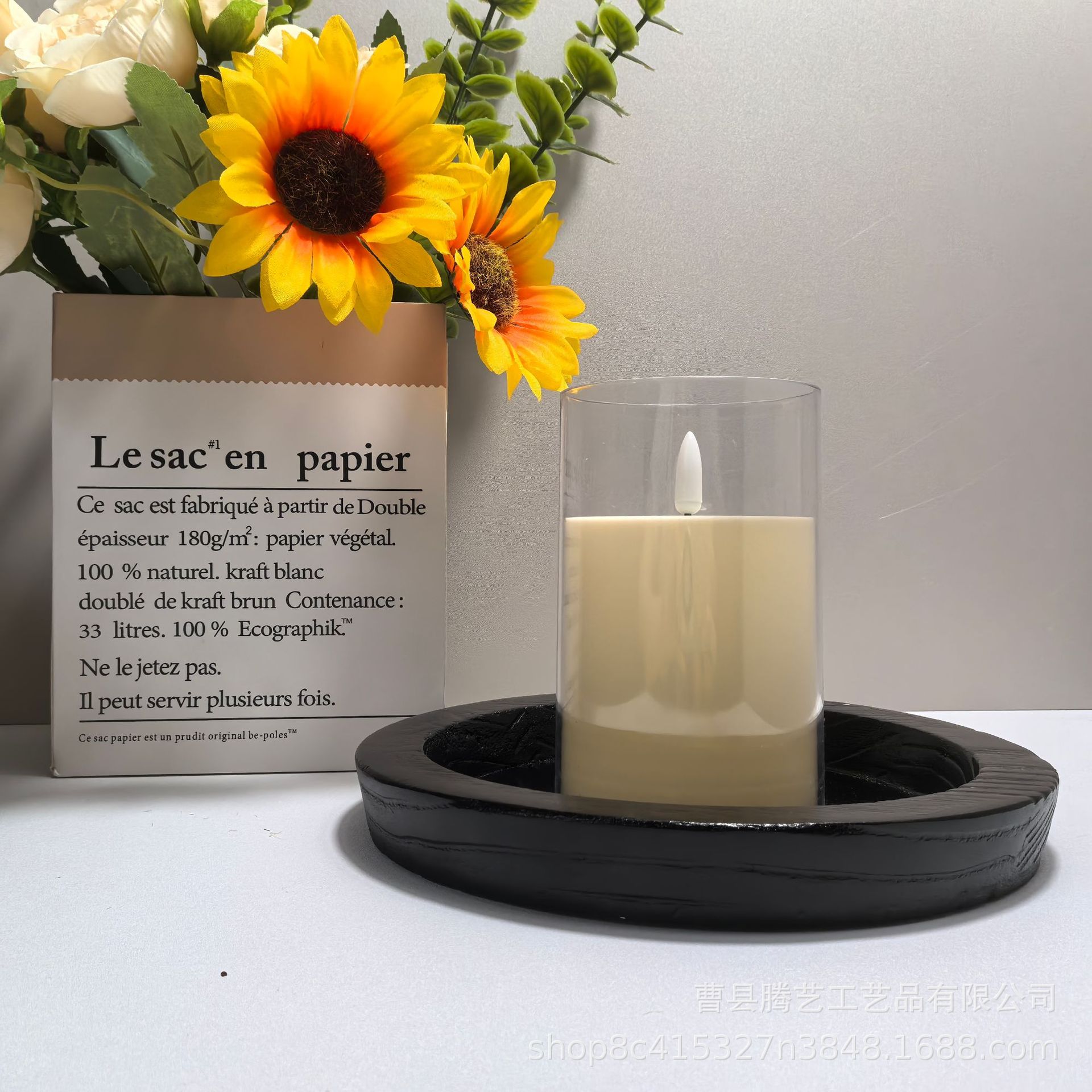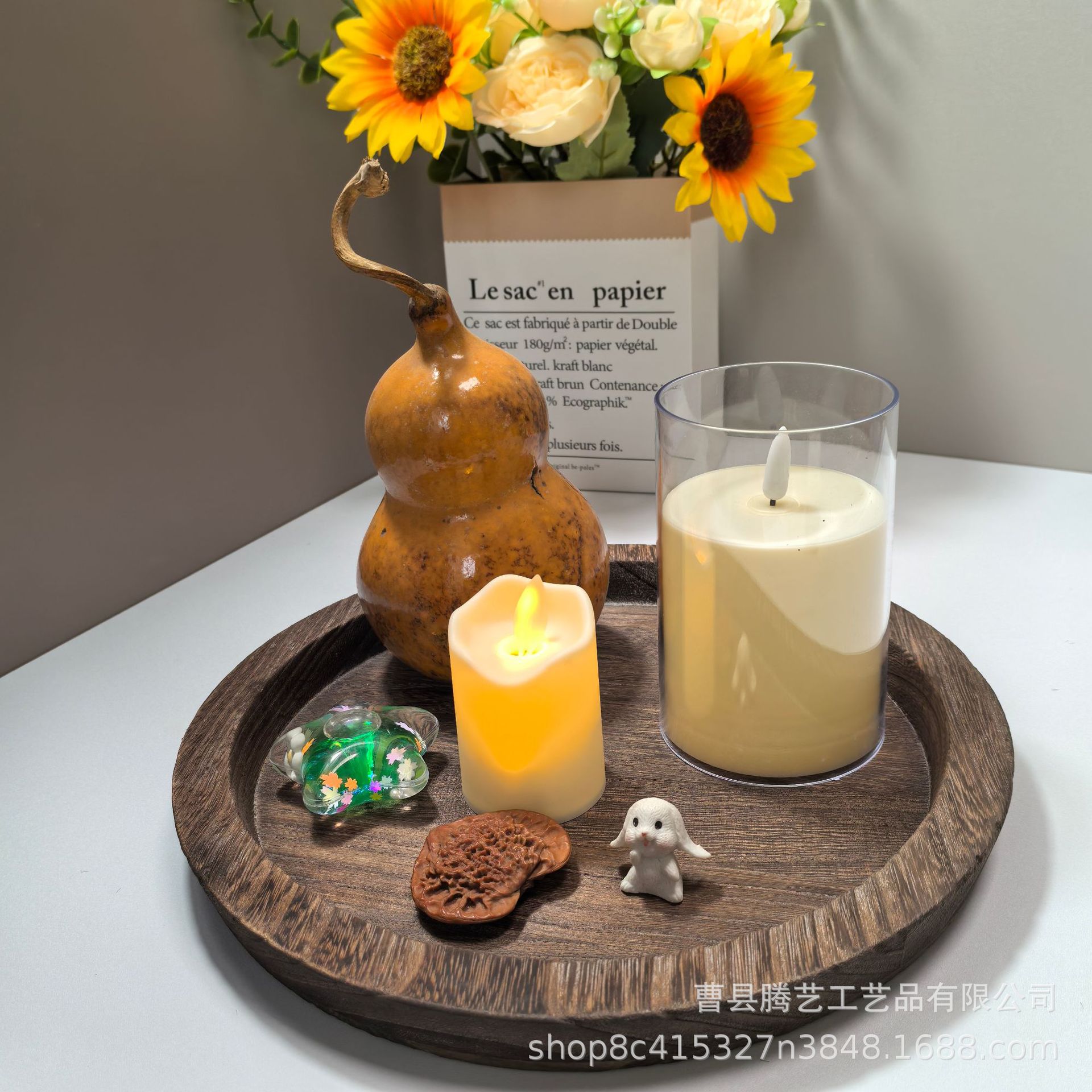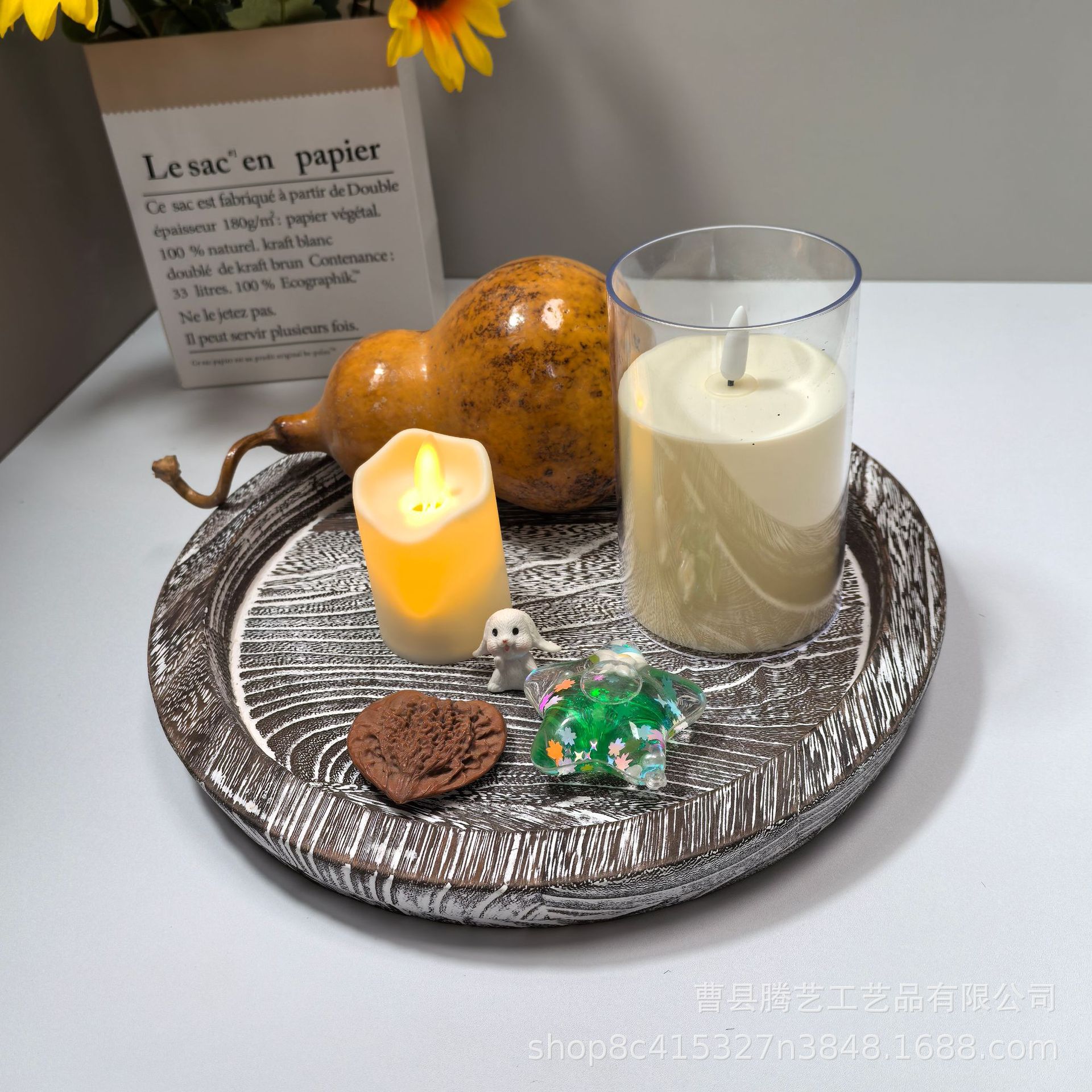베벨 단단한 나무 복고풍 탄소 굽기 색상 흰색 통나무 저장 트레이 둥근 나무 캔들 홀더 홈 장식 트레이