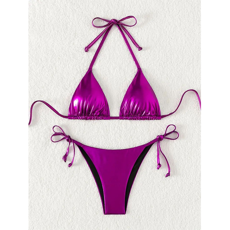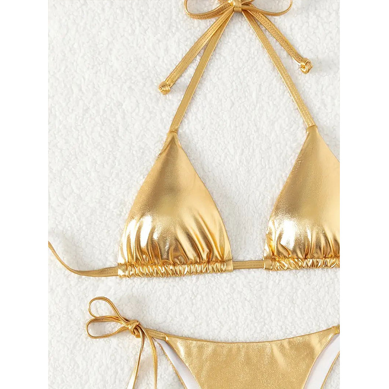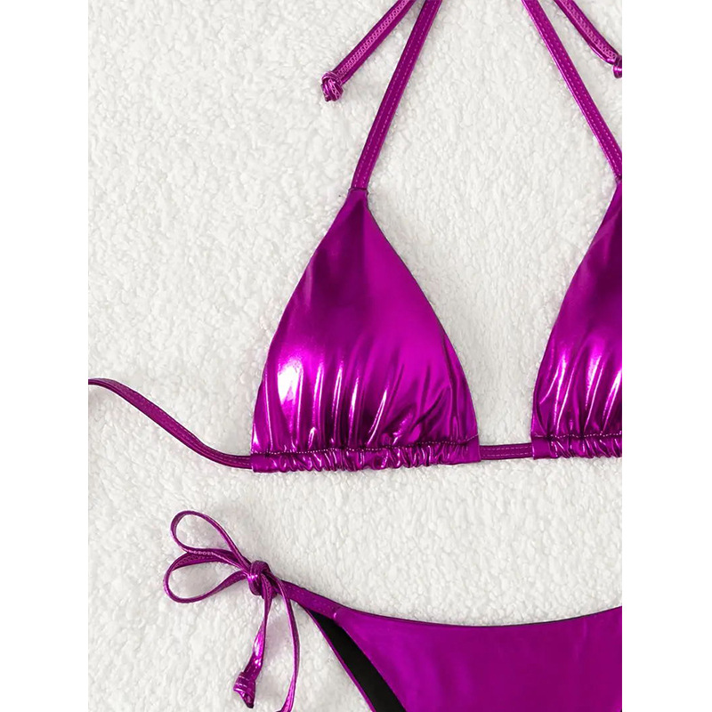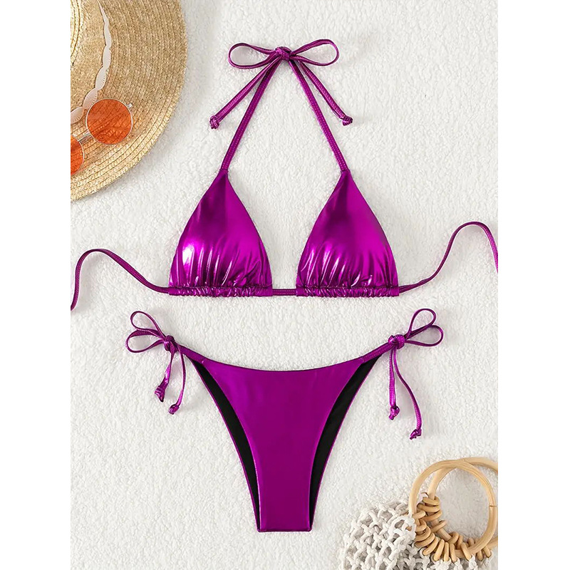 2024 새로운 패션 유럽과 미국의 특수 원단 섹시 교수형 목 레더 디자인 분할 여성 비키니 수영복