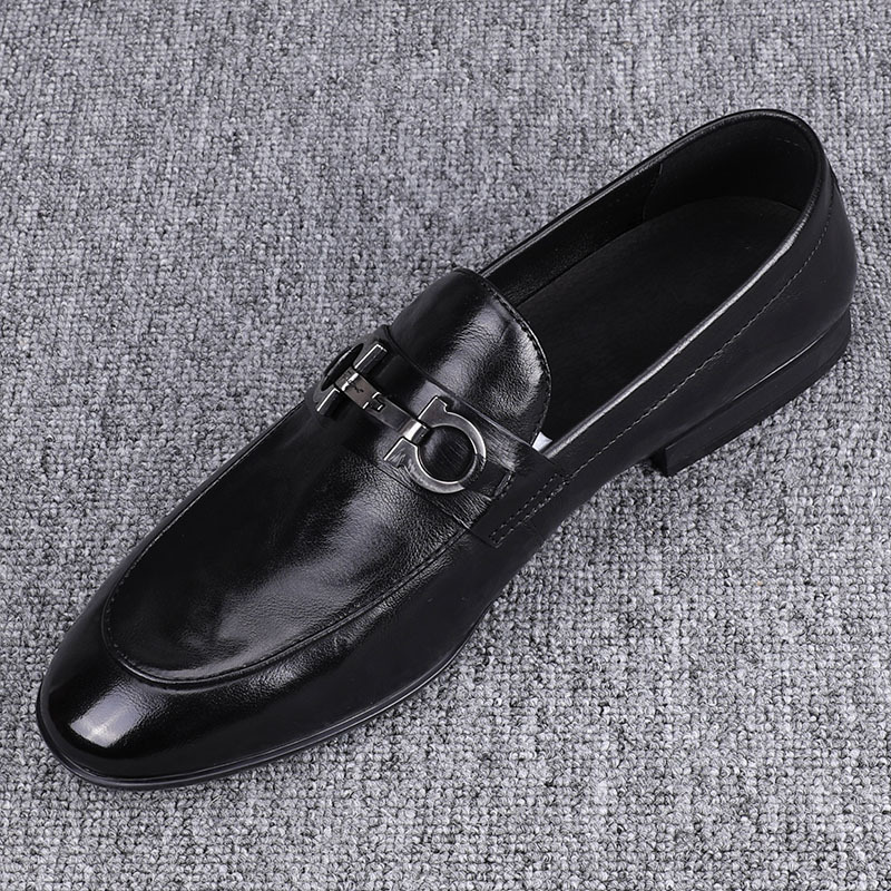 남자 신발 봄과 가을 2024 새로운 순수 가죽 올매치 남성 비즈니스 캐주얼 가죽 신발 한국 유행 말 버클 헤어 스타일리스트스토어 가기