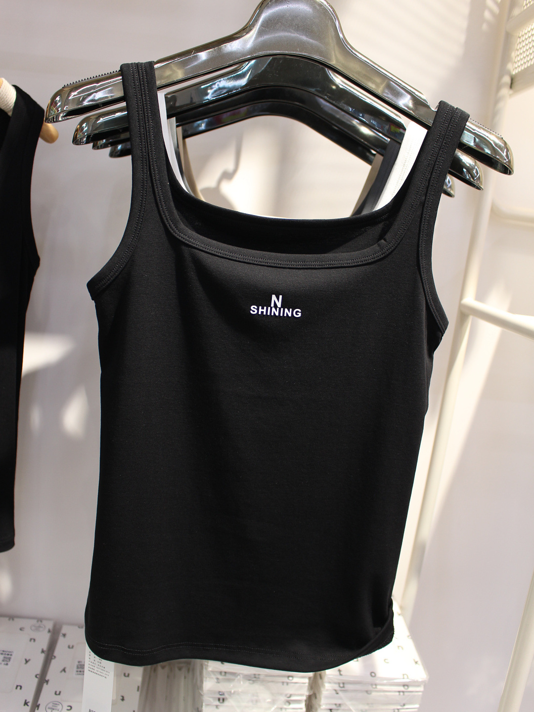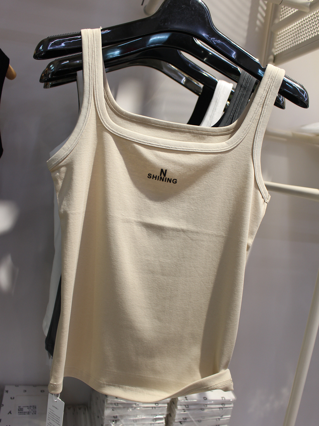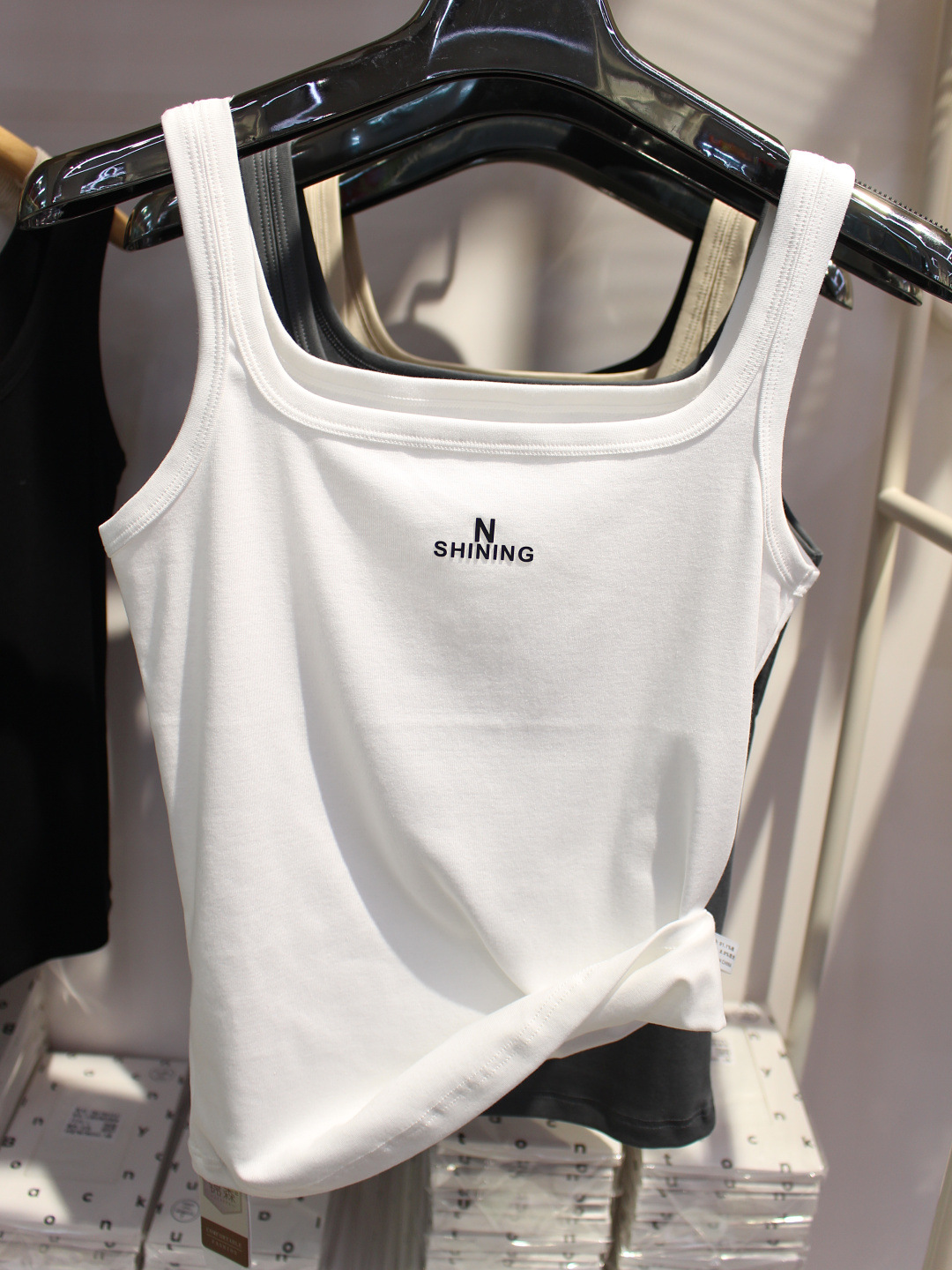 Jinsen Pure Cotton Camisole 여성용 내복 외부 착용 올매치 슬림핏 슬리밍 세련된 스퀘어 칼라 민소매 베이스 셔츠 탑스토어 가기