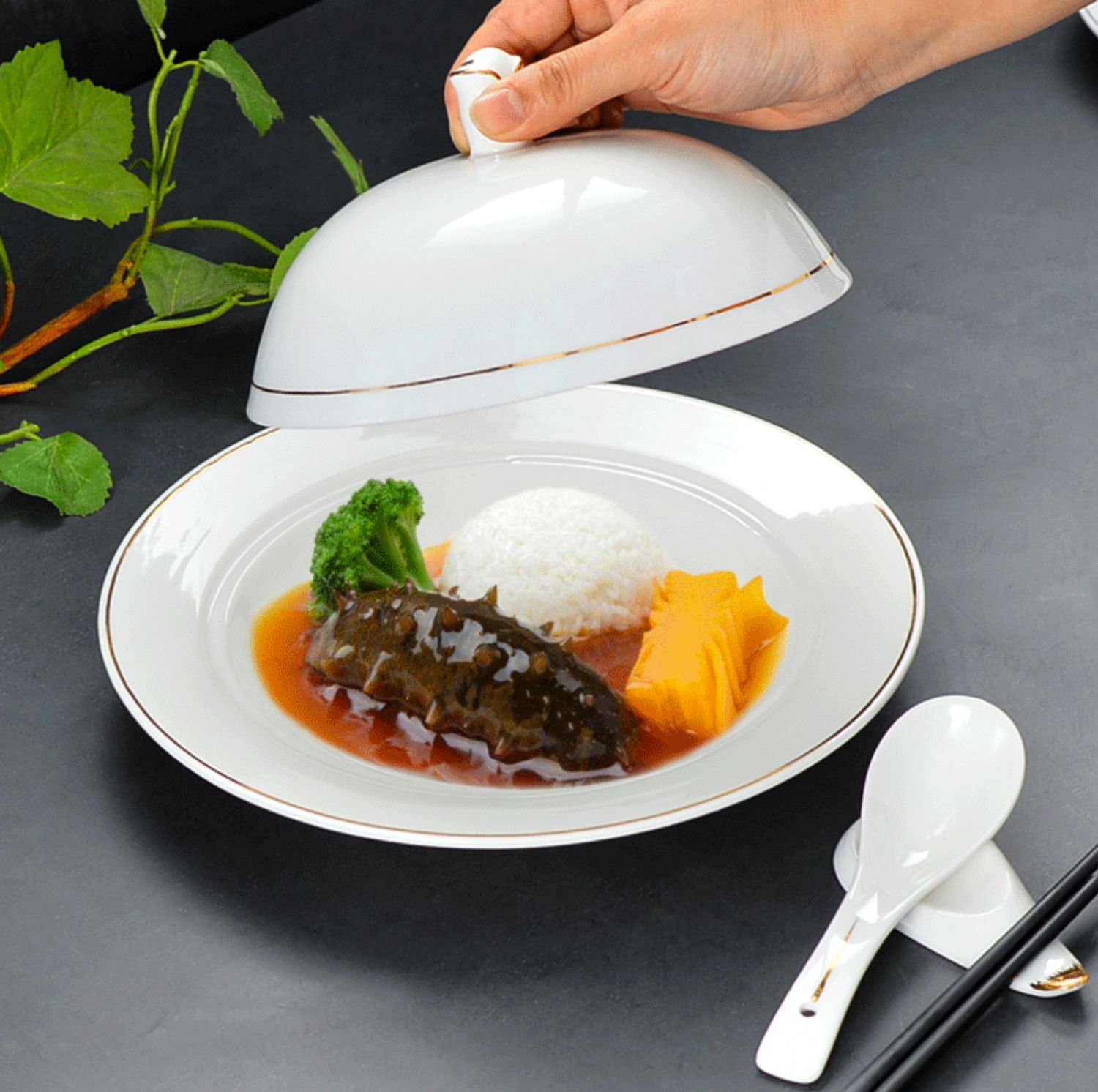 A5L 프놈펜 호텔 뚜껑이 달린 직접 식기 세라믹 플레이트 중국 전복 랴오센 버클 라이스 플레이트 서양 음식 목련스토어 가기