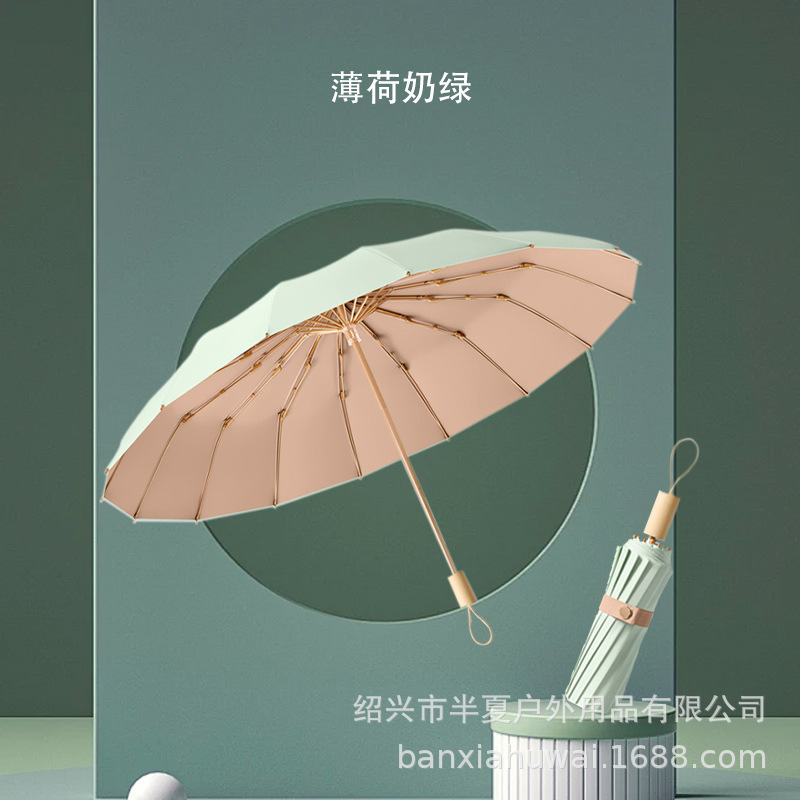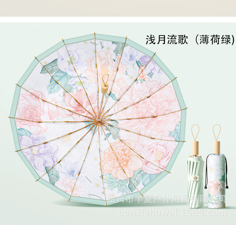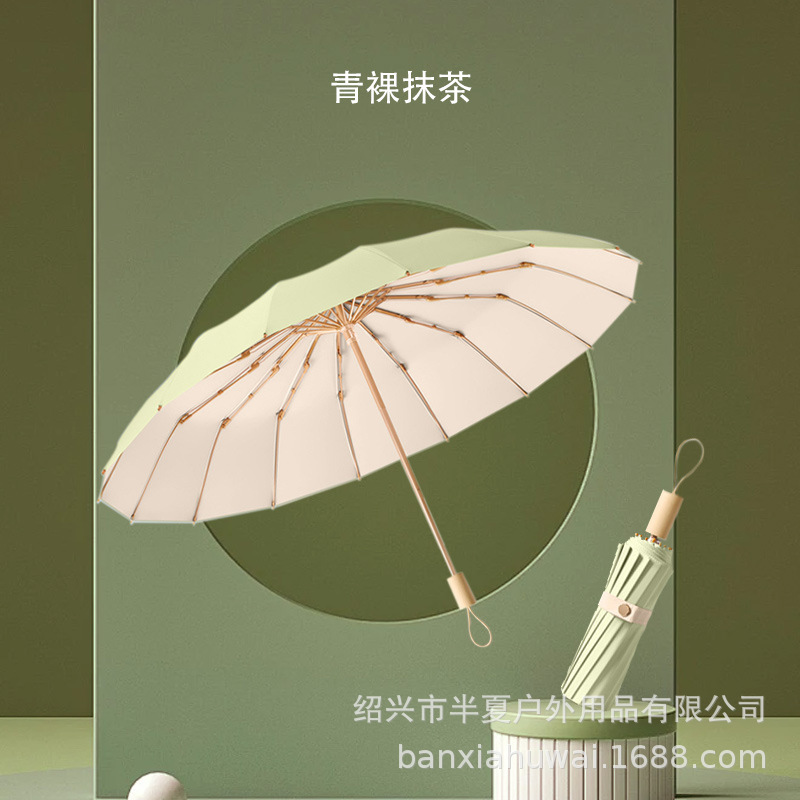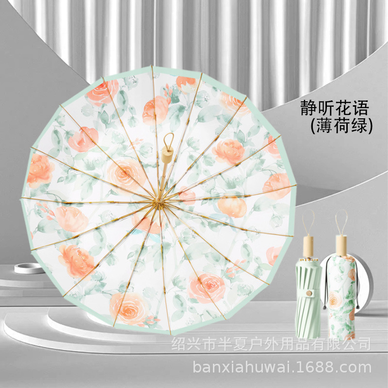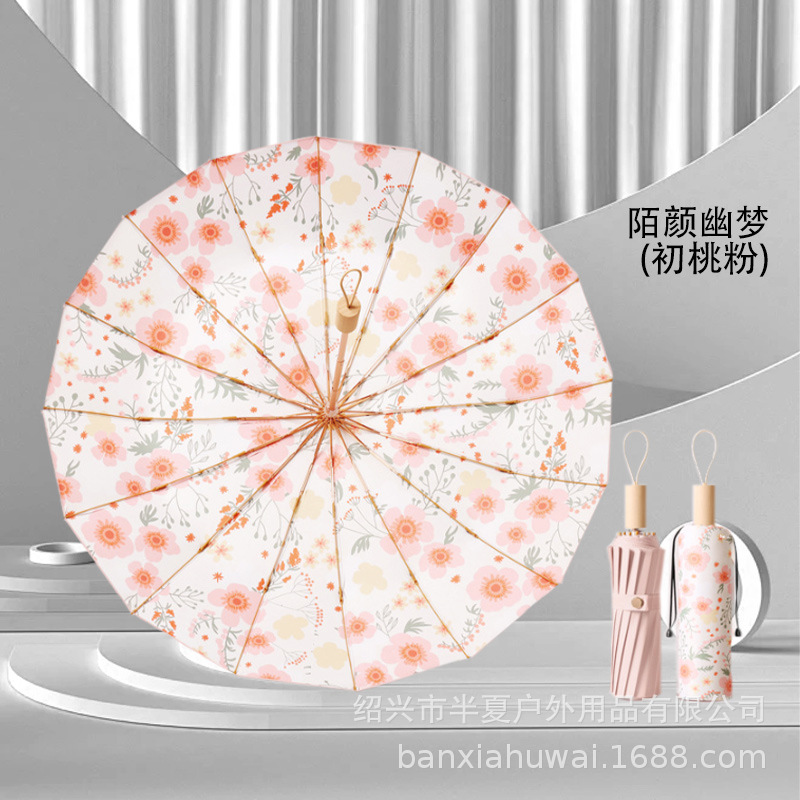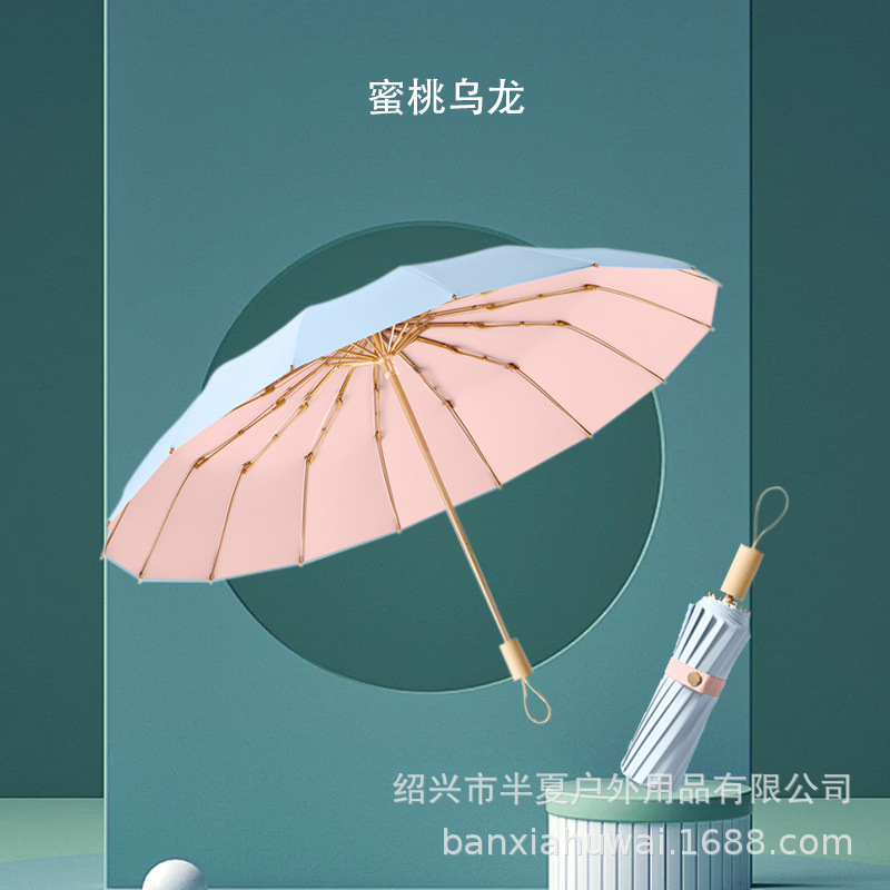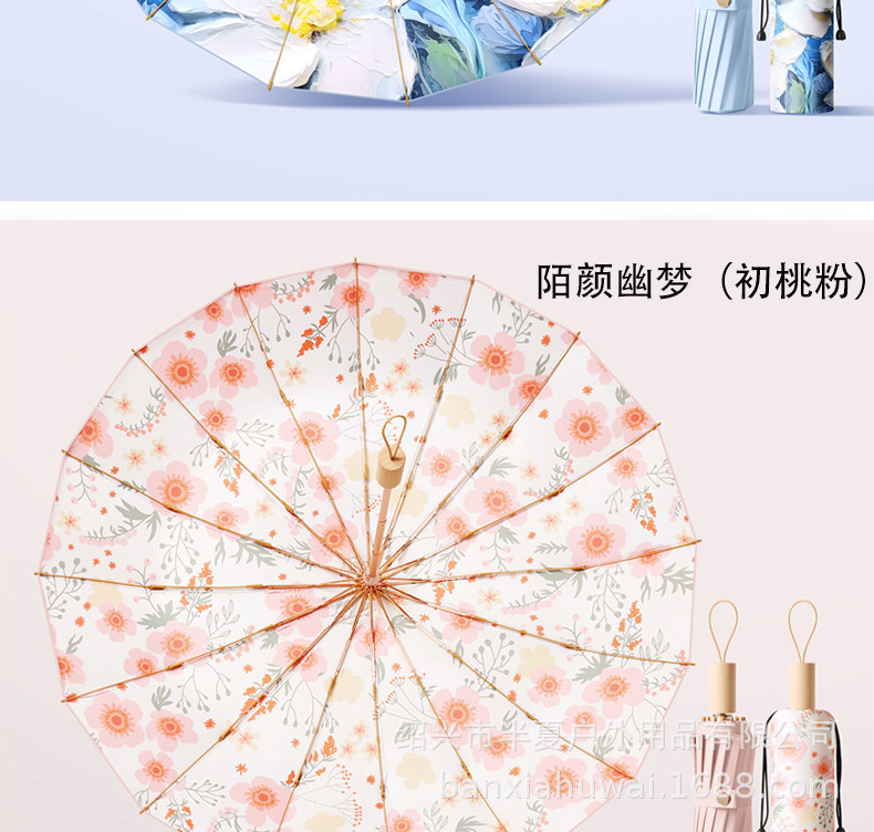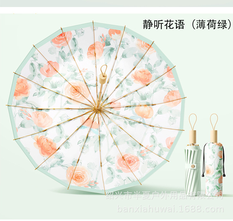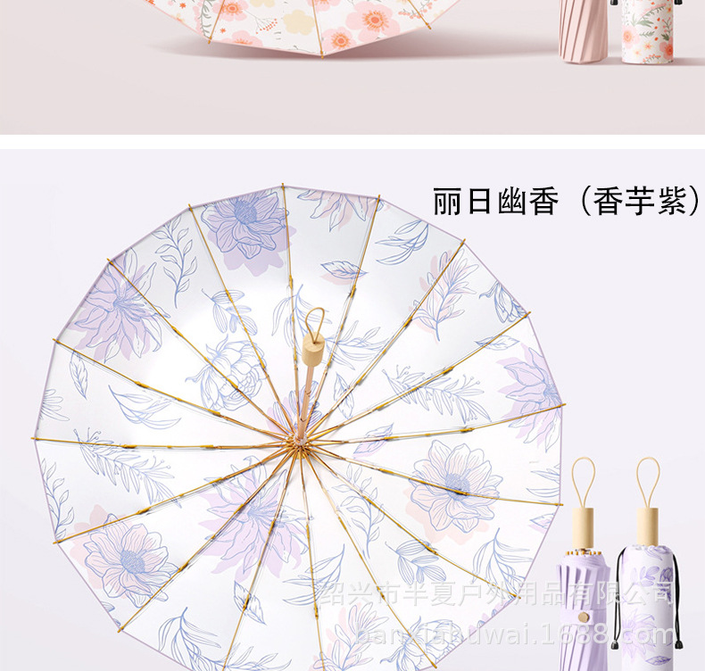 한국 스타일 작은 맑은 16 본 컬러 접착제 나무 손잡이 양산 우산 소녀 매뉴얼 복고풍 3 배 맑고 비 이중 사용 접는 우산