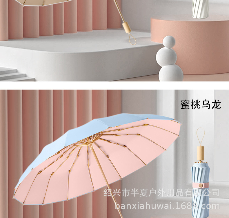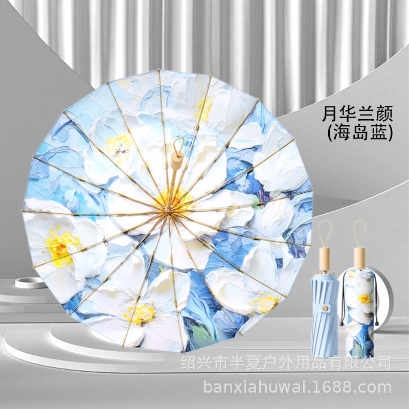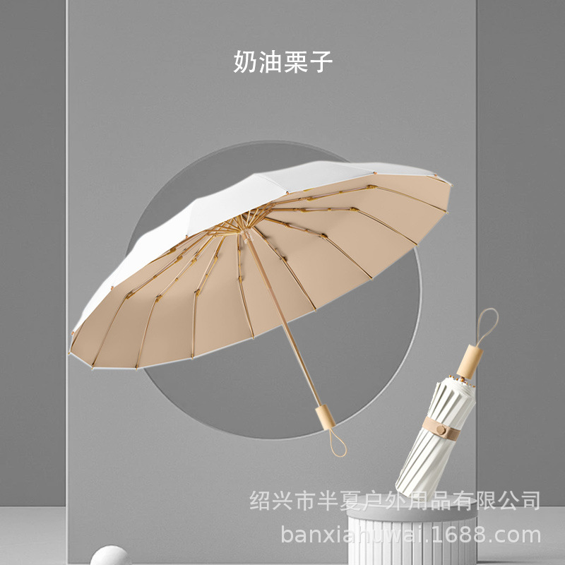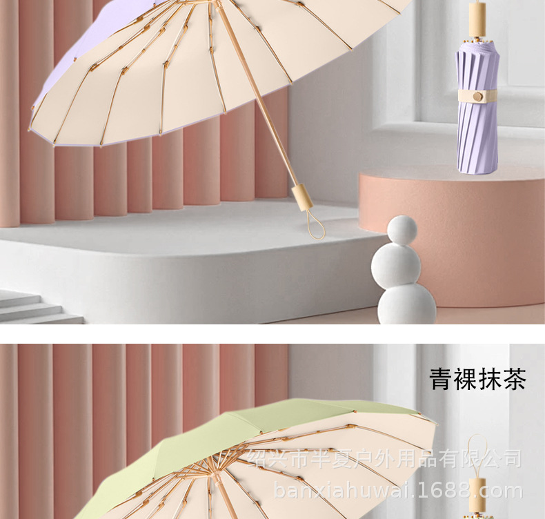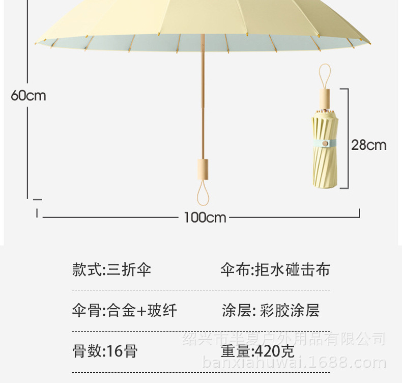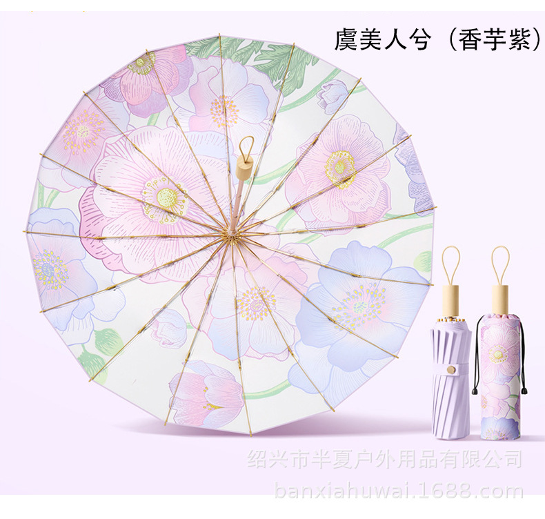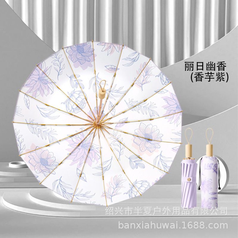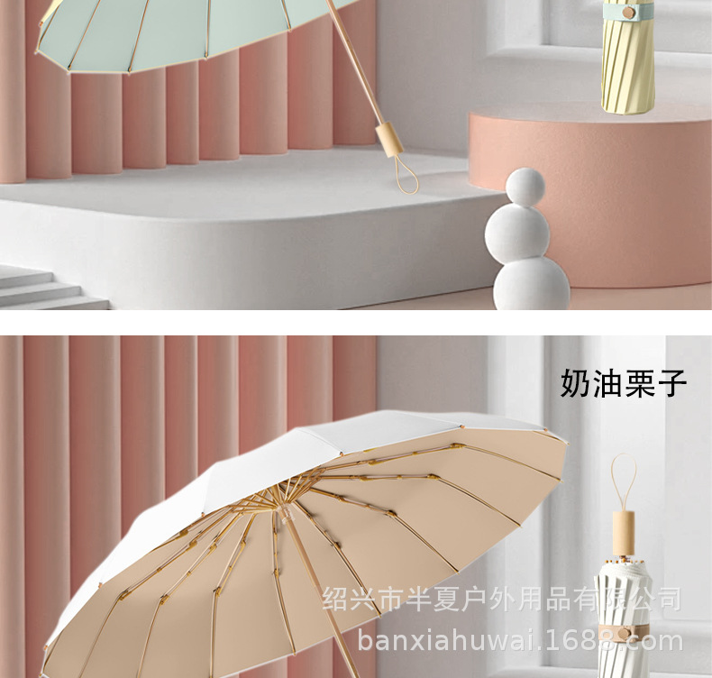 한국 스타일 작은 맑은 16 본 컬러 접착제 나무 손잡이 양산 우산 소녀 매뉴얼 복고풍 3 배 맑고 비 이중 사용 접는 우산