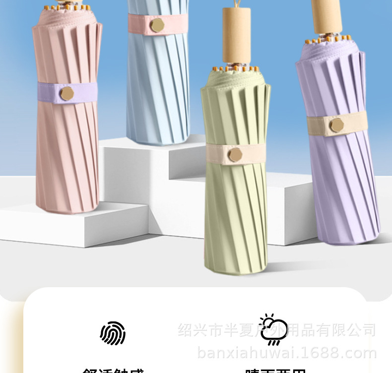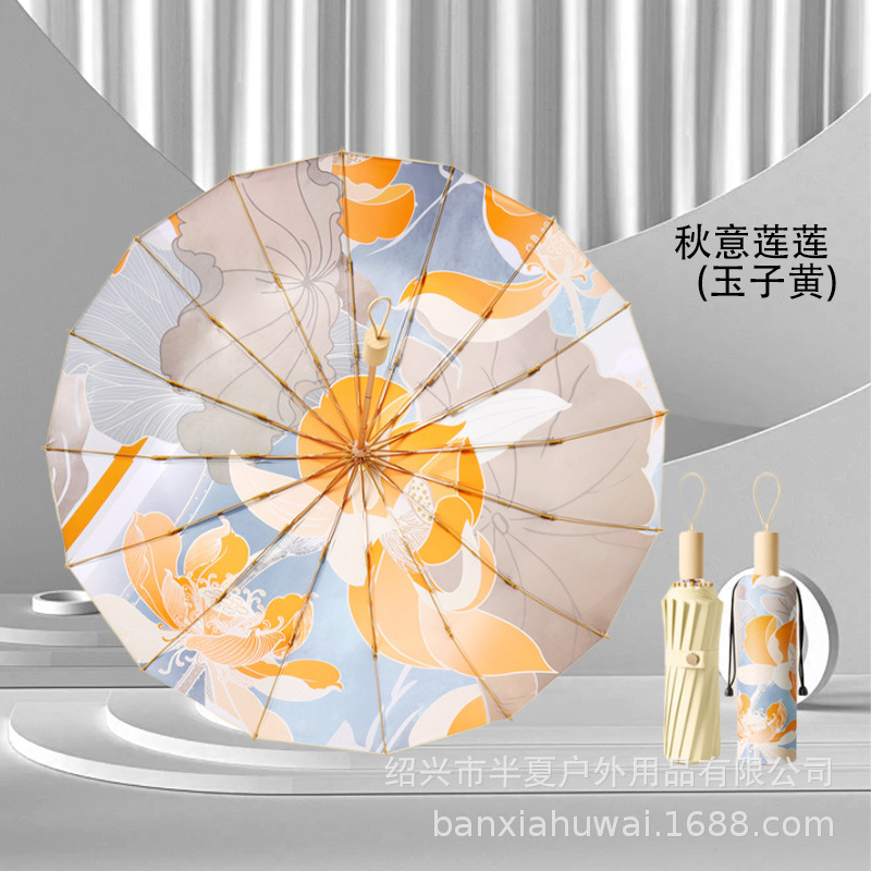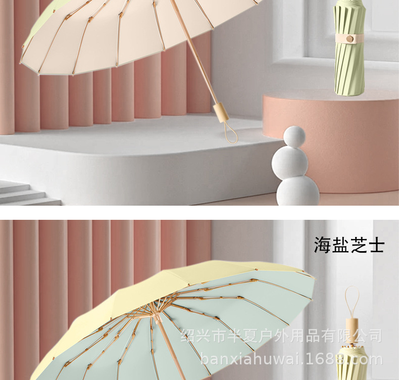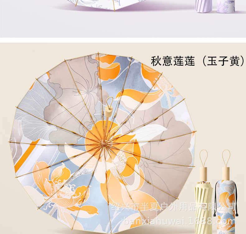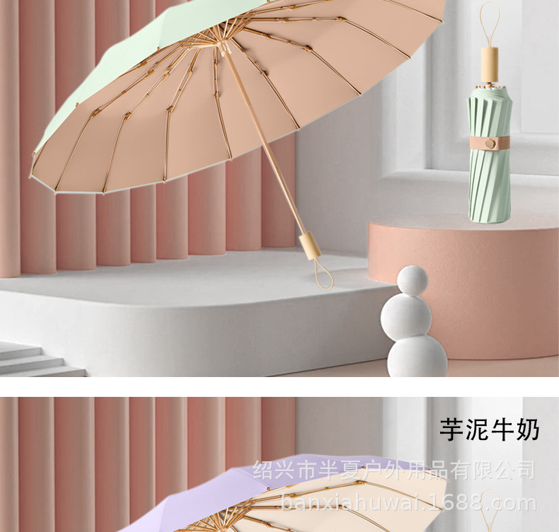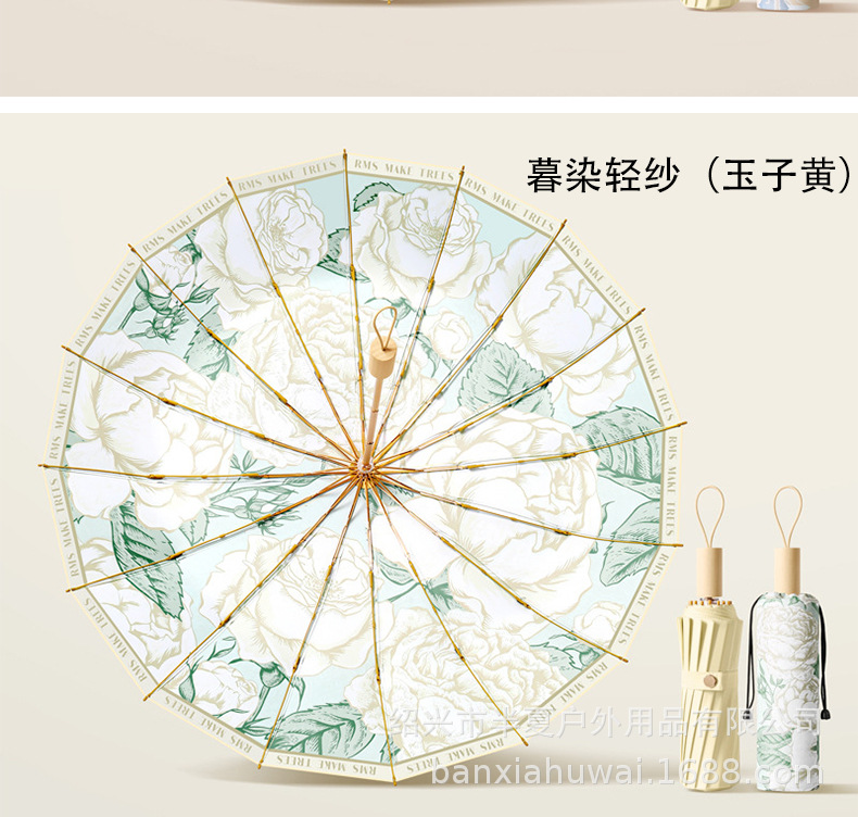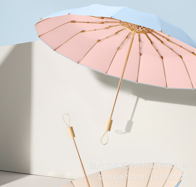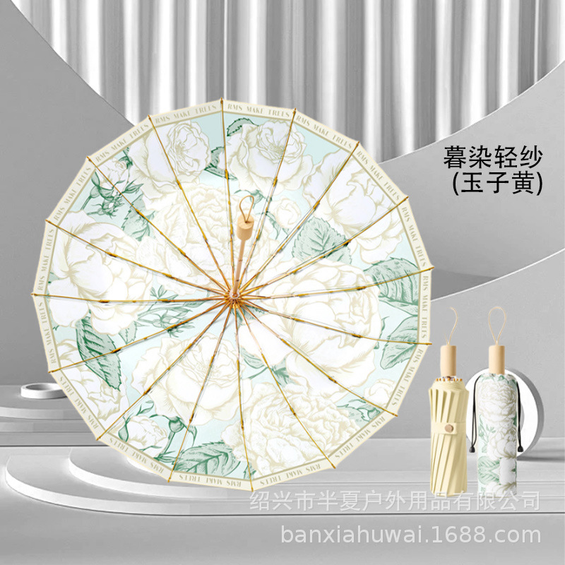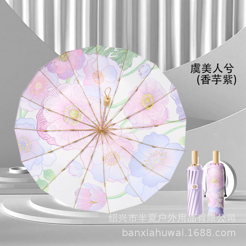 한국 스타일 작은 맑은 16 본 컬러 접착제 나무 손잡이 양산 우산 소녀 매뉴얼 복고풍 3 배 맑고 비 이중 사용 접는 우산