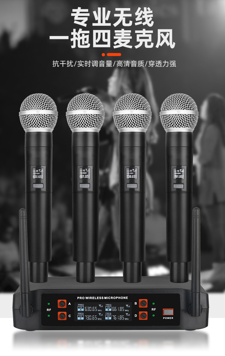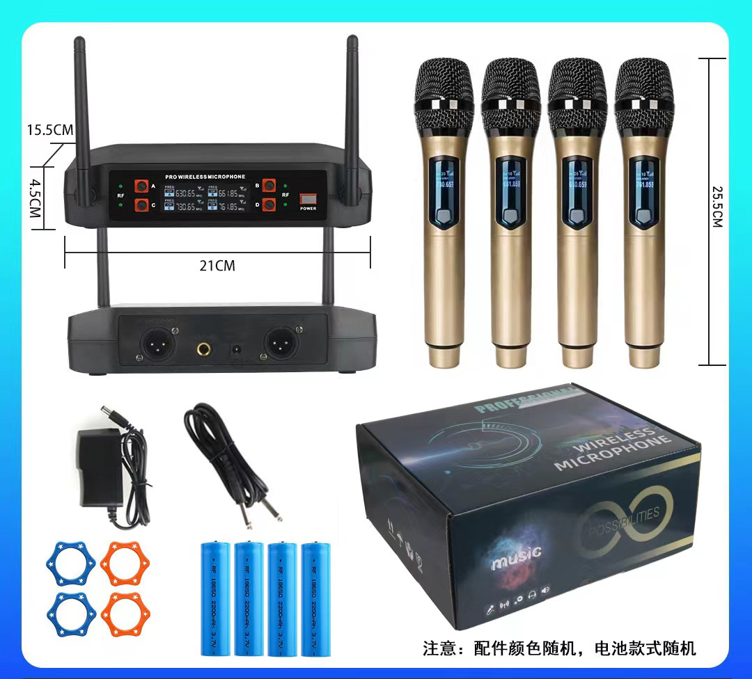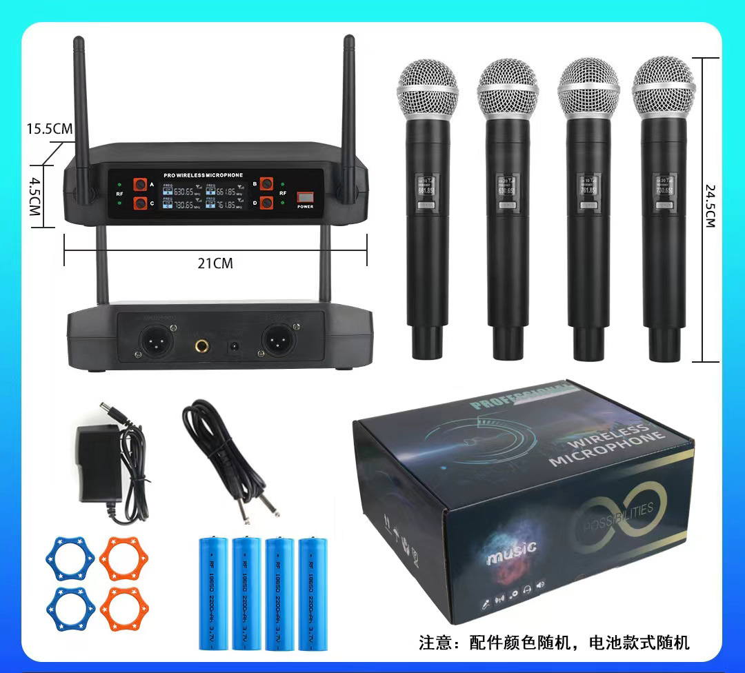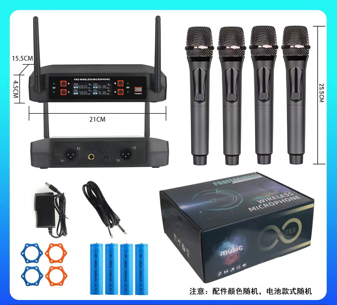 국경 간 무선 마이크 1 대 4 충전 노래 야외 라이브 무대 공연 회의 핸드 헬드 마이크