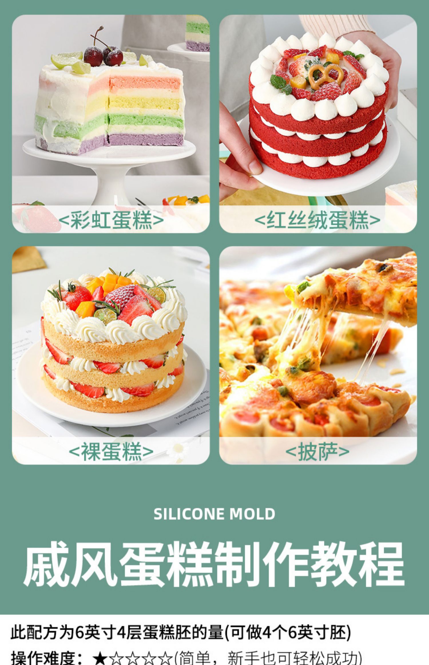 A5L 실리콘 시폰 케이크 금형 4 인치 6/8 4 인치 컷 프리 레이어 레인보우 베이커웨어 가정용 베이킹 도구 저항
