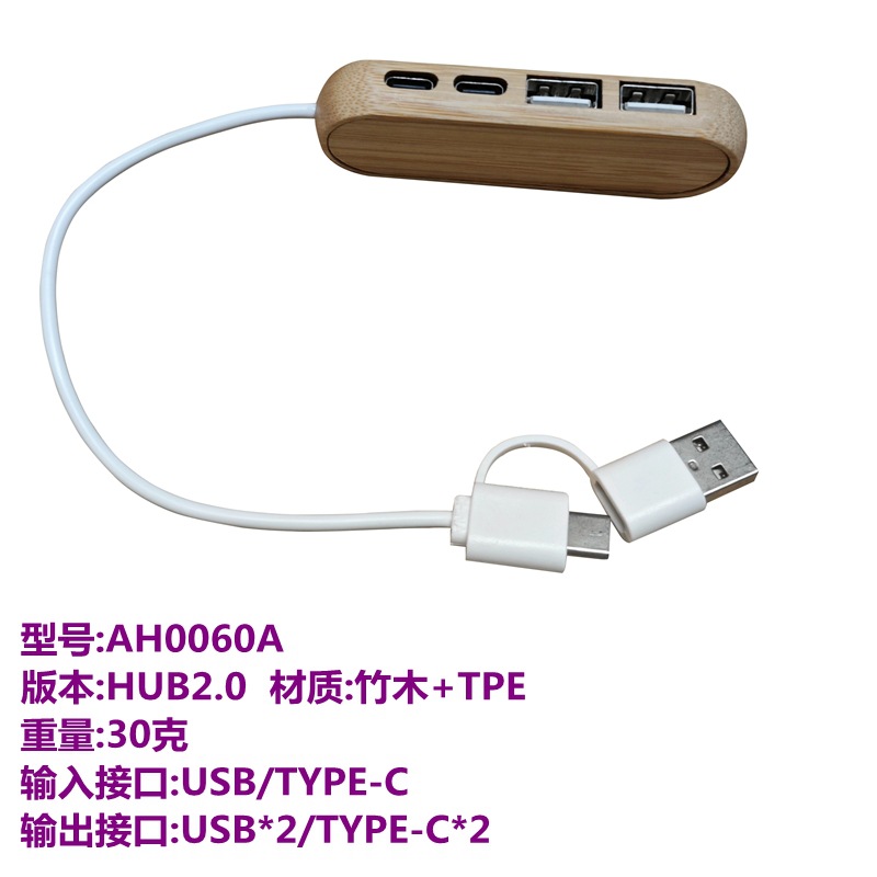 확장 도크 TYPE-C 도킹 스테이션 대나무 나무 USB 멀티 포트 스플리터 원 아웃 4 허브 다기능 확장 도크스토어 가기