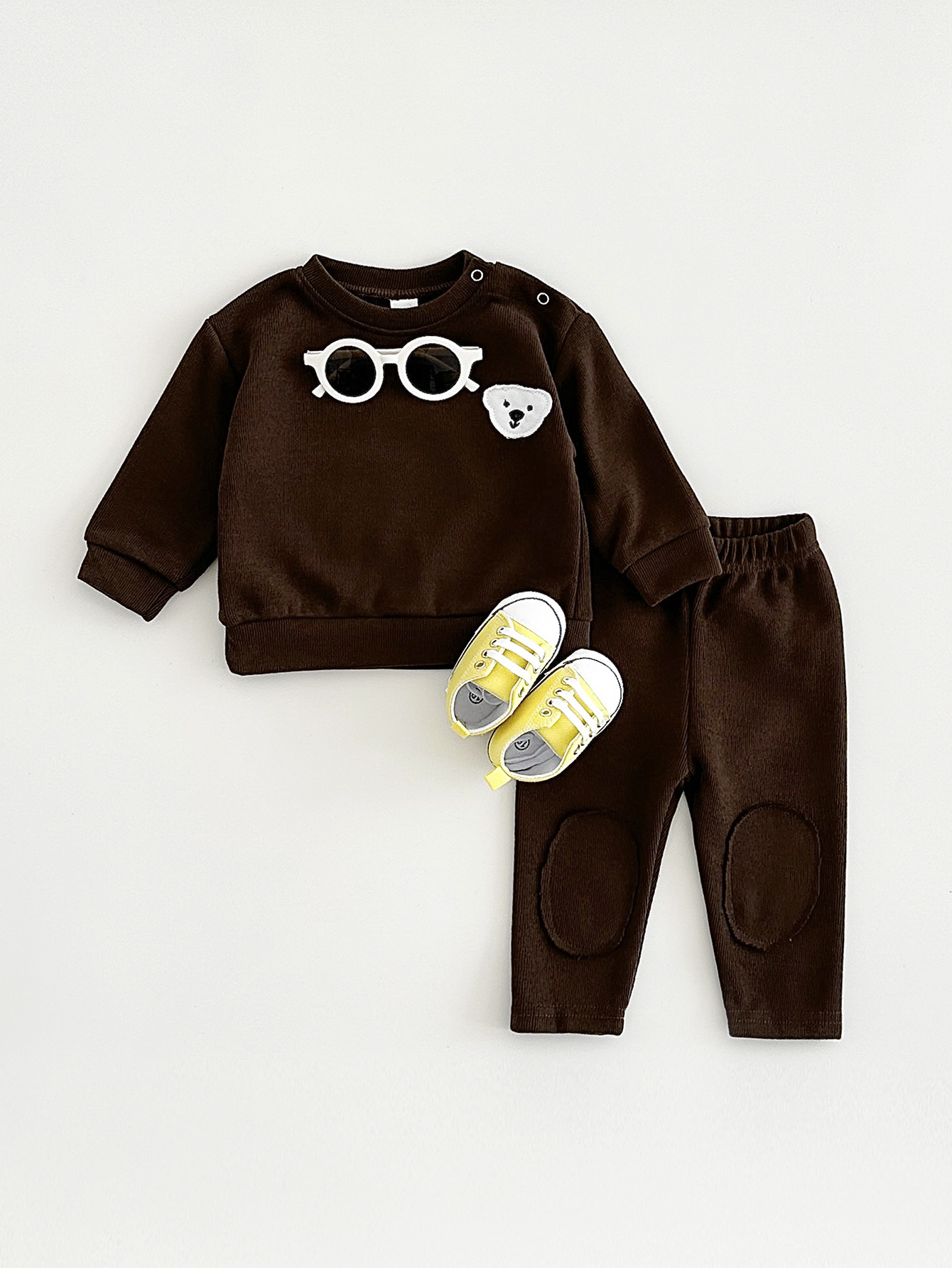 INS 한국판 봄과 가을 신생아 동물 자수 긴 소매 투피스 세트 소년 소녀 아기 스웨터 세트 국경