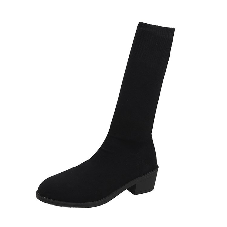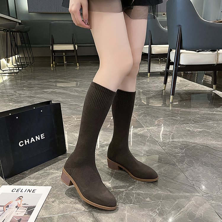 2024 새로운 대외 무역 두꺼운 뒤꿈치 스트레치 플러스 사이즈 얇은 부츠 여성의 뾰족한 니트 양말 부츠 도매스토어 가기