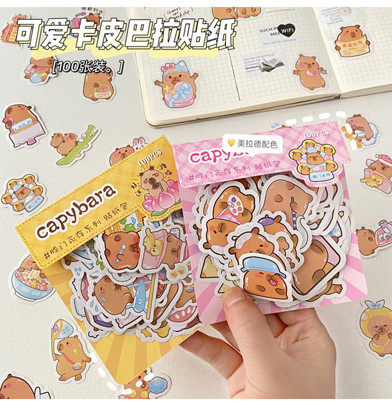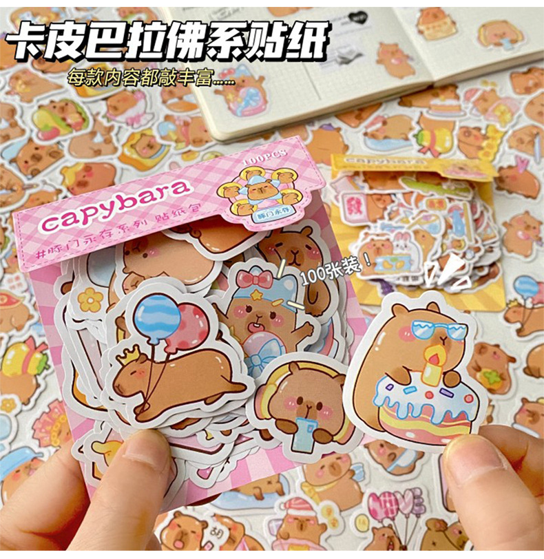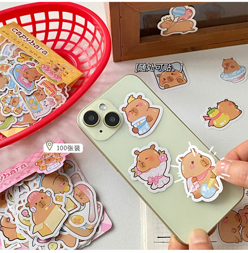 100 스티커 만화 손 계정 스티커 귀여운 카피 바라 스티커 카피 발라 전화 케이스 DIY 장식 스티커 도매스토어 가기