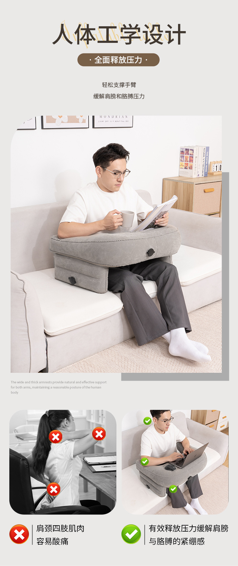 팔걸이가있는 풍선 독서 테이블 소파 컴퓨터 책상 침대 무릎 게임 테이블 베개 휴대용 에어 쿠션 책상