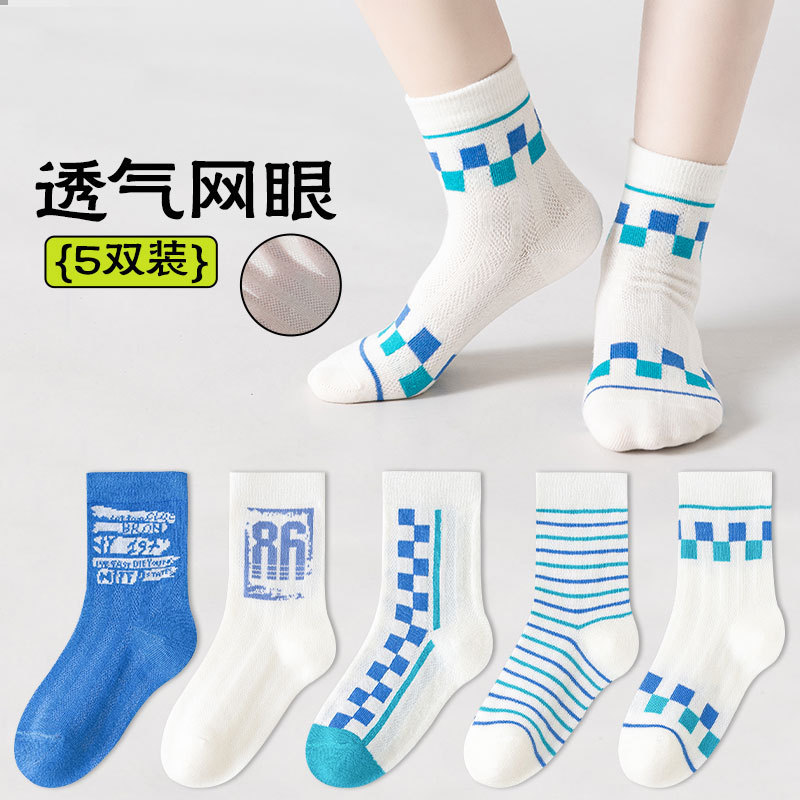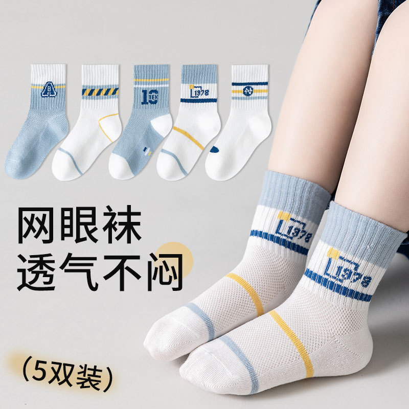 봄과 여름 새로운 중간 튜브 메쉬 소년 소녀를위한 어린이 탈취면 양말 1-12 세 영숫자 아기 양말스토어 가기