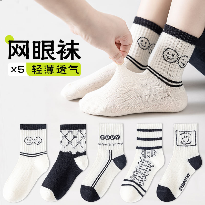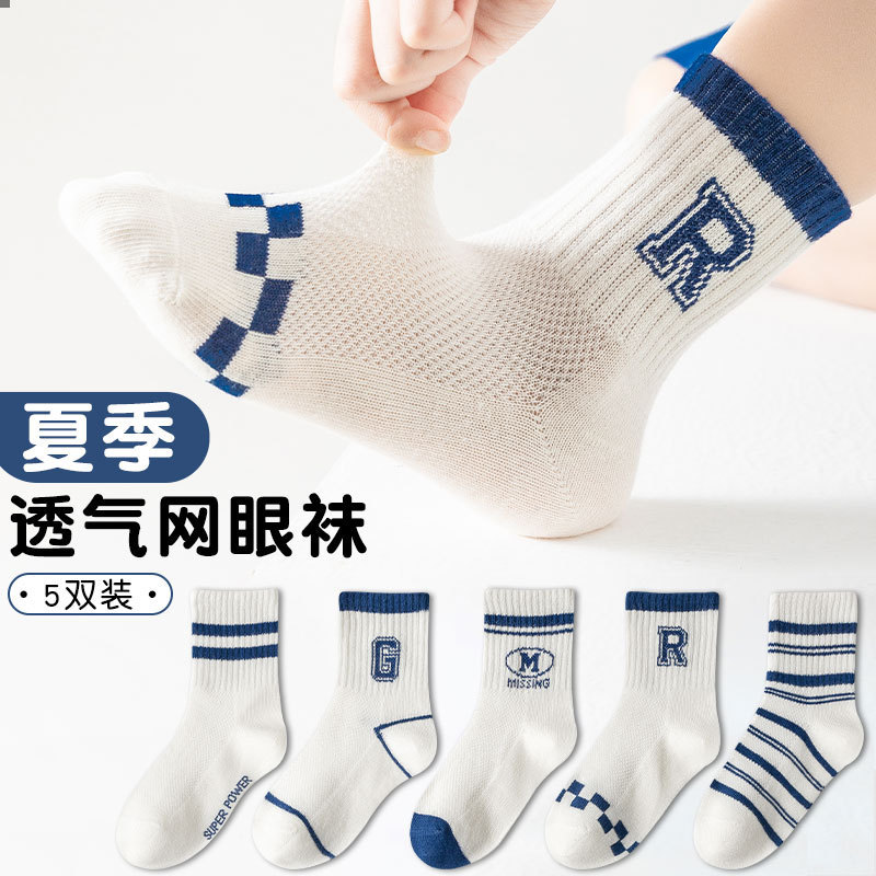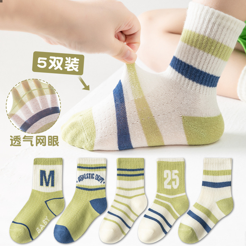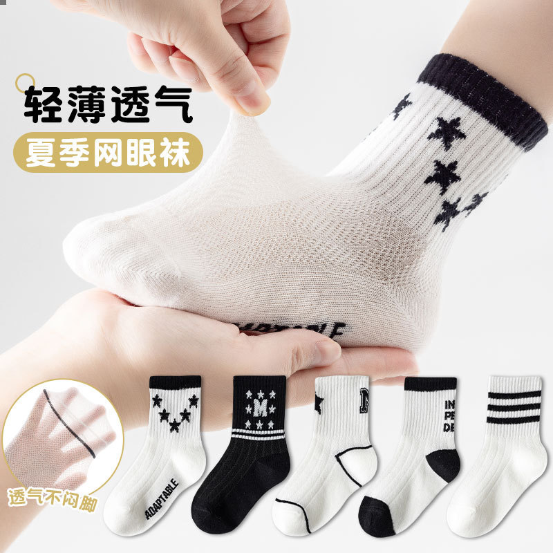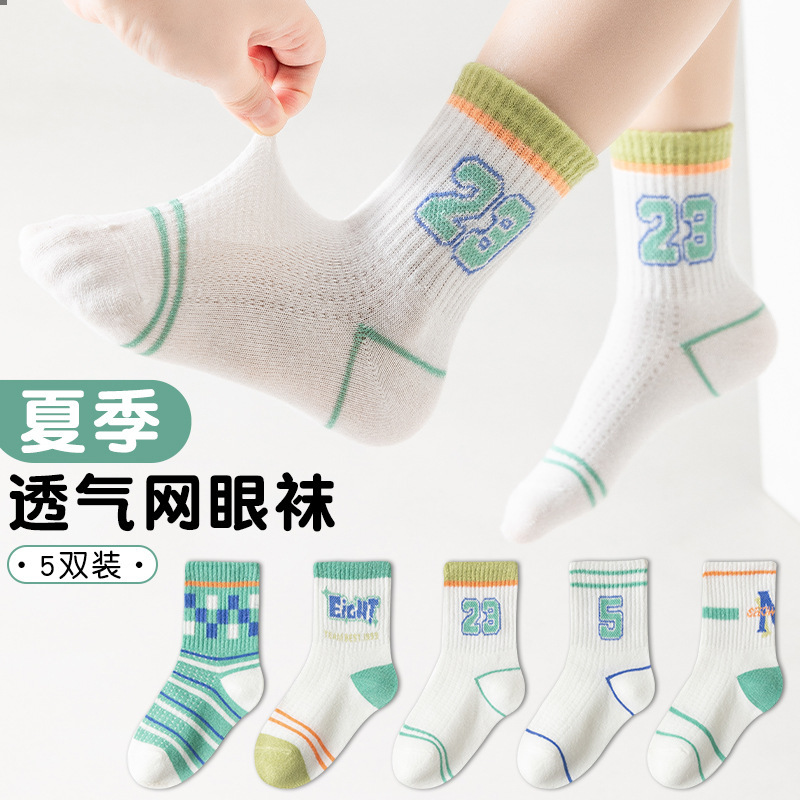 봄과 여름 새로운 중간 튜브 메쉬 소년 소녀를위한 어린이 탈취면 양말 1-12 세 영숫자 아기 양말