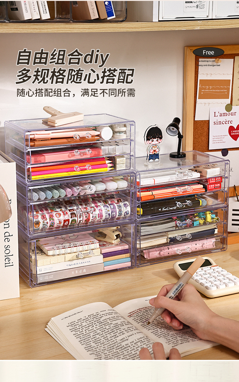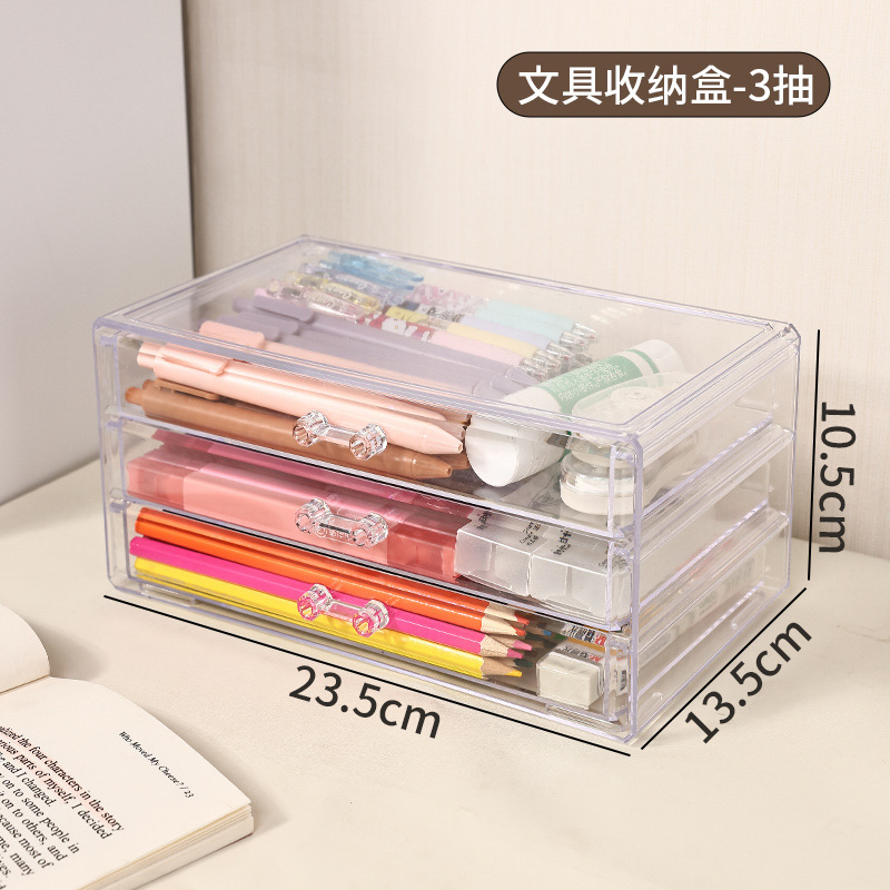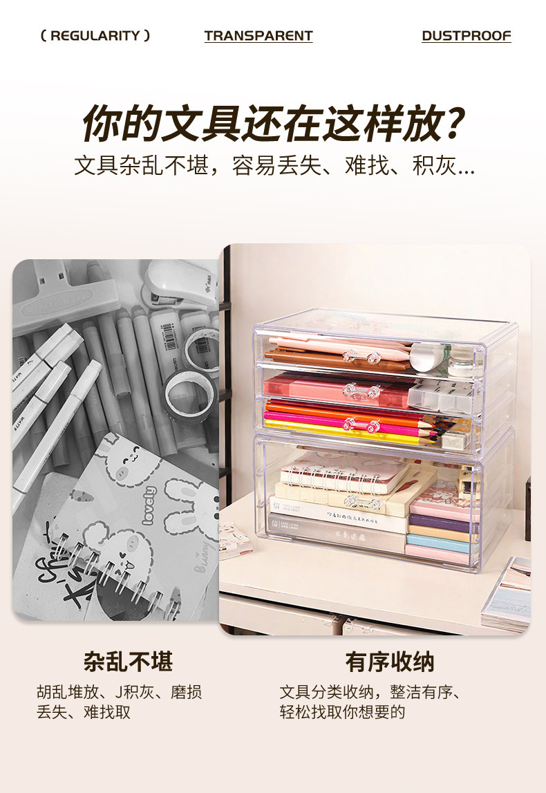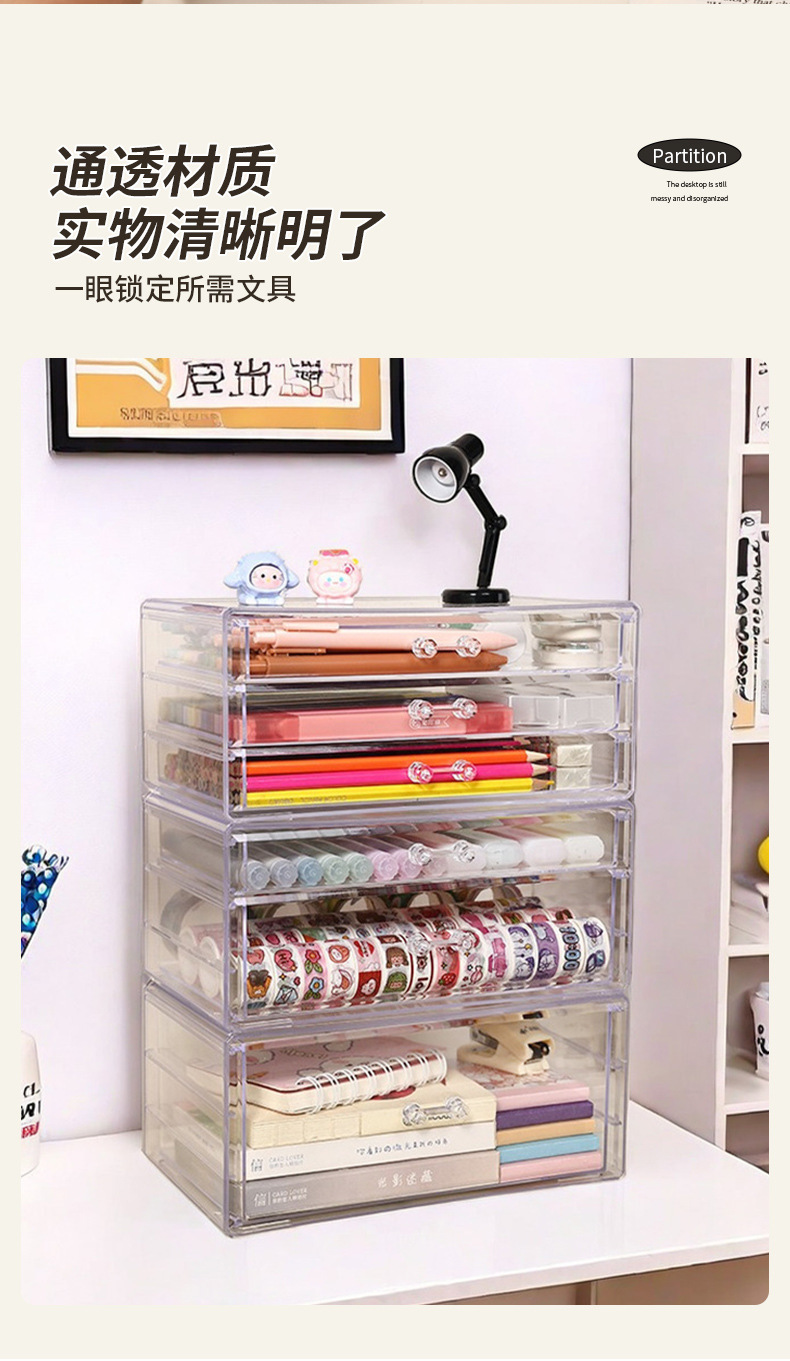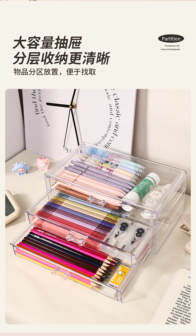 桌面文具收纳盒透明多层抽屉式桌面画笔彩笔手账胶带置物架