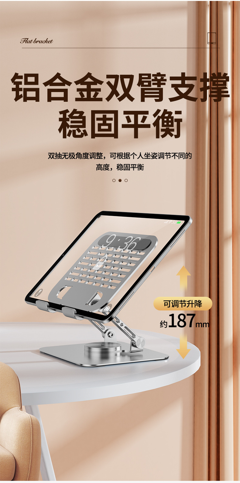태블릿 컴퓨터 스탠드, 탄소강 소재, 접이식, 회전식, 휴대용, 수납 가능, 휴대폰, 노트북, 데스크탑 스탠드