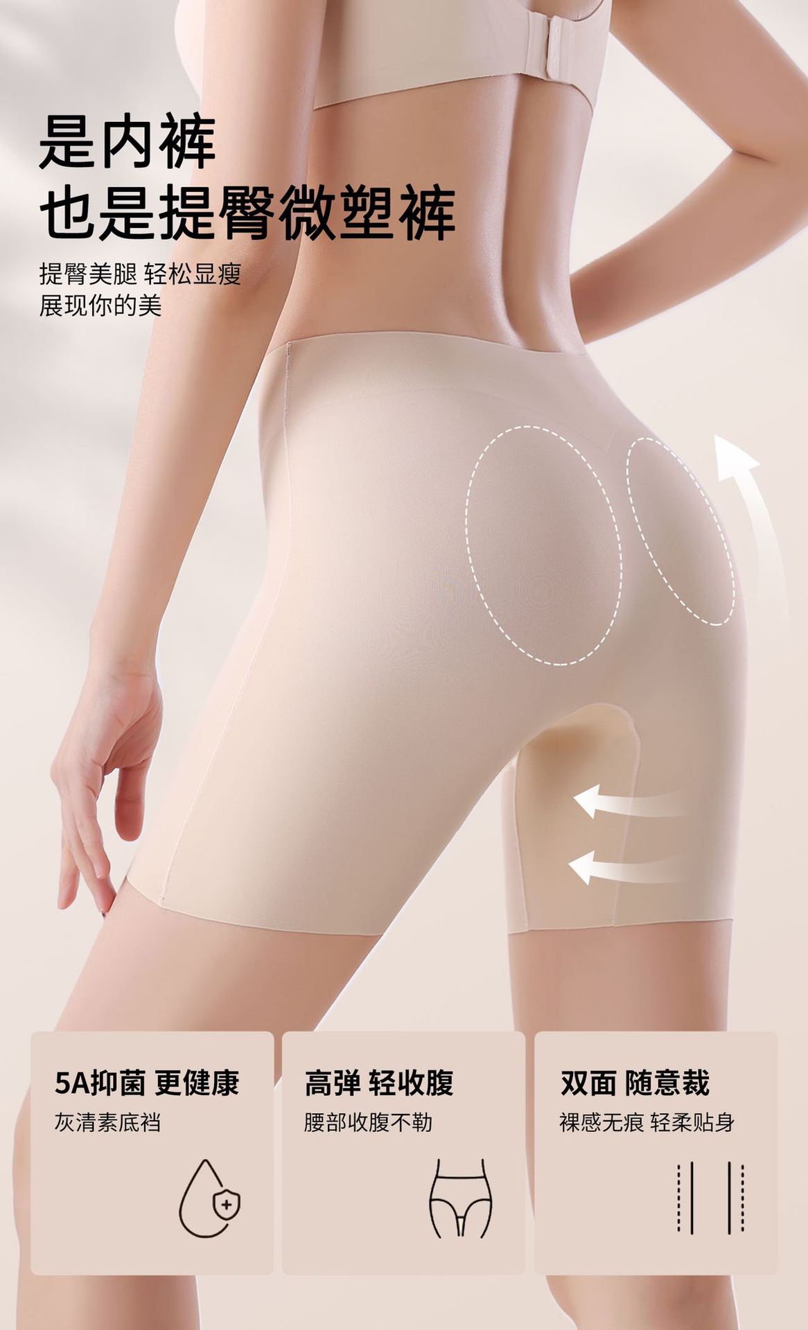 하이웨이스트 무봉제 안전팬츠 3-in-1 여성용 노출방지 무롤링 엣지 복부보정 힙업 아이스 실크 속바지