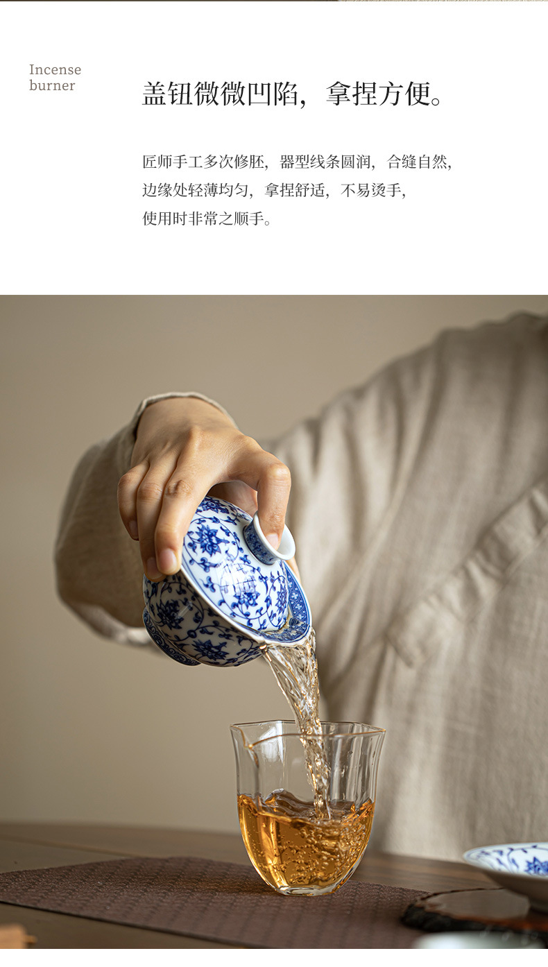 Jingdezhen Unglaze 컬러 Sancai 파란색과 흰색 커버 그릇 차 세트 티 보울 티 그릇 세라믹 가정용 쿵푸 차가 뜨겁지 않음스토어 가기