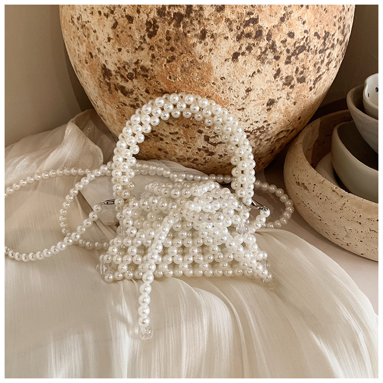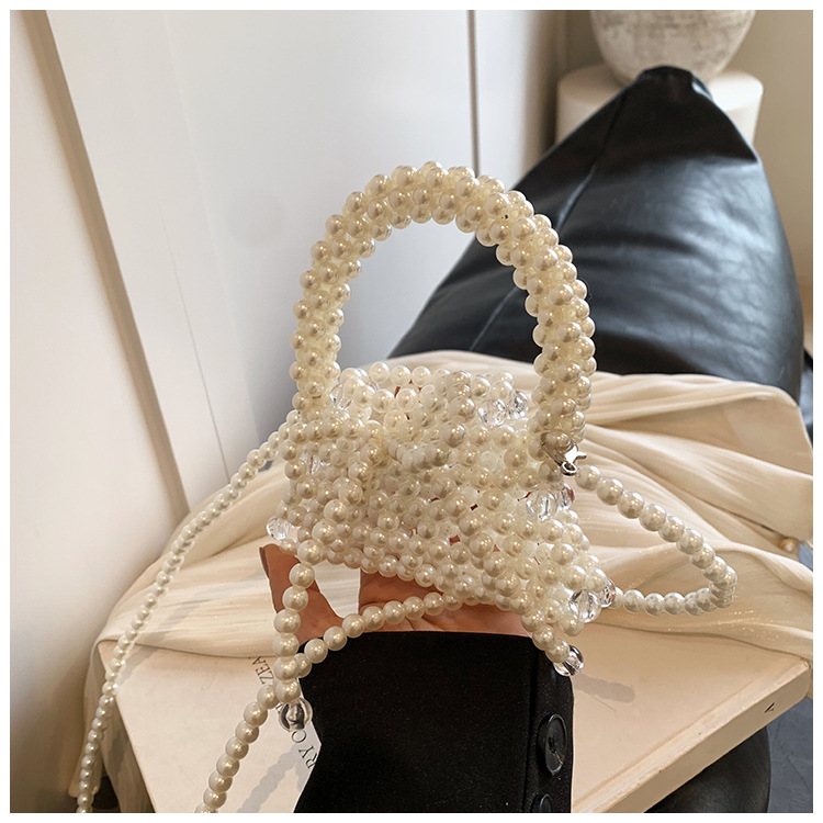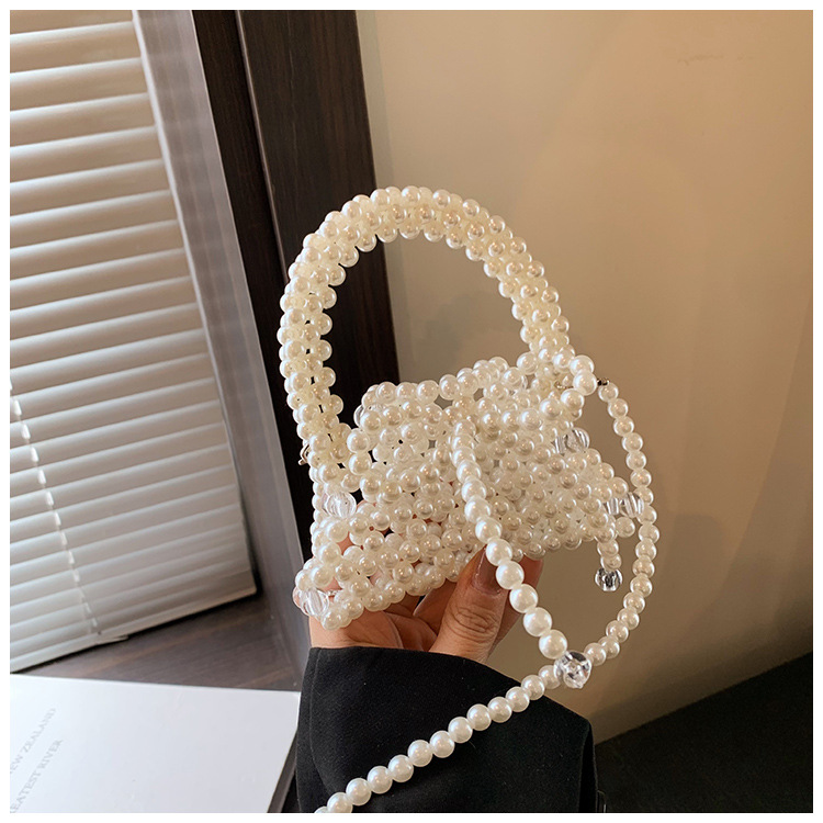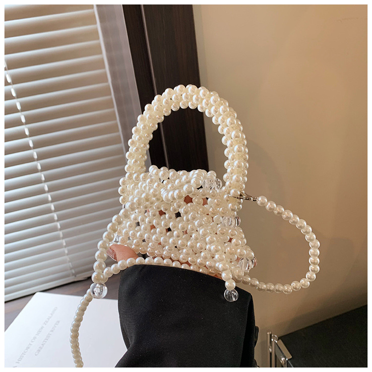 짠 어린이 가방 여성 여름 진주 2024 새로운 미니 소녀의 구슬 가방 아기 소녀의 크로스 바디 작은 가방 휴대용스토어 가기