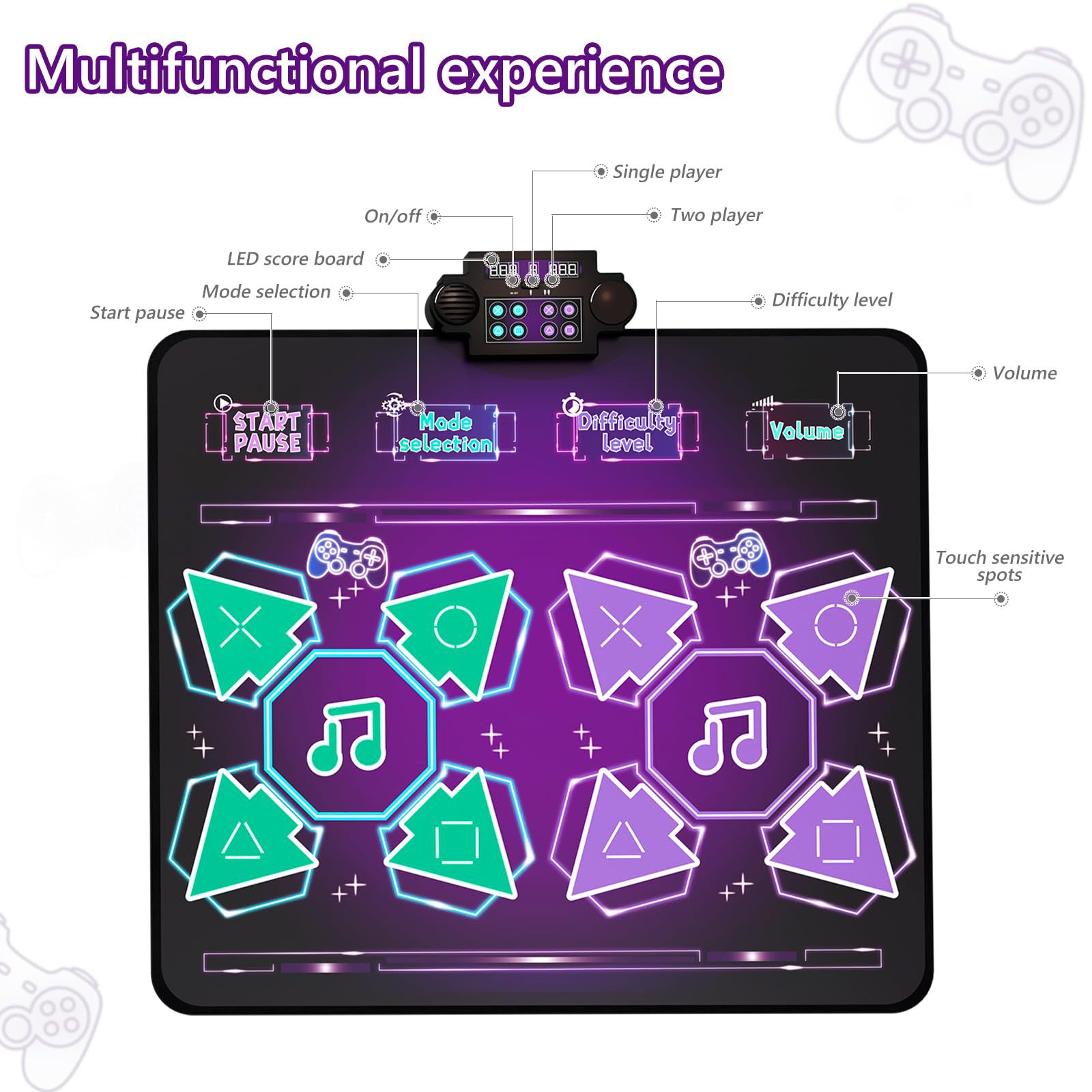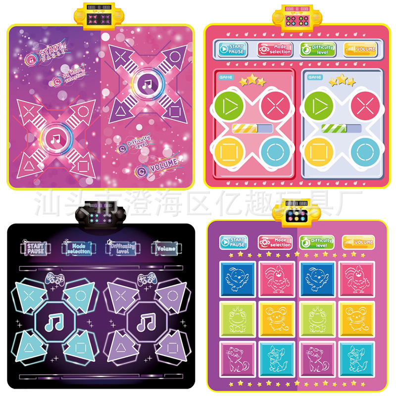 单人款跳舞毯,表面防水PE+OPP复合膜,底布PEVA防滑底布,环保材质可过测试,毯面图案、功能和IC都可定制,欢迎咨询。