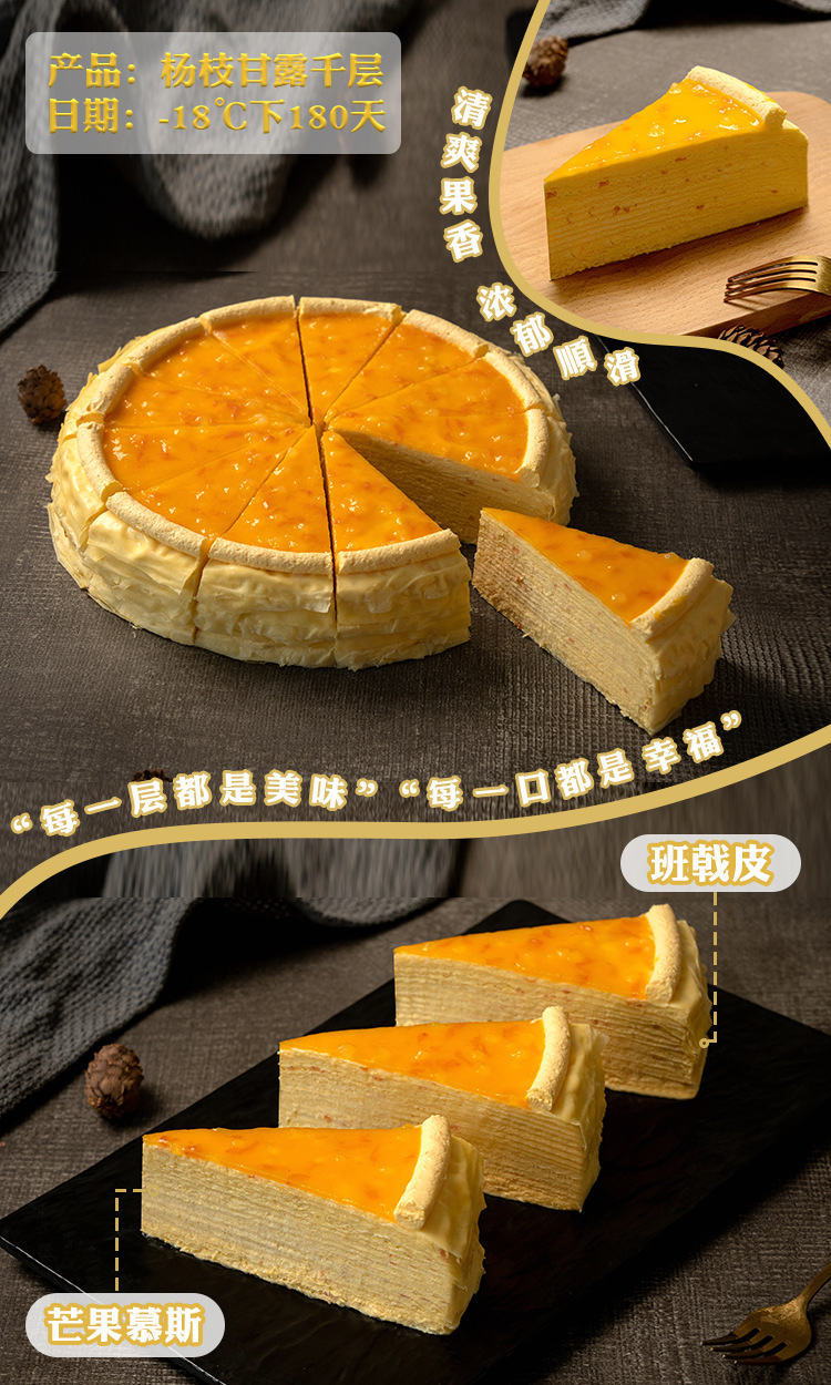두리안 밀푀유 팬케이크 카페 냉동 케이크 푸란코 애프터눈 티 브레이크 무스 페이스트리 상업용 디저트 스낵