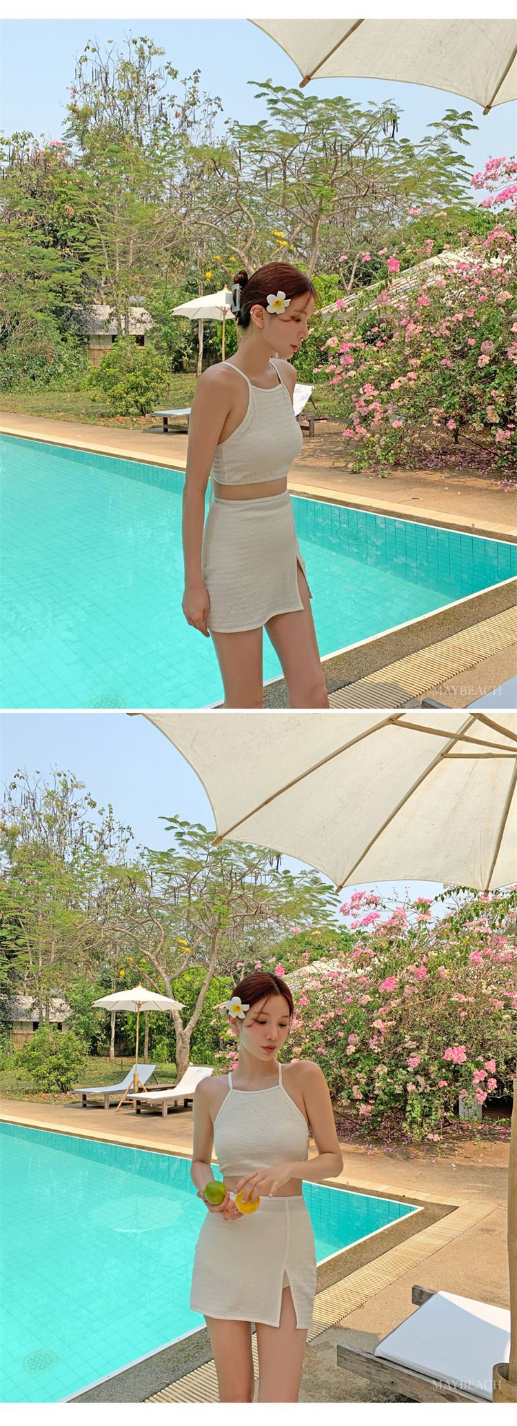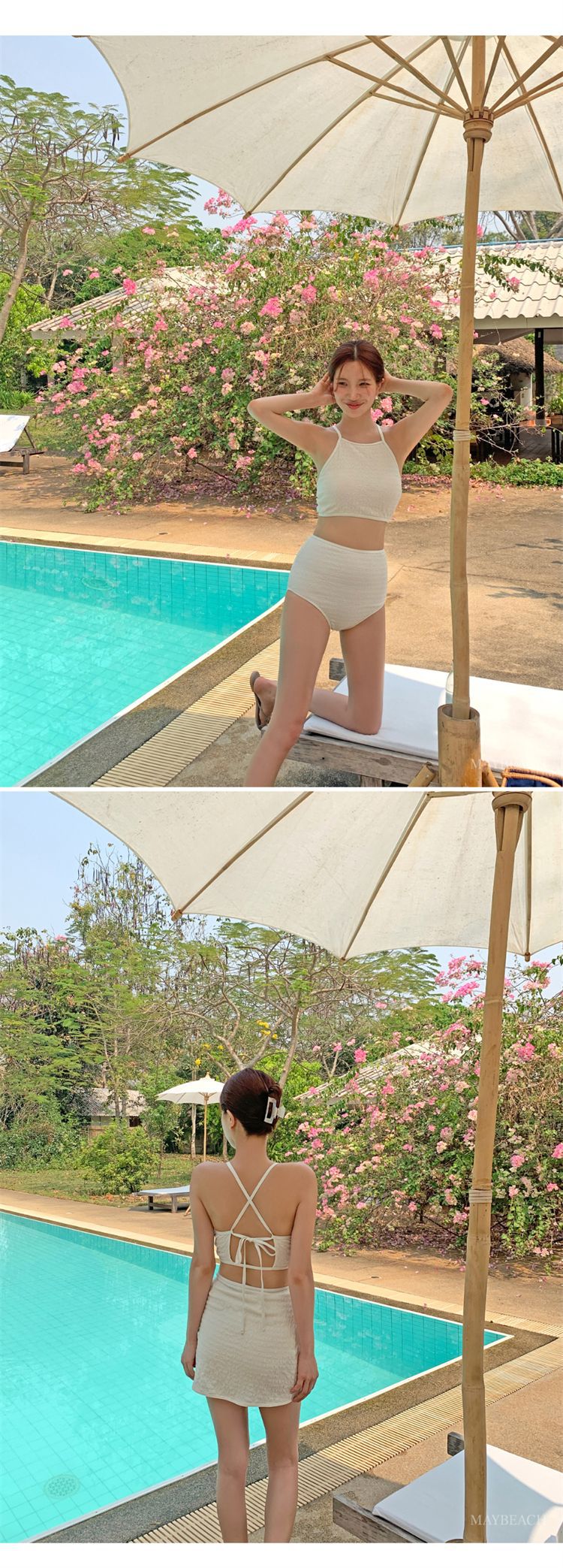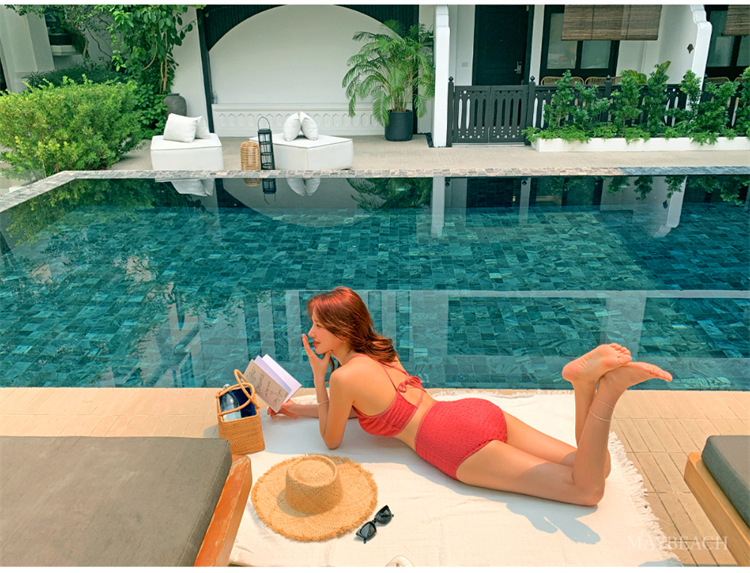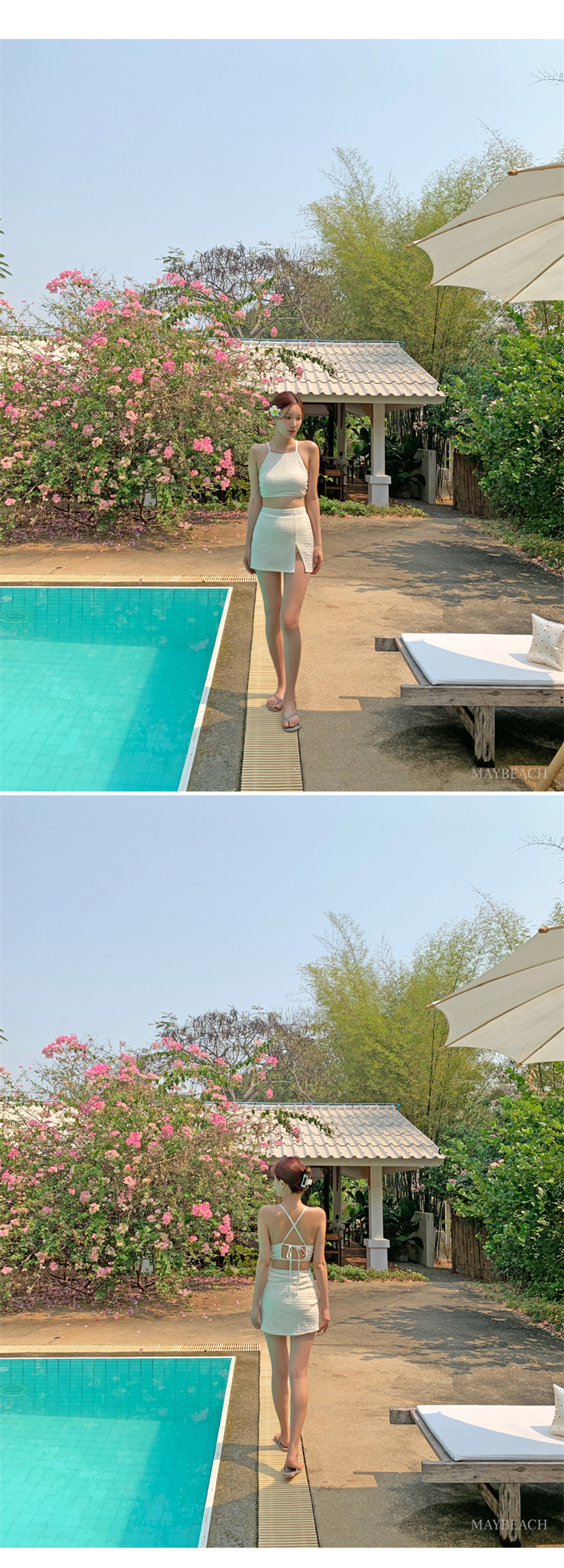 2024 새로운 도착 분할 수영복 여성의 섹시한 크로스 백리스 테더 수영복 유행 단색 스커트 배꼽 수영복스토어 가기
