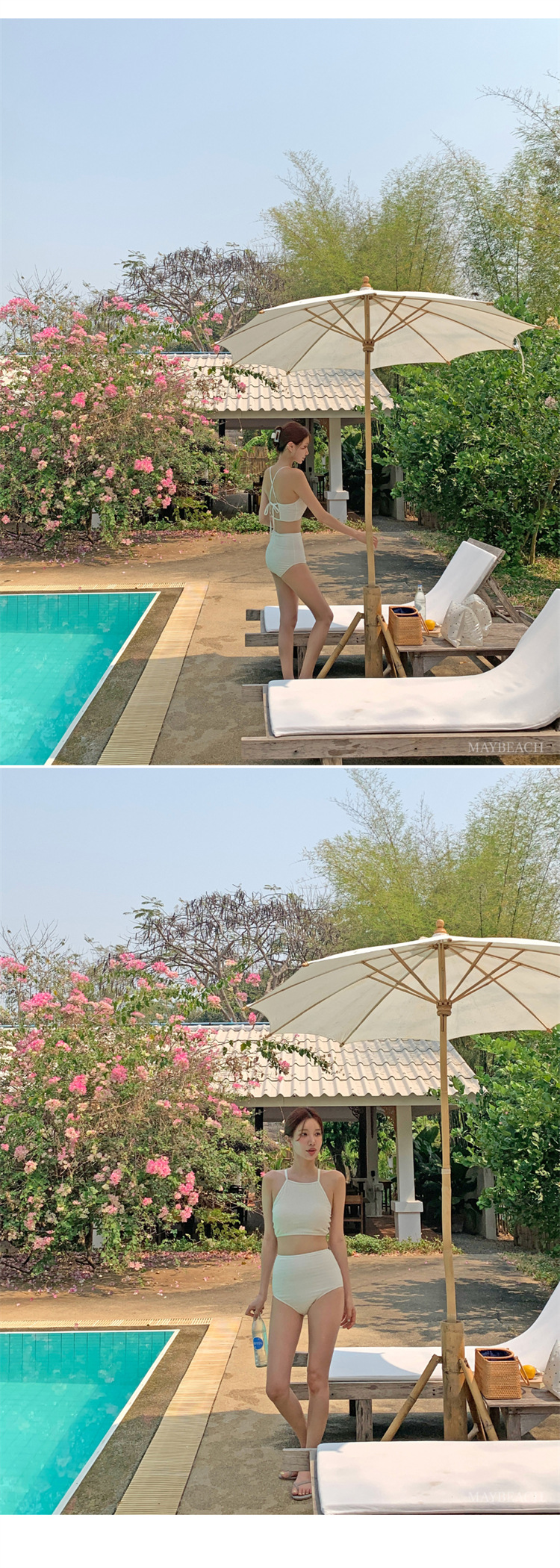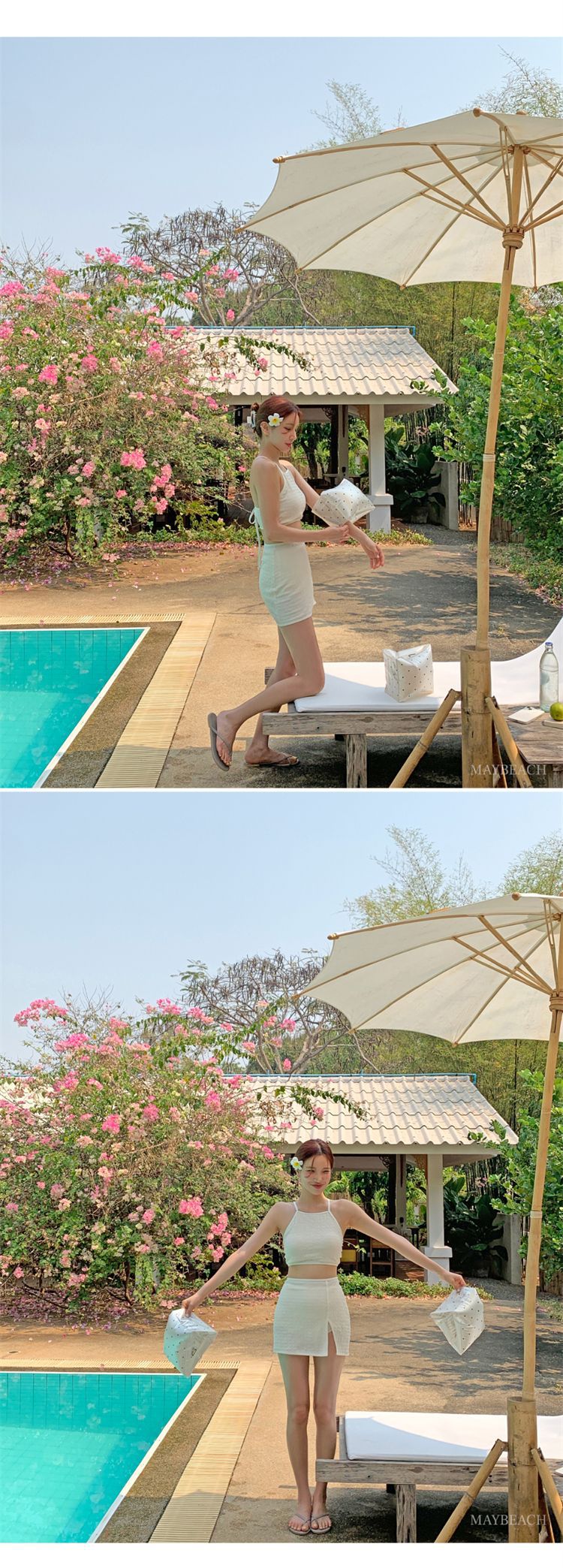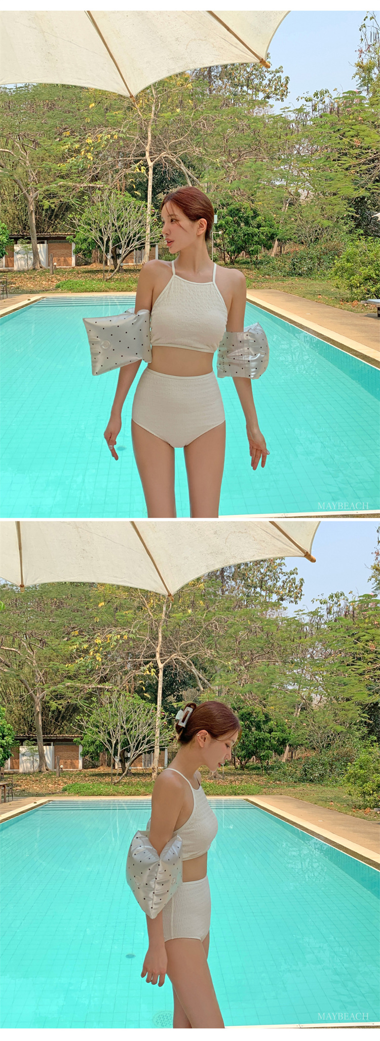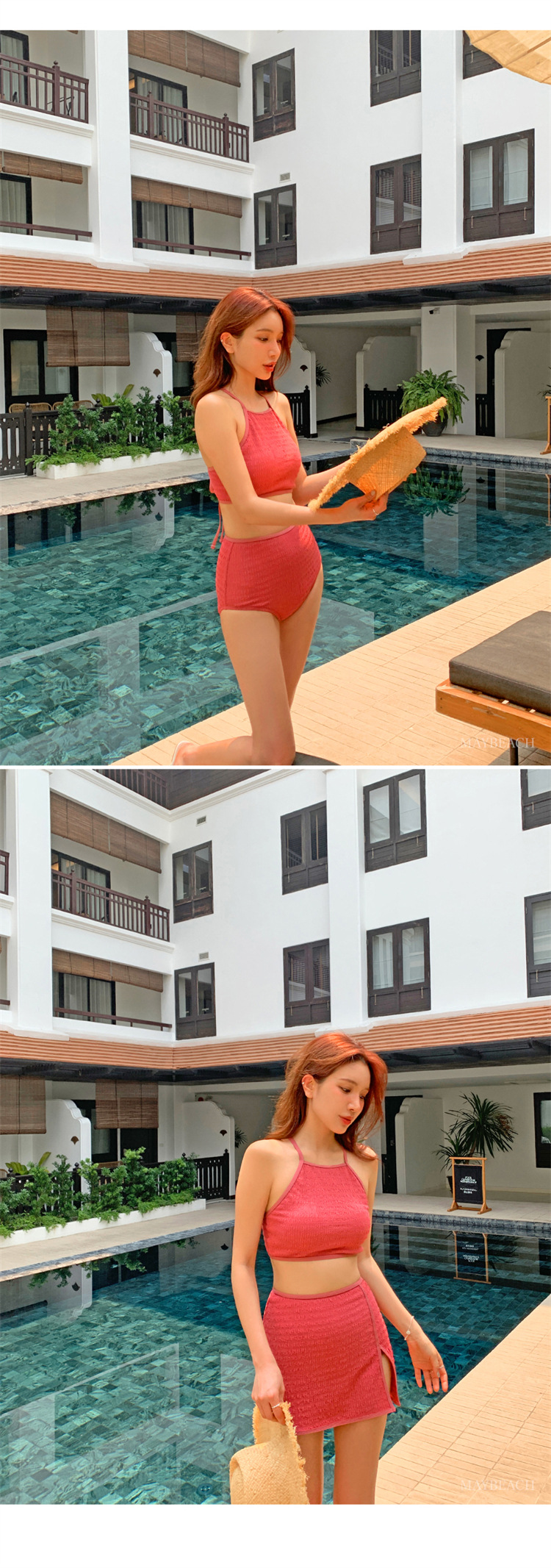 2024 새로운 도착 분할 수영복 여성의 섹시한 크로스 백리스 테더 수영복 유행 단색 스커트 배꼽 수영복스토어 가기