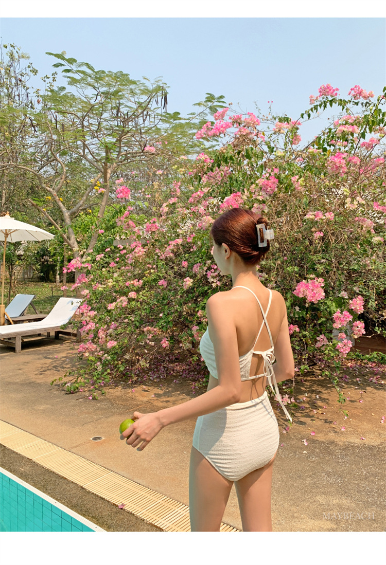 2024 새로운 도착 분할 수영복 여성의 섹시한 크로스 백리스 테더 수영복 유행 단색 스커트 배꼽 수영복