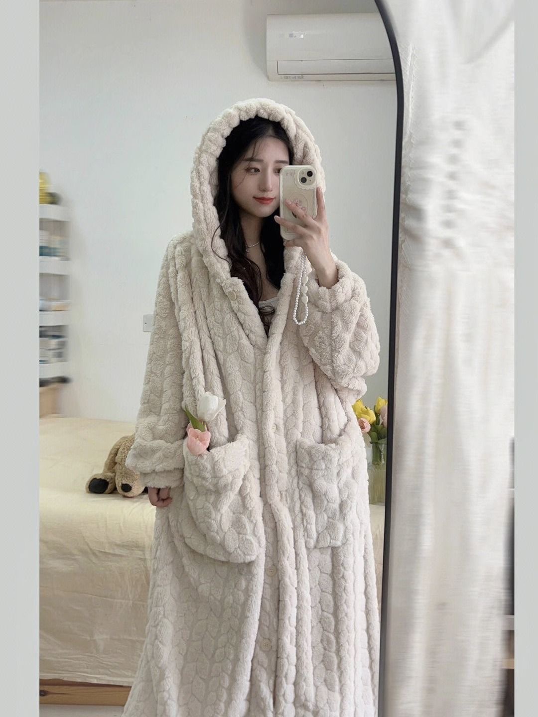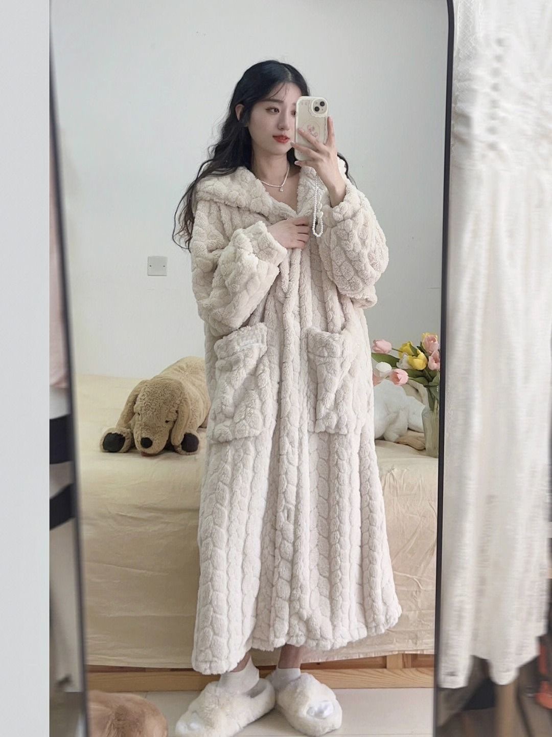 가을과 겨울 잠옷 여성 플란넬 나이트가운 여성용 산호 양털 긴 귀여운 달콤한 한국식 홈 옷 게으른 잠옷스토어 가기