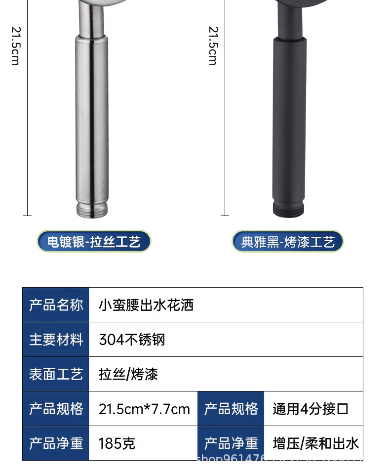 • 304 핸드샤워 "브러쉬드 내추럴 컬러" 작은 허리 물 배출구