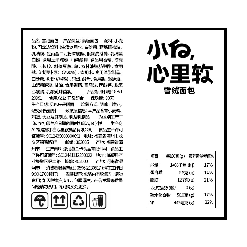 작은 흰색 심장 부드러운 우유 피부 흰 빵 케이크 그물 붉은 아침 카시다 샌드위치 토스트 스낵 90g 가방