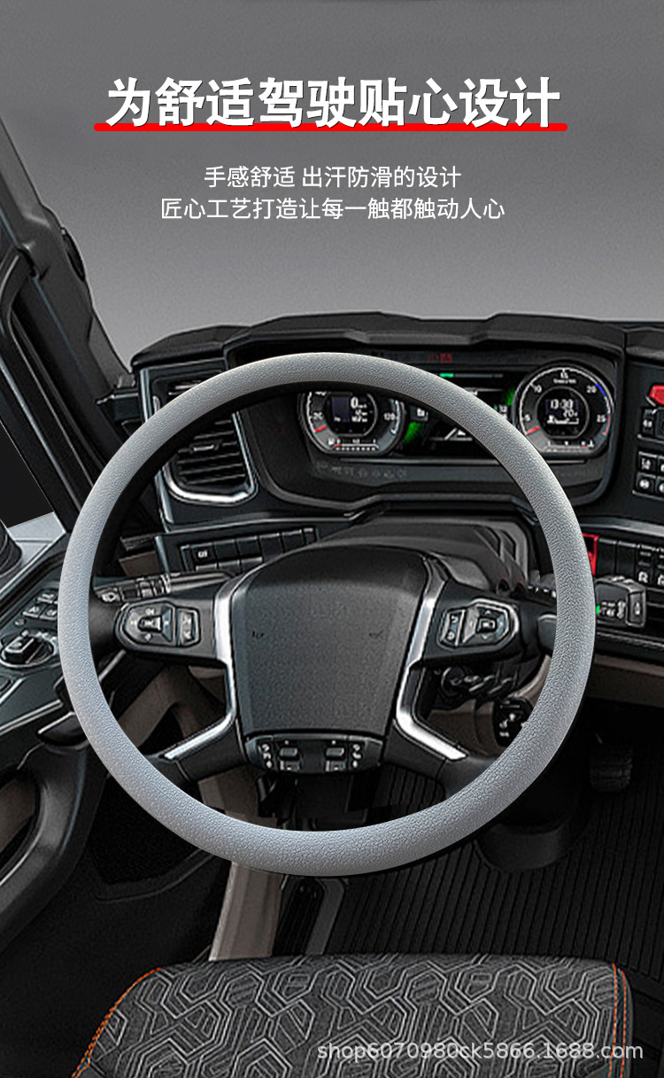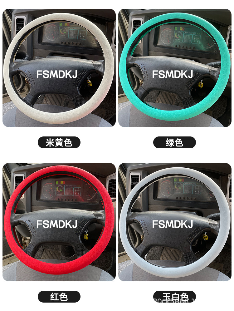 사계절용 트럭 실리콘 스티어링 휠 커버, 리치 가죽 질감, 미끄럼 방지 및 땀 방지 핸들바 커버, 버스 및 대형 트럭스토어 가기