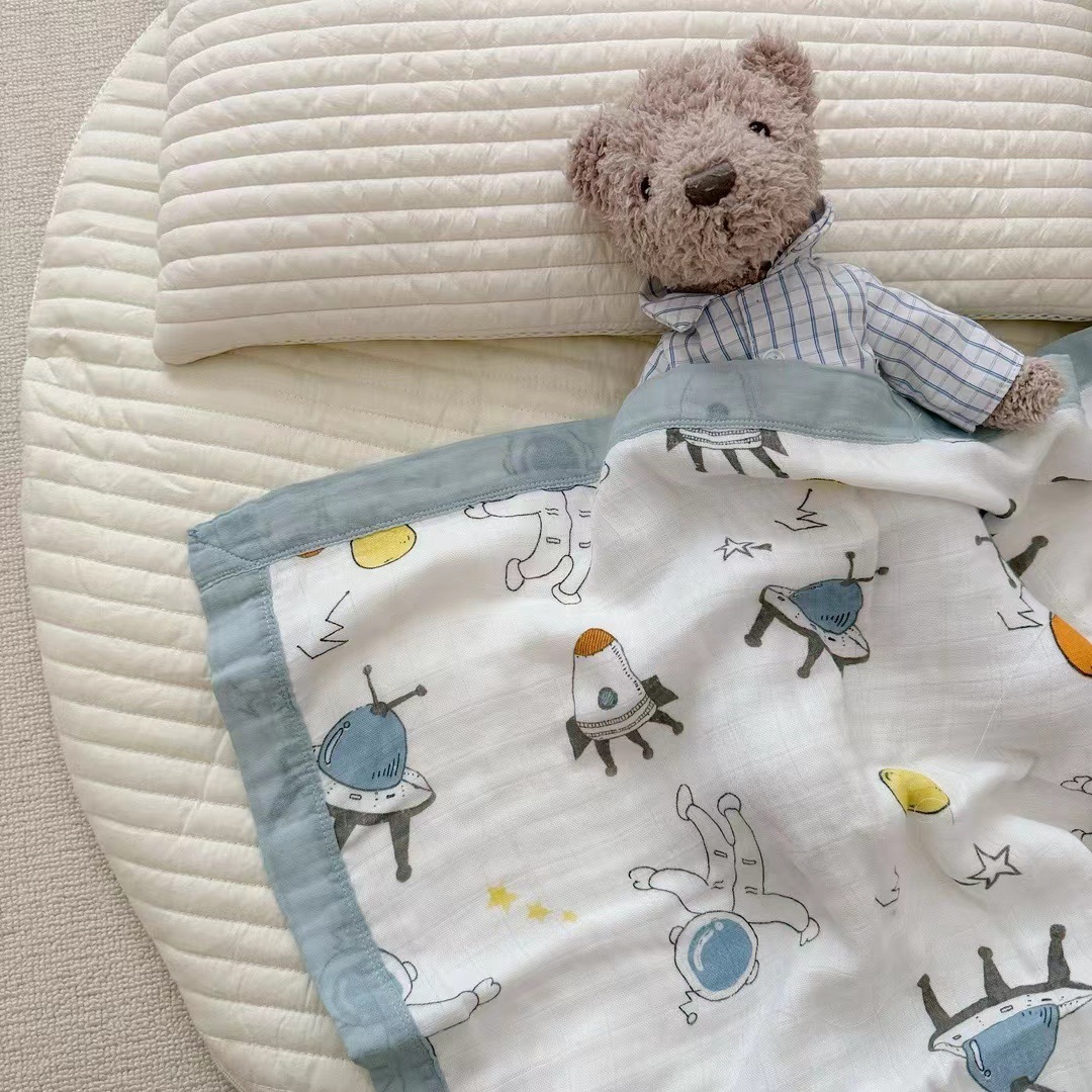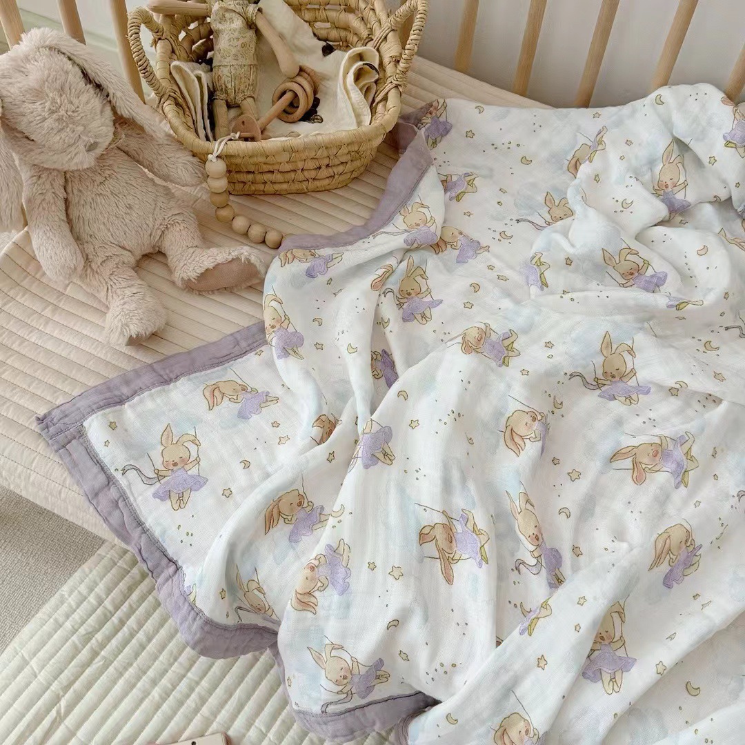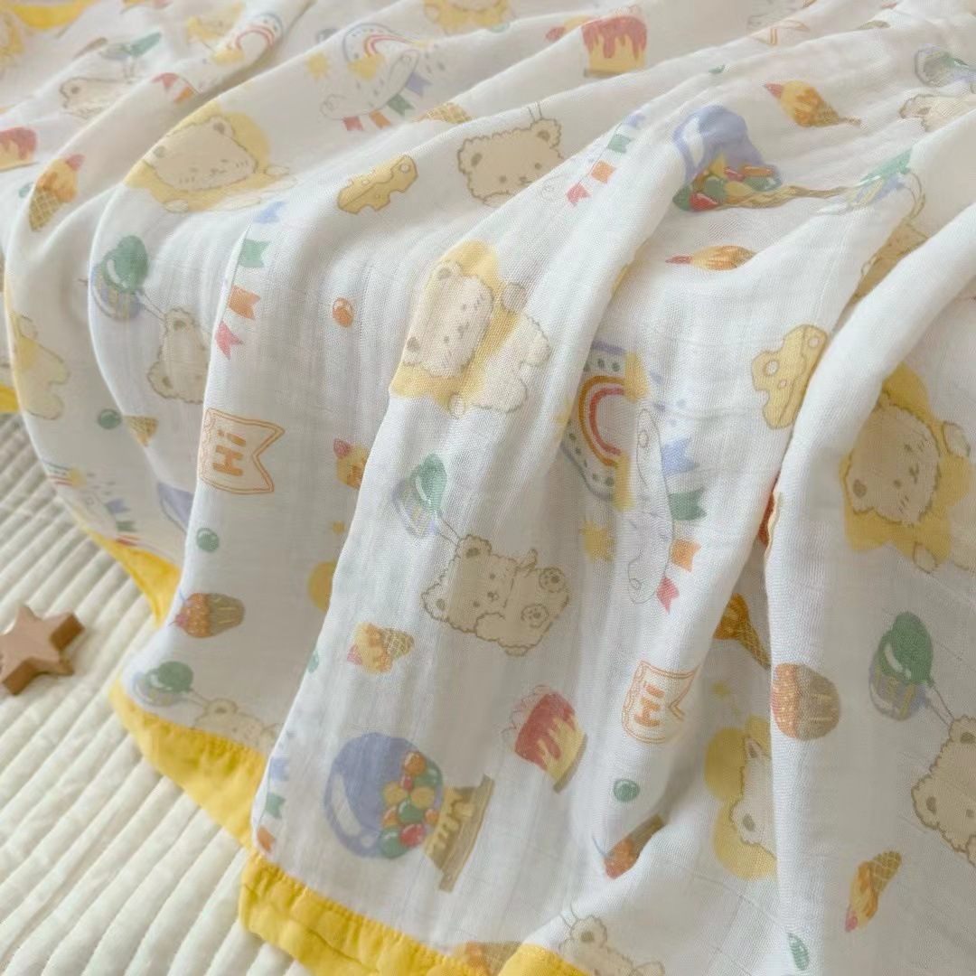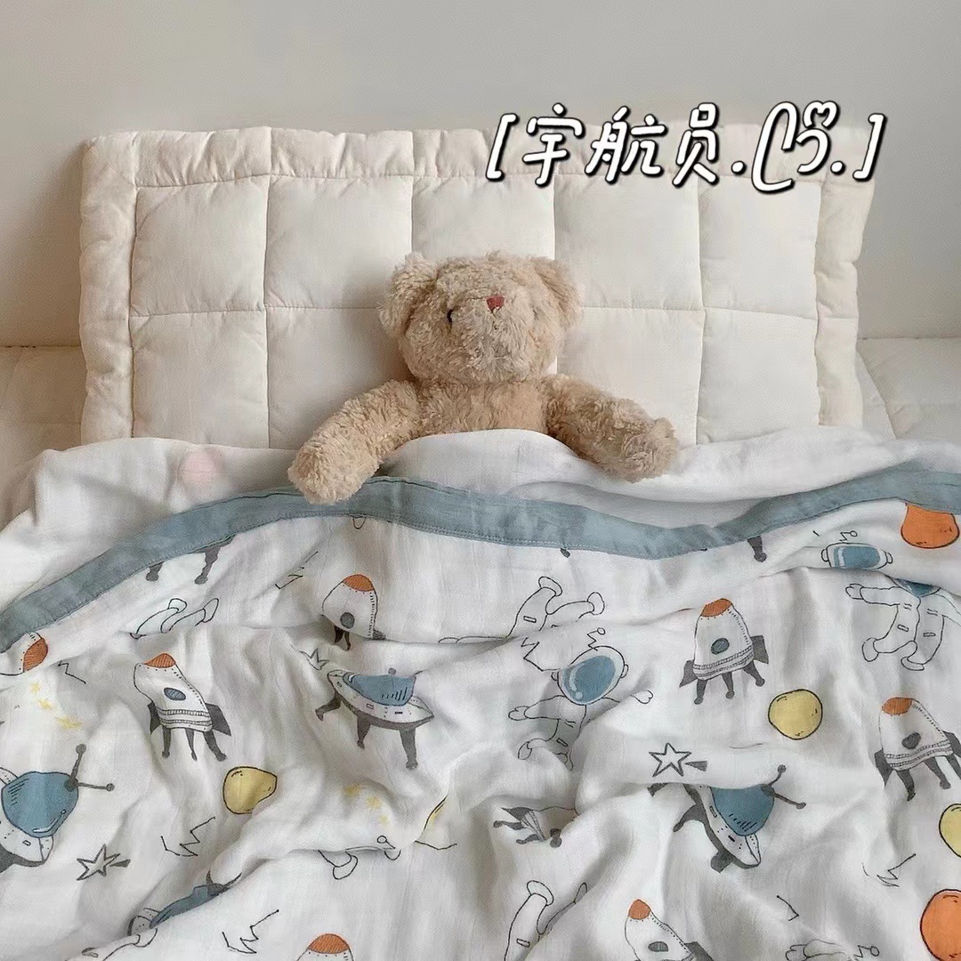 还可以用于宝宝的包巾,浴巾,哺乳巾,小薄被,垫毯,一款多功能四层纱布毯