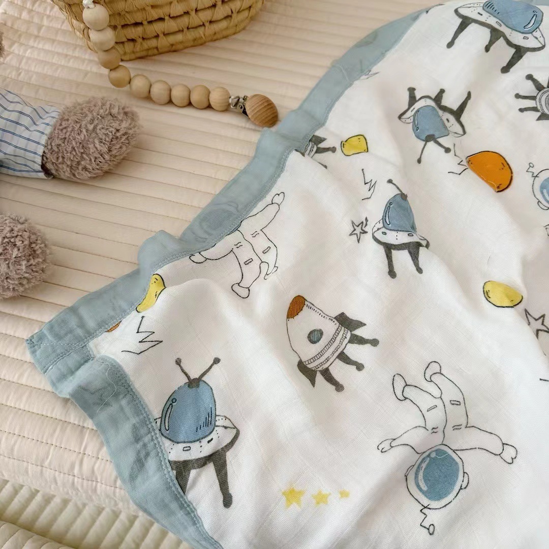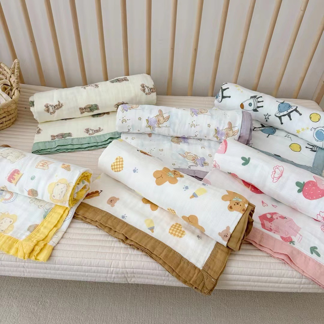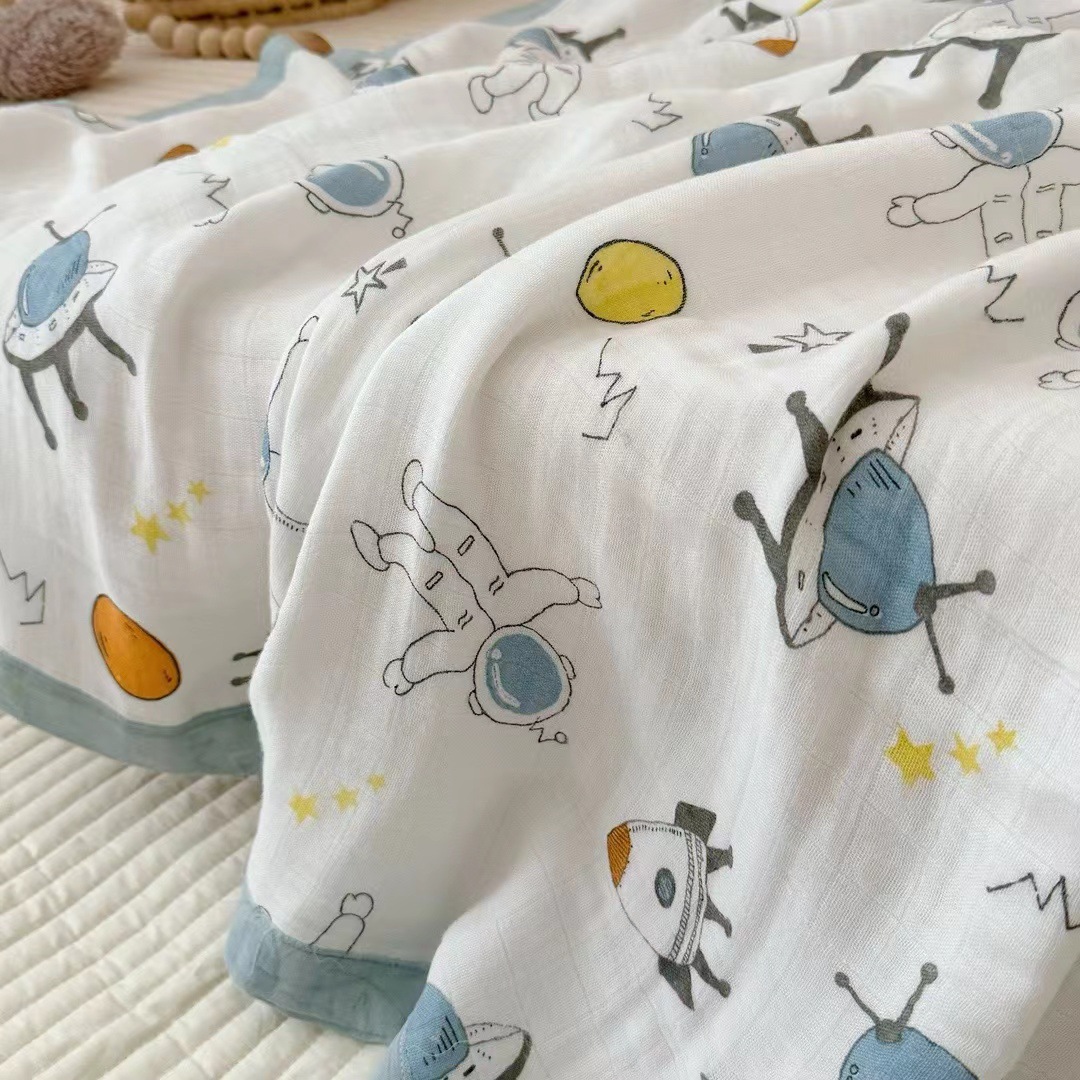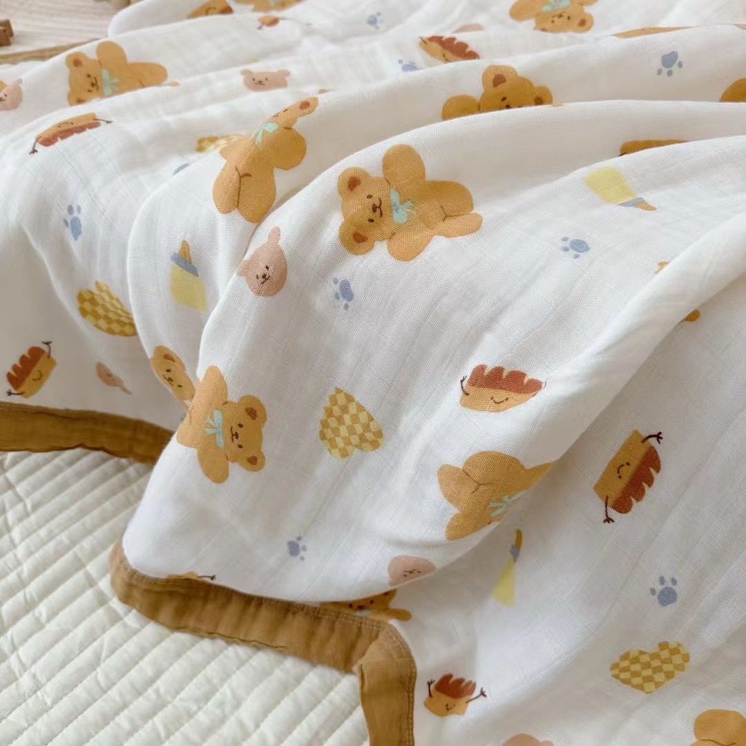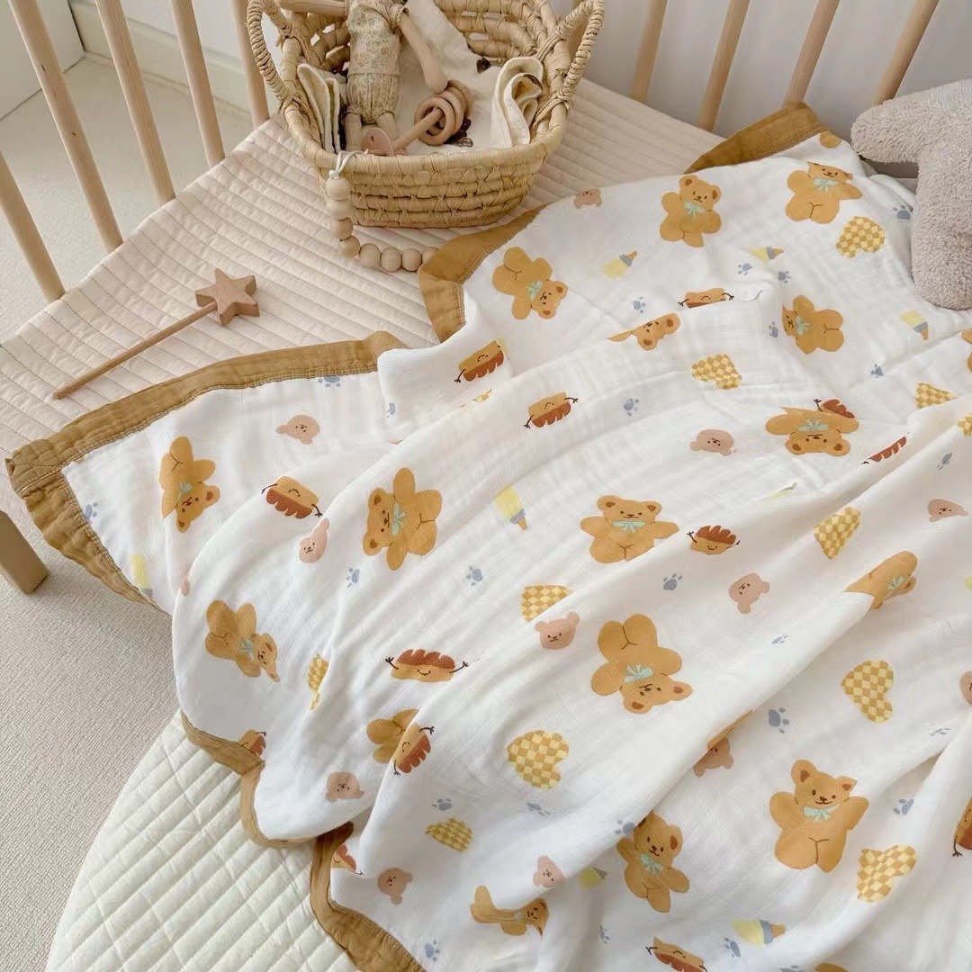还可以用于宝宝的包巾,浴巾,哺乳巾,小薄被,垫毯,一款多功能四层纱布毯