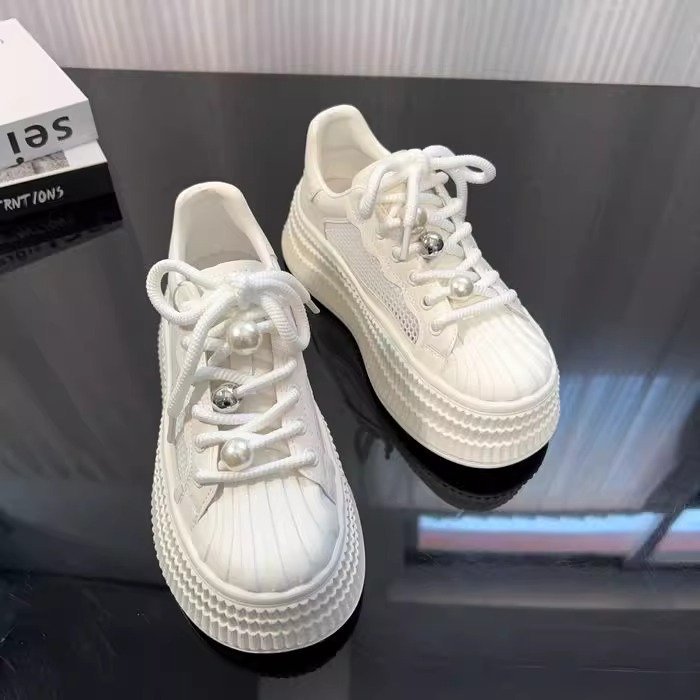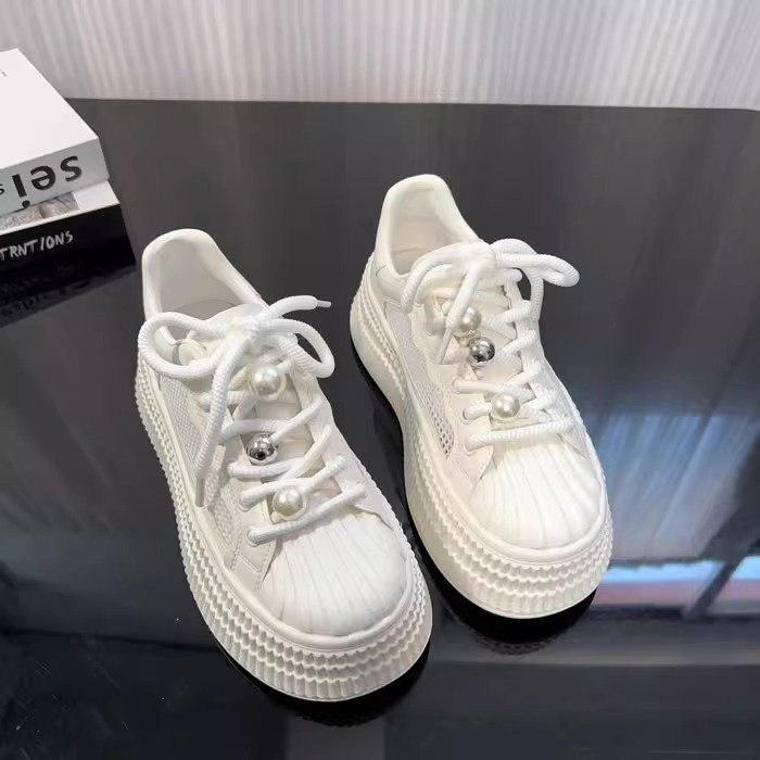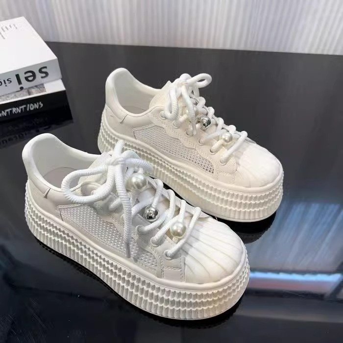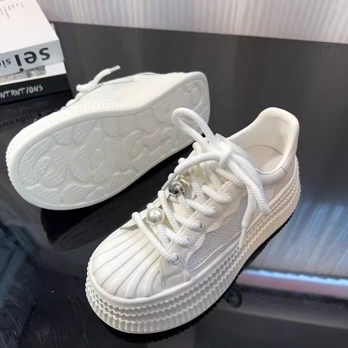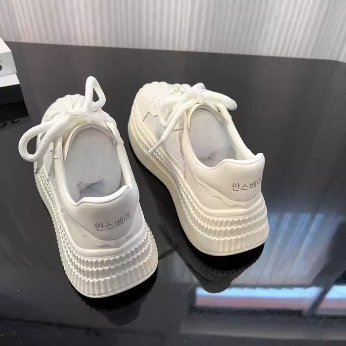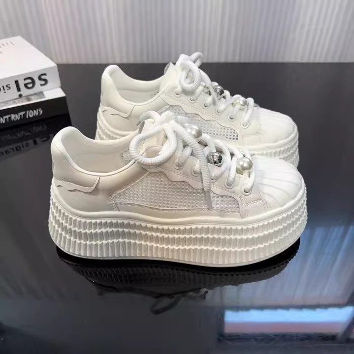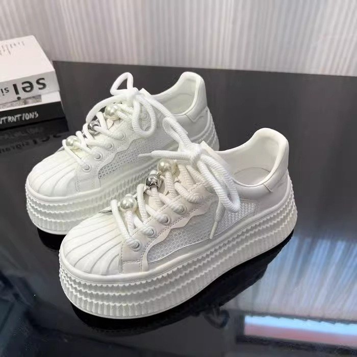 유럽 제품 증가 작은 흰색 신발 2024 여름 새로운 주문 그물 속이 빈 둥근 머리 머핀 두꺼운 바닥 캐주얼 스포츠 여성 신발 조수스토어 가기