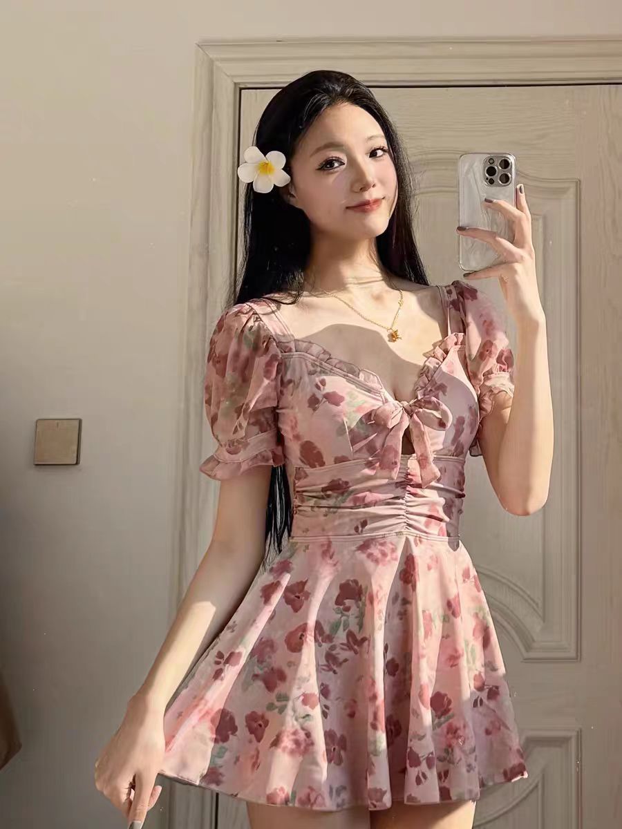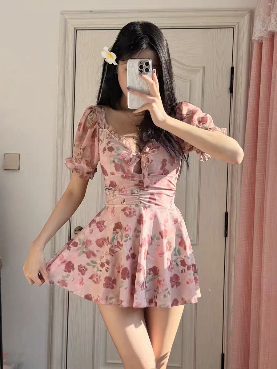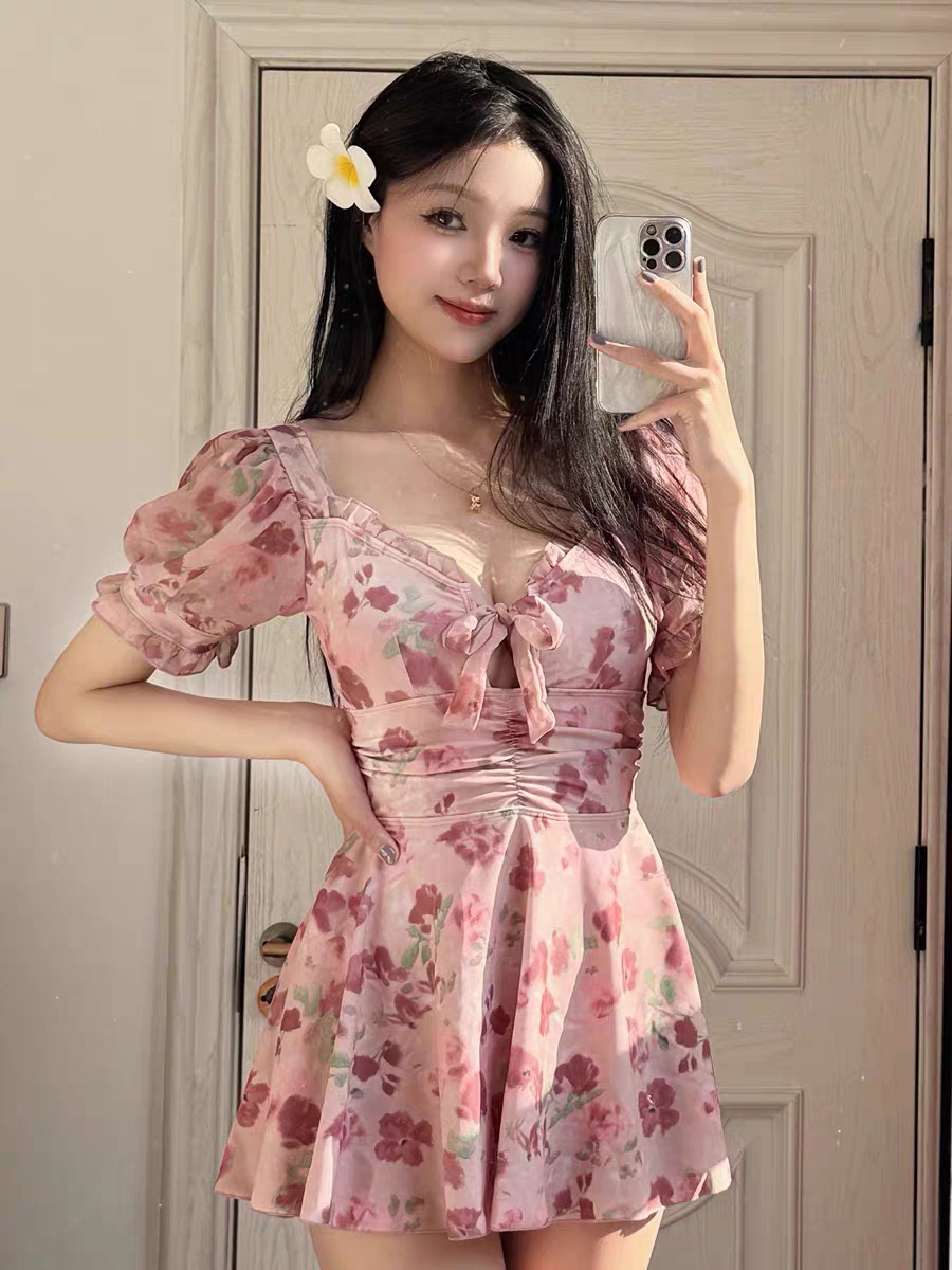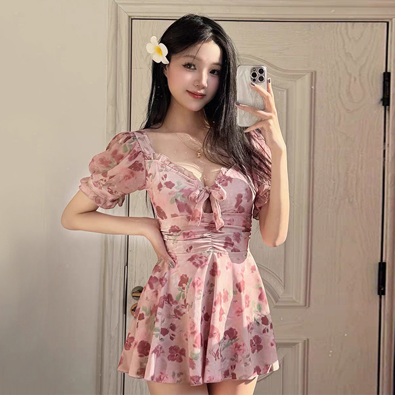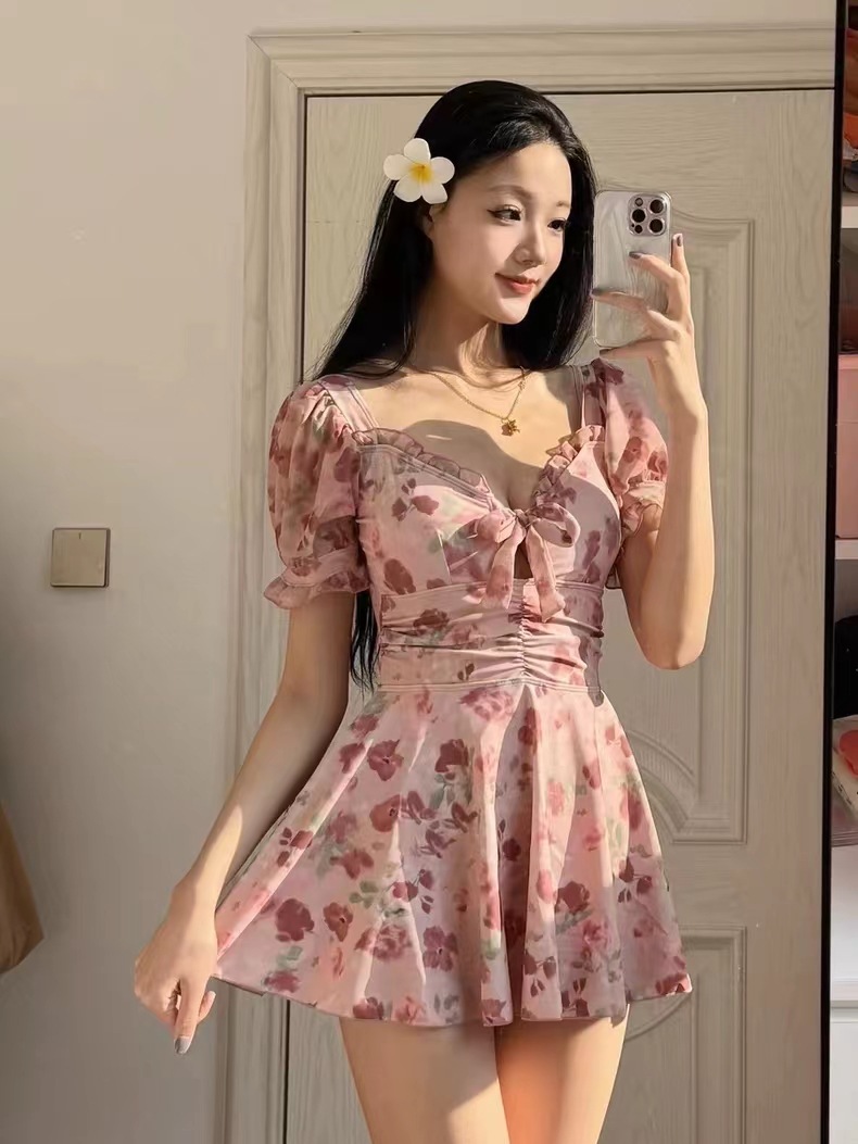 수영복 여성 원피스 패션 프린트 스위트 스커트 보수적 인 슬림 고기 커버 배꼽 여름 온천 수영복 도매