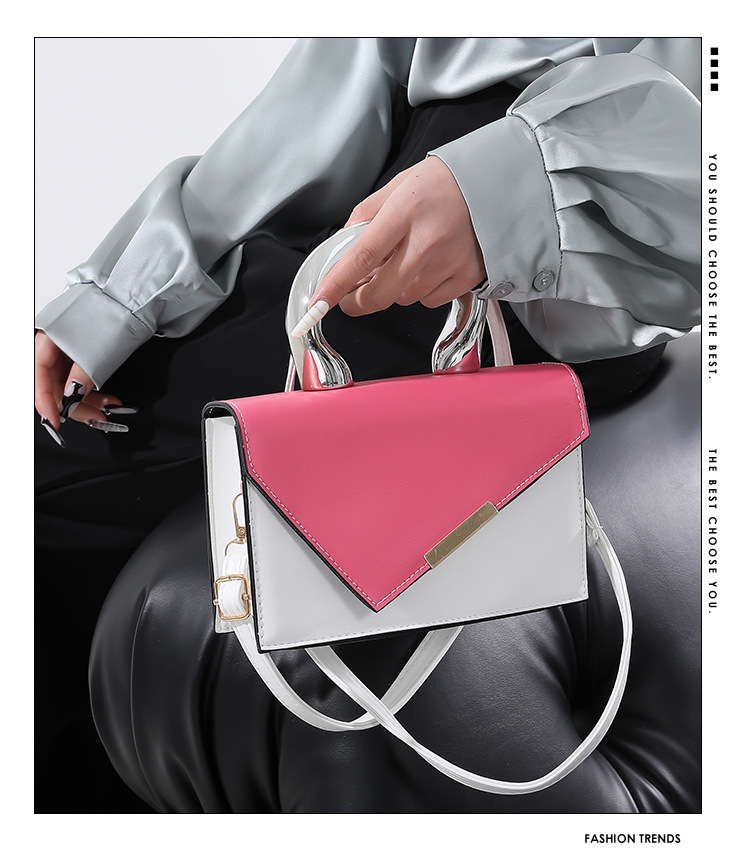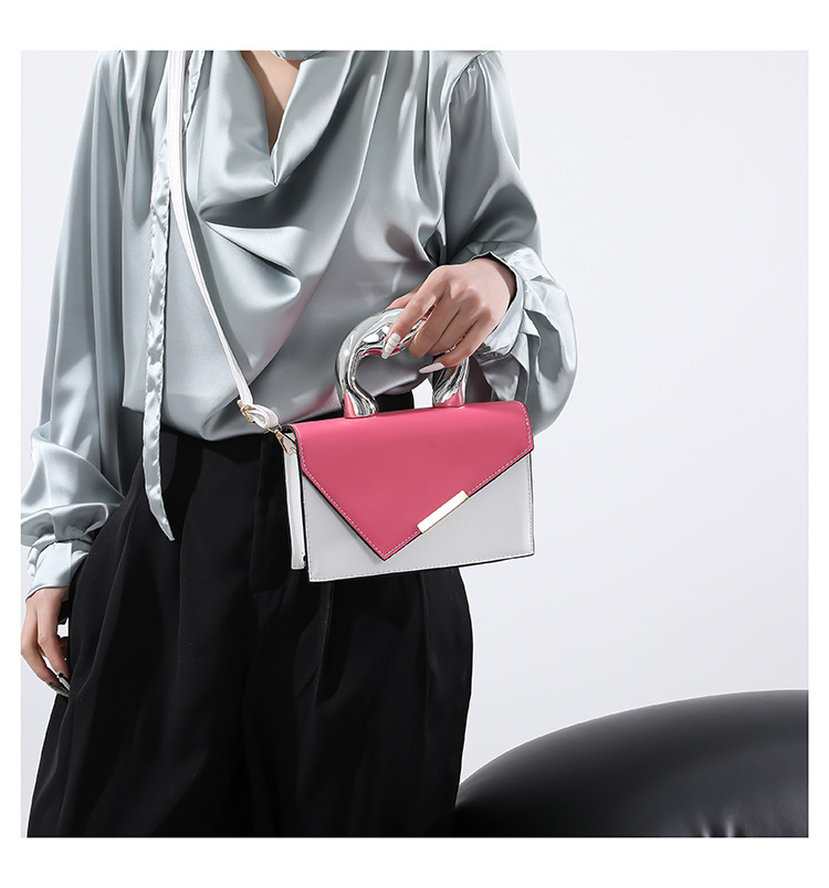 패션 컬러블록 신상 2025 대비색상 여름 캐주얼 심플 크로스백 메탈 핸드백 여성 도매스토어 가기
