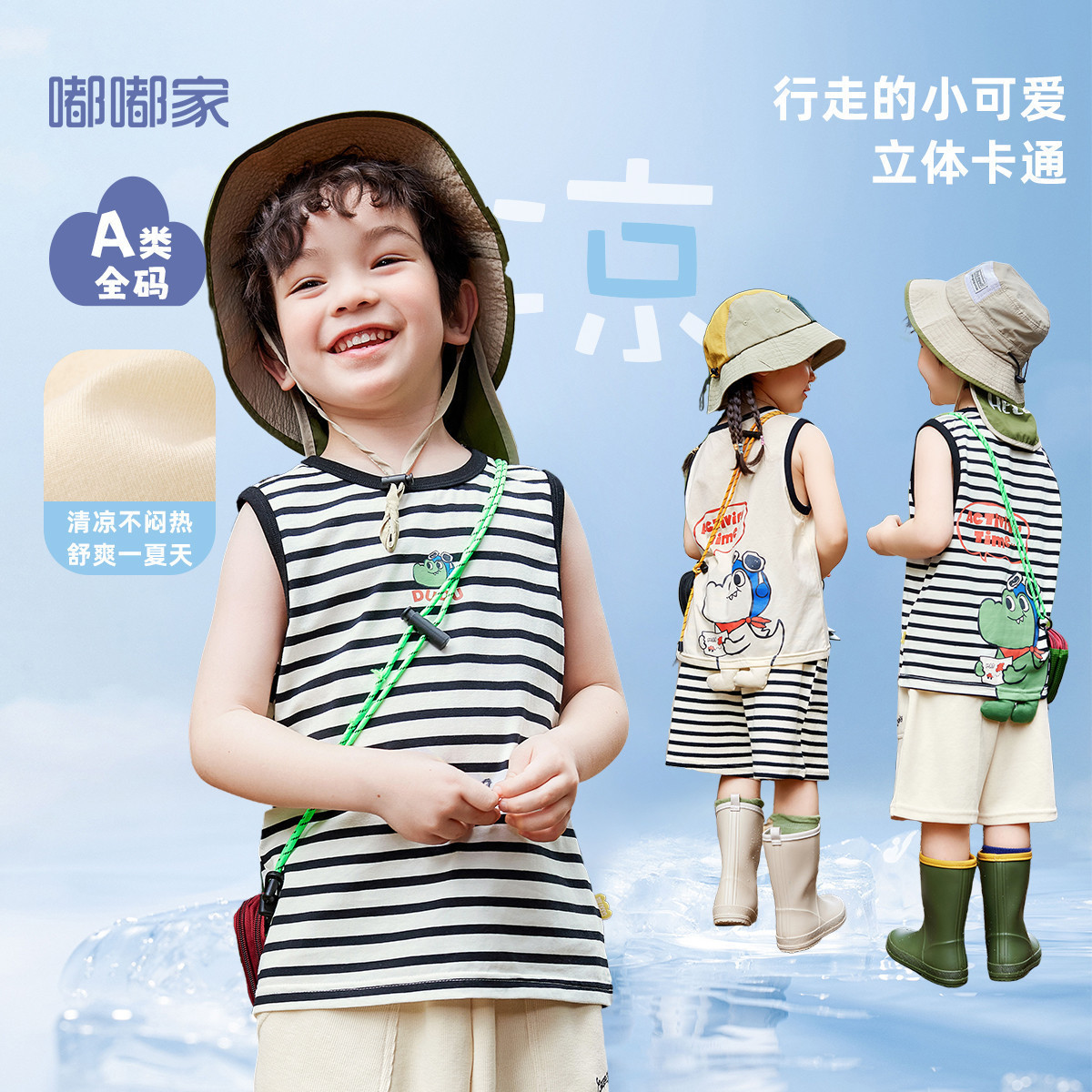[쿨한 휴식] 낙서 아기 조끼 여름 소년 민소매 티셔츠 여름 새 아기 소녀 T스토어 가기