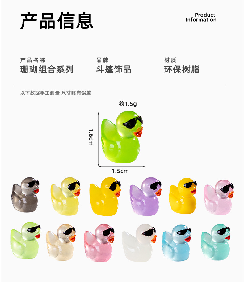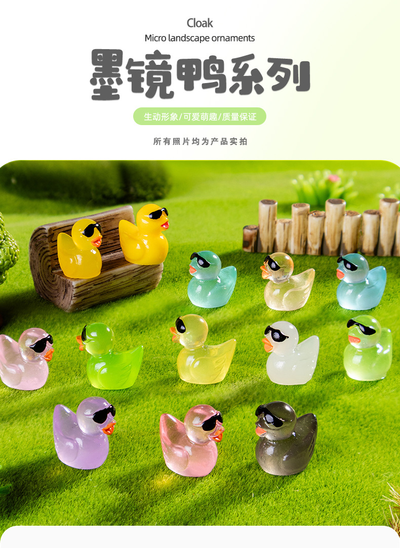 국경 빛나는 선글라스 작은 오리 마이크로 풍경 장식 데스크탑 장식품 자동차 액세서리 diy 수지 액세서리스토어 가기