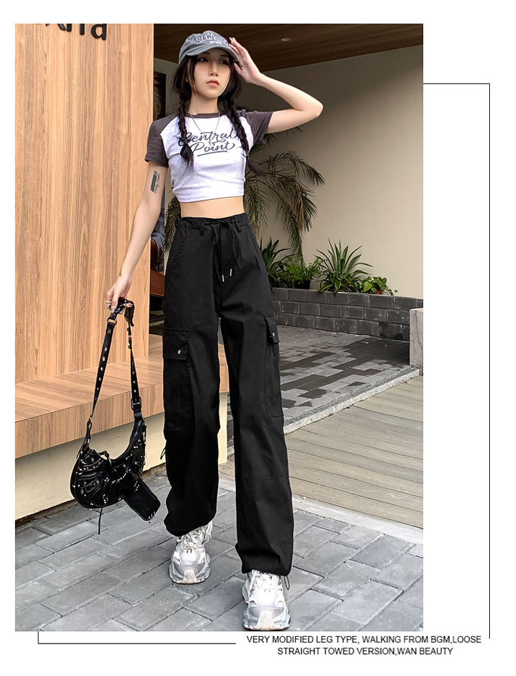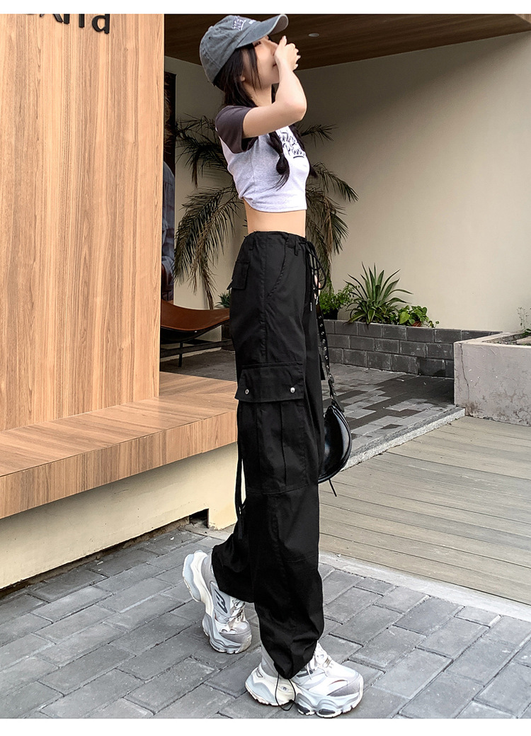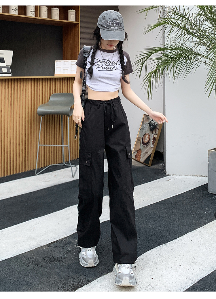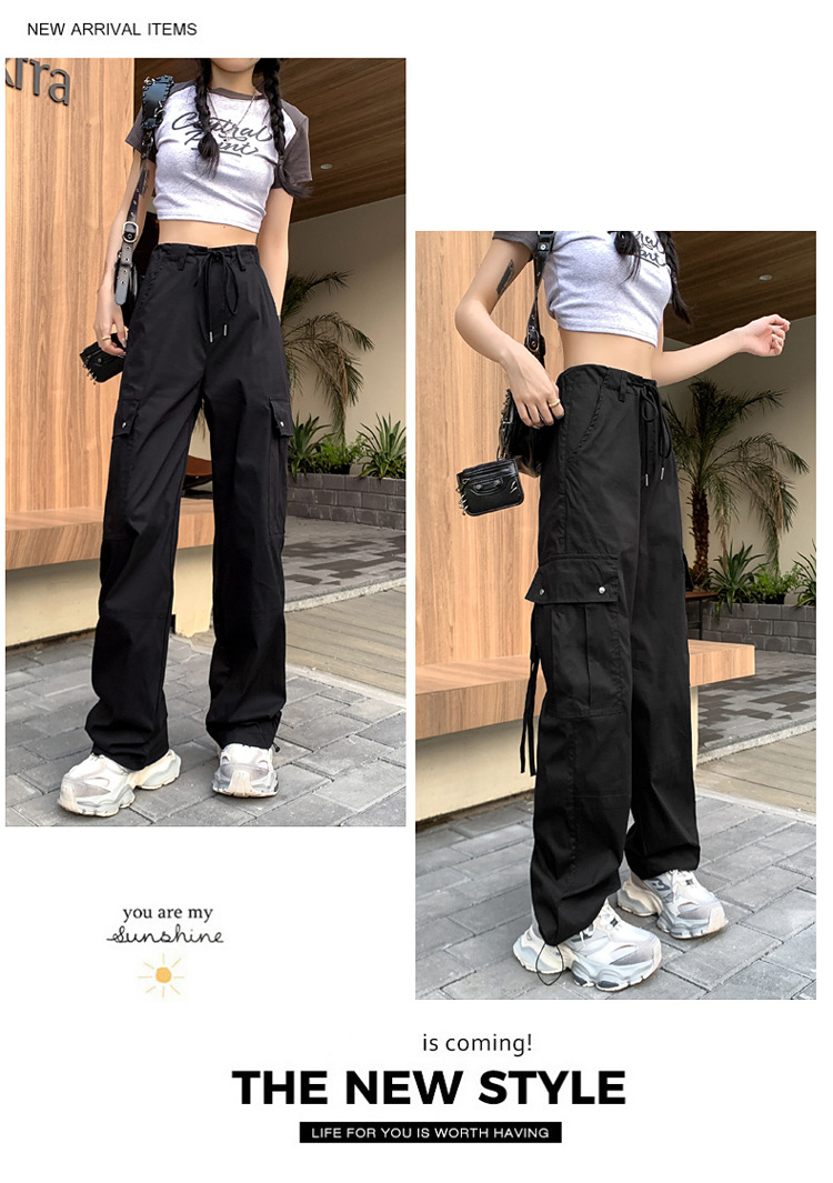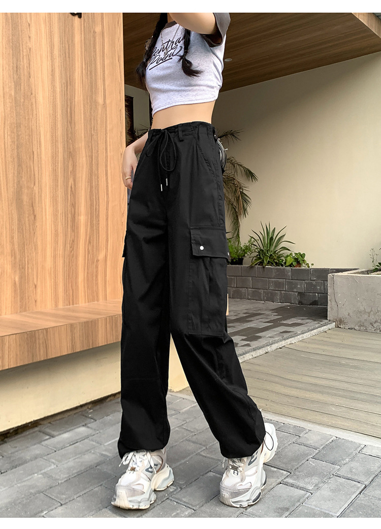 블랙 오버홀 여성의 여름 얇은 느슨한 슬리밍 스파이스 걸스 드로우 스트링 와이드 레그 팬츠 빠른 건조 바지 등산 바지스토어 가기