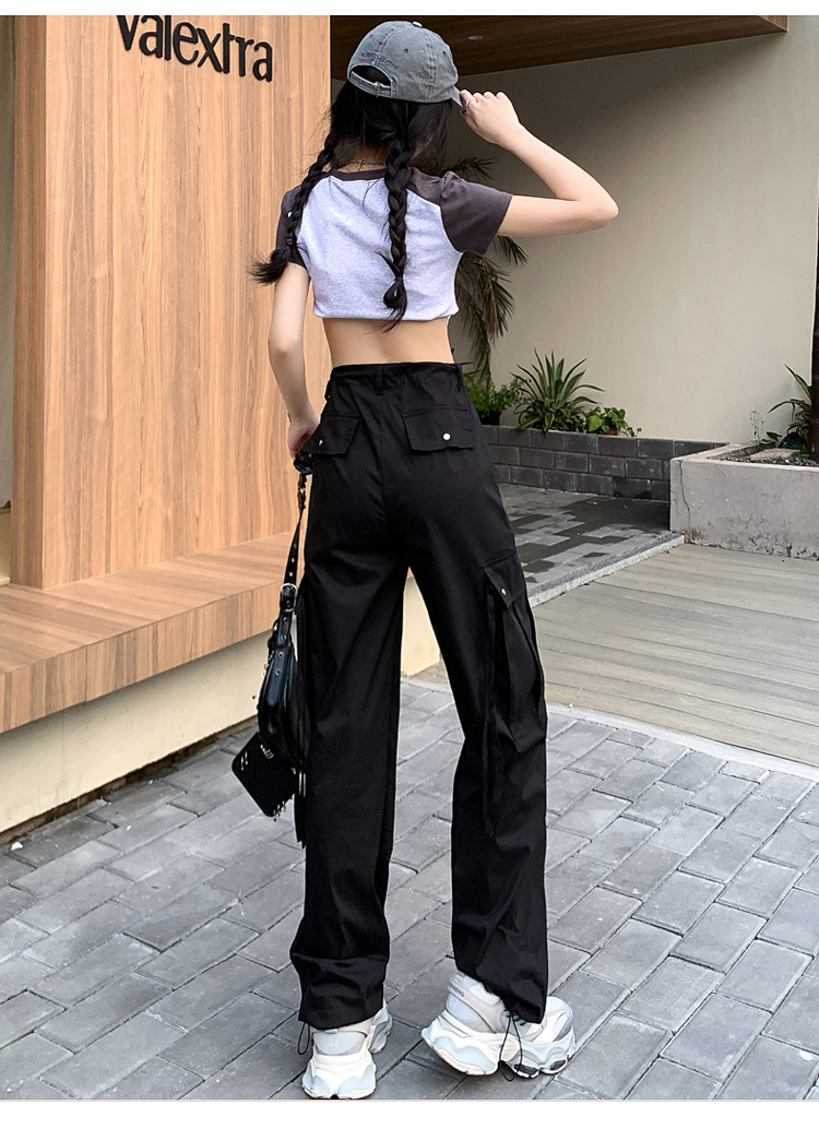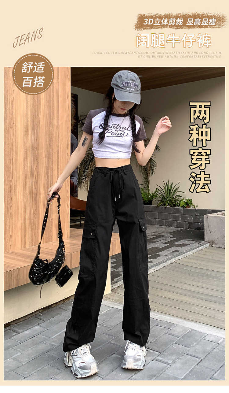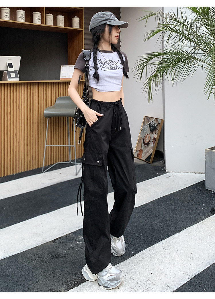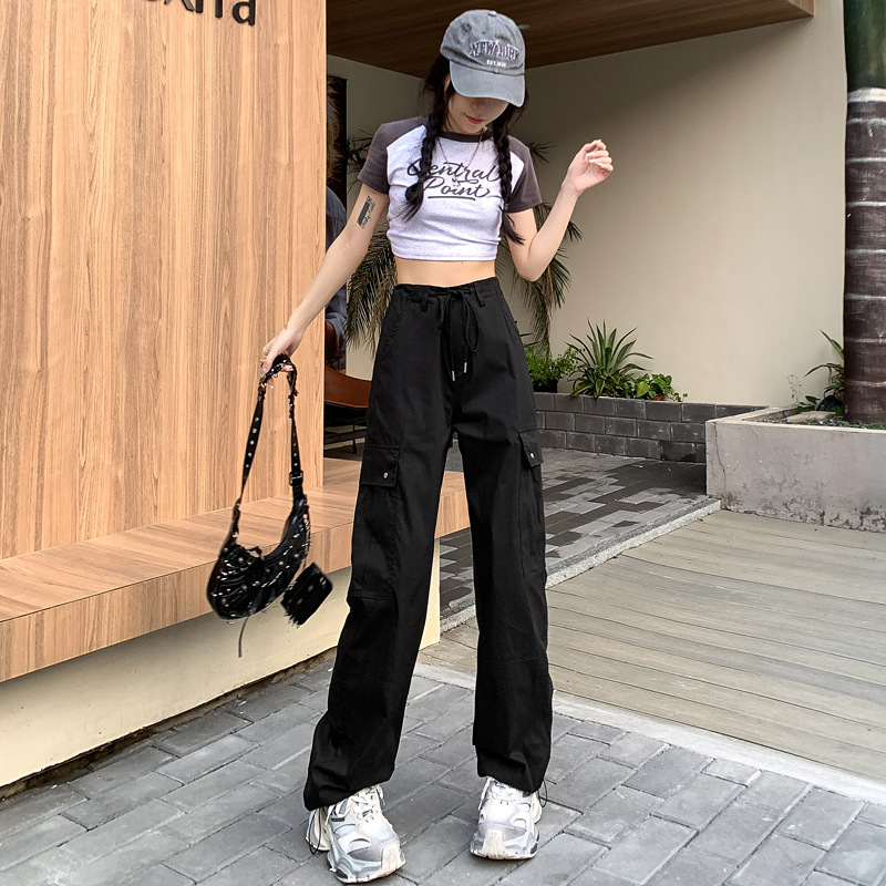 블랙 오버홀 여성의 여름 얇은 느슨한 슬리밍 스파이스 걸스 드로우 스트링 와이드 레그 팬츠 빠른 건조 바지 등산 바지스토어 가기