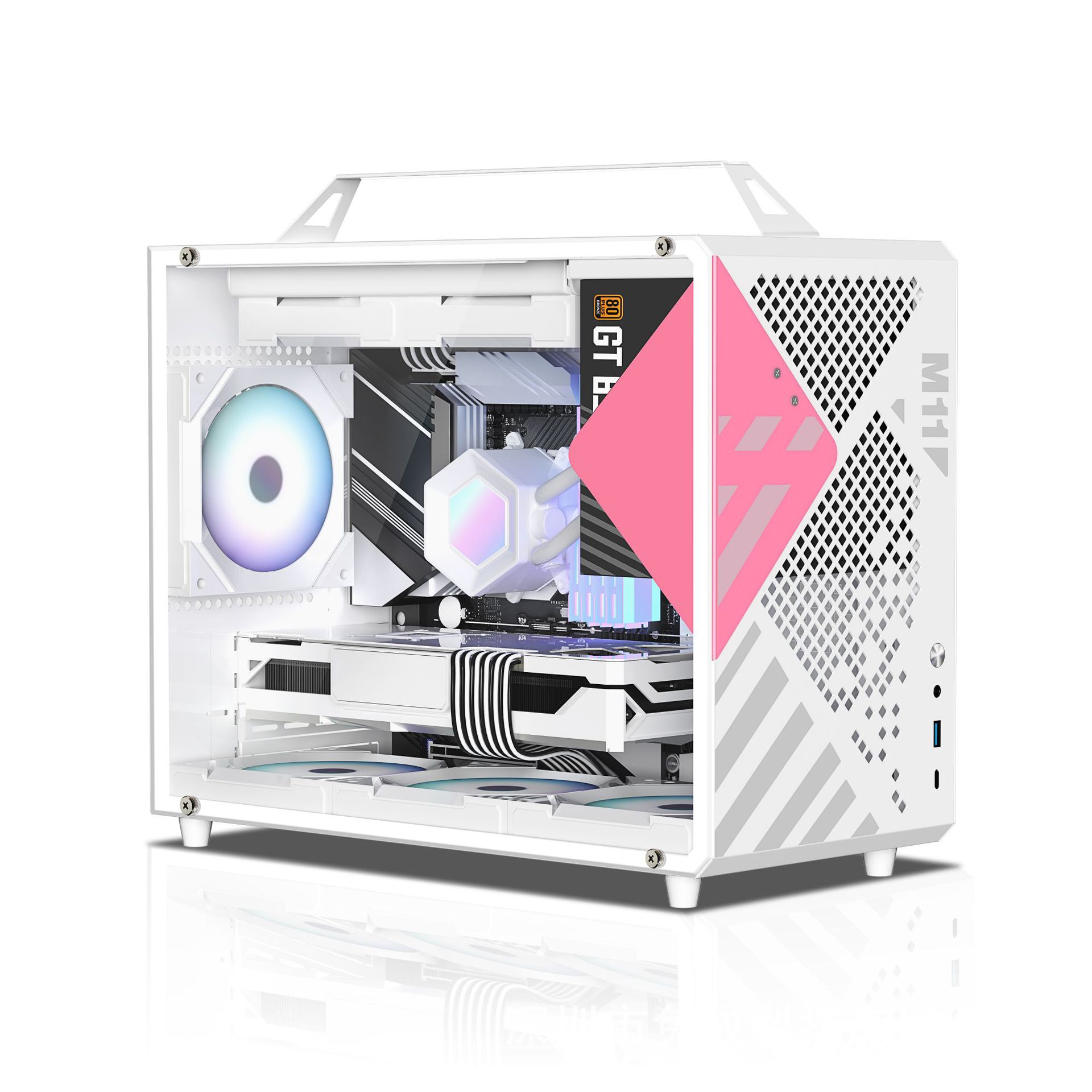 • 흰색 알루미늄 합금 휴대용 컴퓨터 케이스(ARGB 팬 6개 포함)