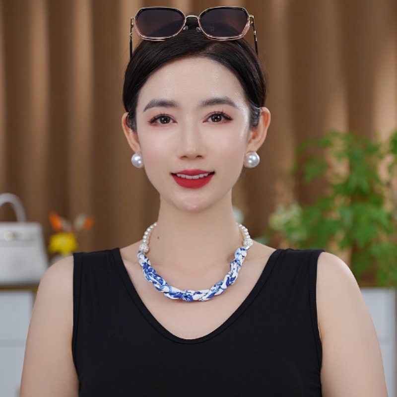 조개 구슬 체인 스티칭 작은 실크 스카프 고귀한 절묘한 액세서리 스카프 목걸이 새로운 자기 흡입 작은 실크 스카프 분리 가능스토어 가기