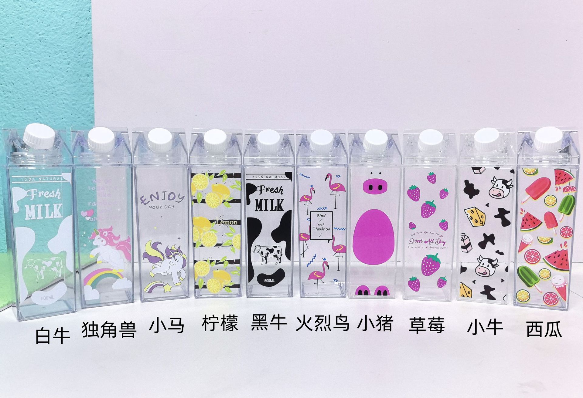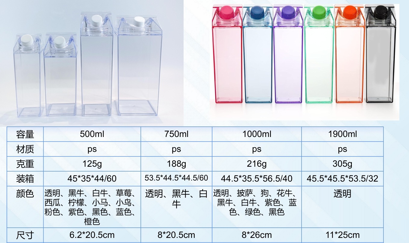 스팟 크리에이티브 500ml 사각 우유 컵, 우유 상자 물컵, 플라스틱 컵, 인터넷 연예인 학생 물컵, 맞춤형 로고 가능