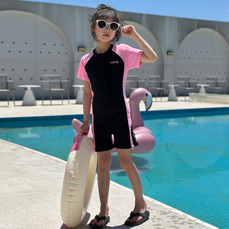 어린이 소녀 반팔 수영복 소녀 여름 2024 새로운 빠른 건조 수영복 대형 어린이 여름 수영복스토어 가기